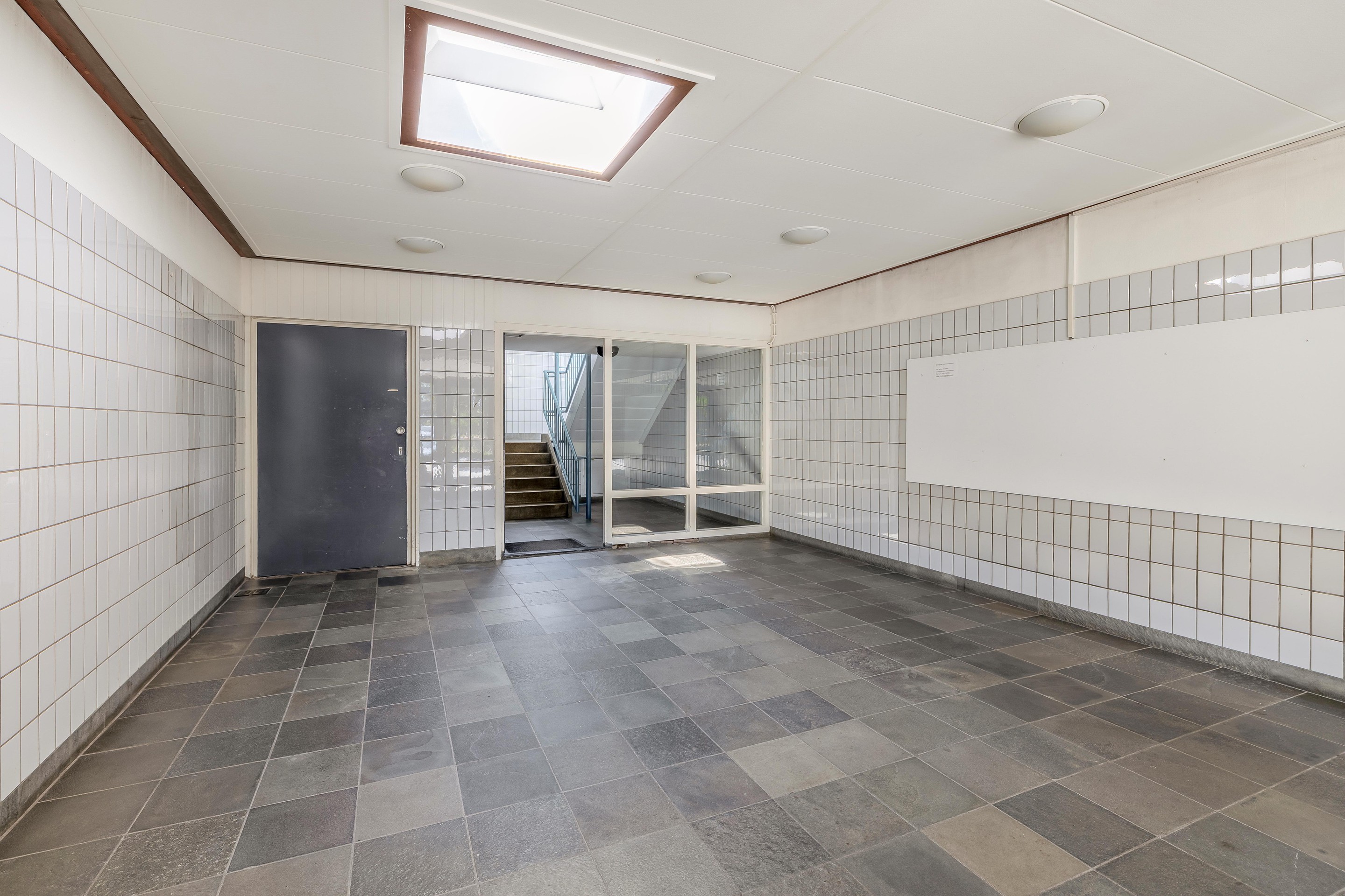 Begane grond Het appartement bevindt zich op de eerste verdieping van een verzorgd complex boven de winkels. Bij binnenkomst tref je een gezamenlijke entree met brievenbussen, trapopgang en toegang tot de bergingen in de onderbouw. De algemene ruimten zijn netjes afgewerkt en voorzien van een tegelvloer en lichtkoepel, waardoor het geheel aangenaam licht oogt.