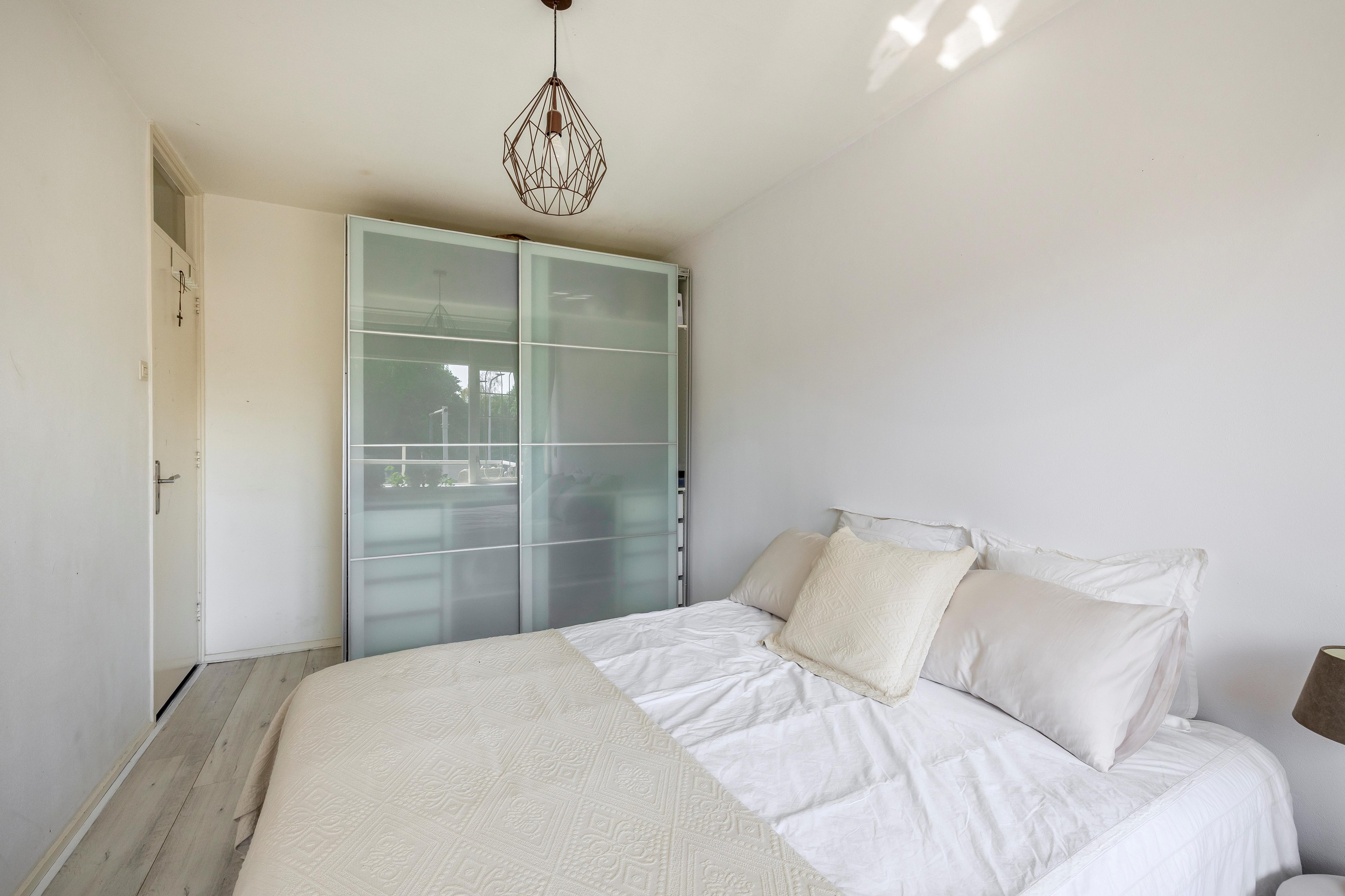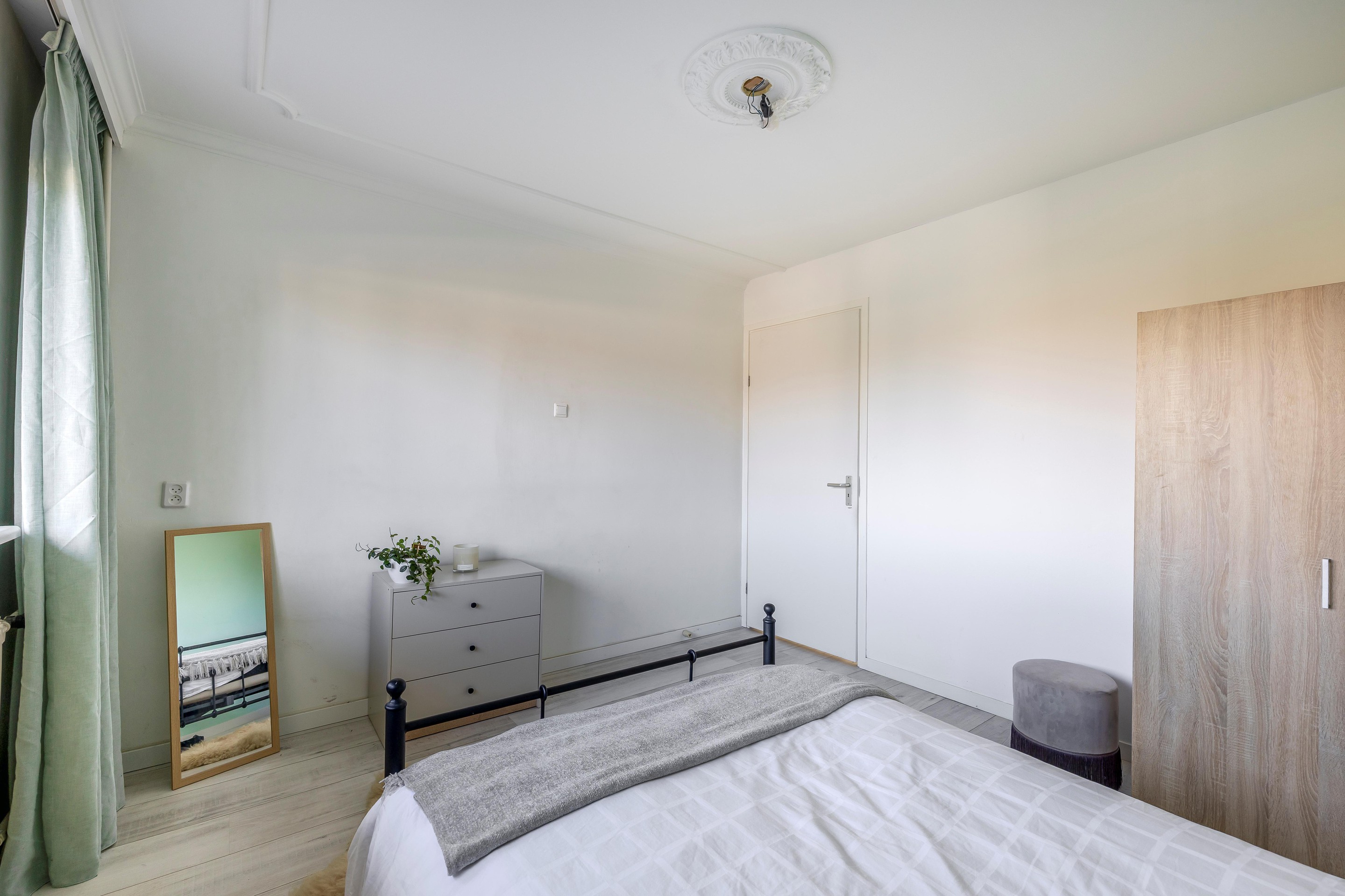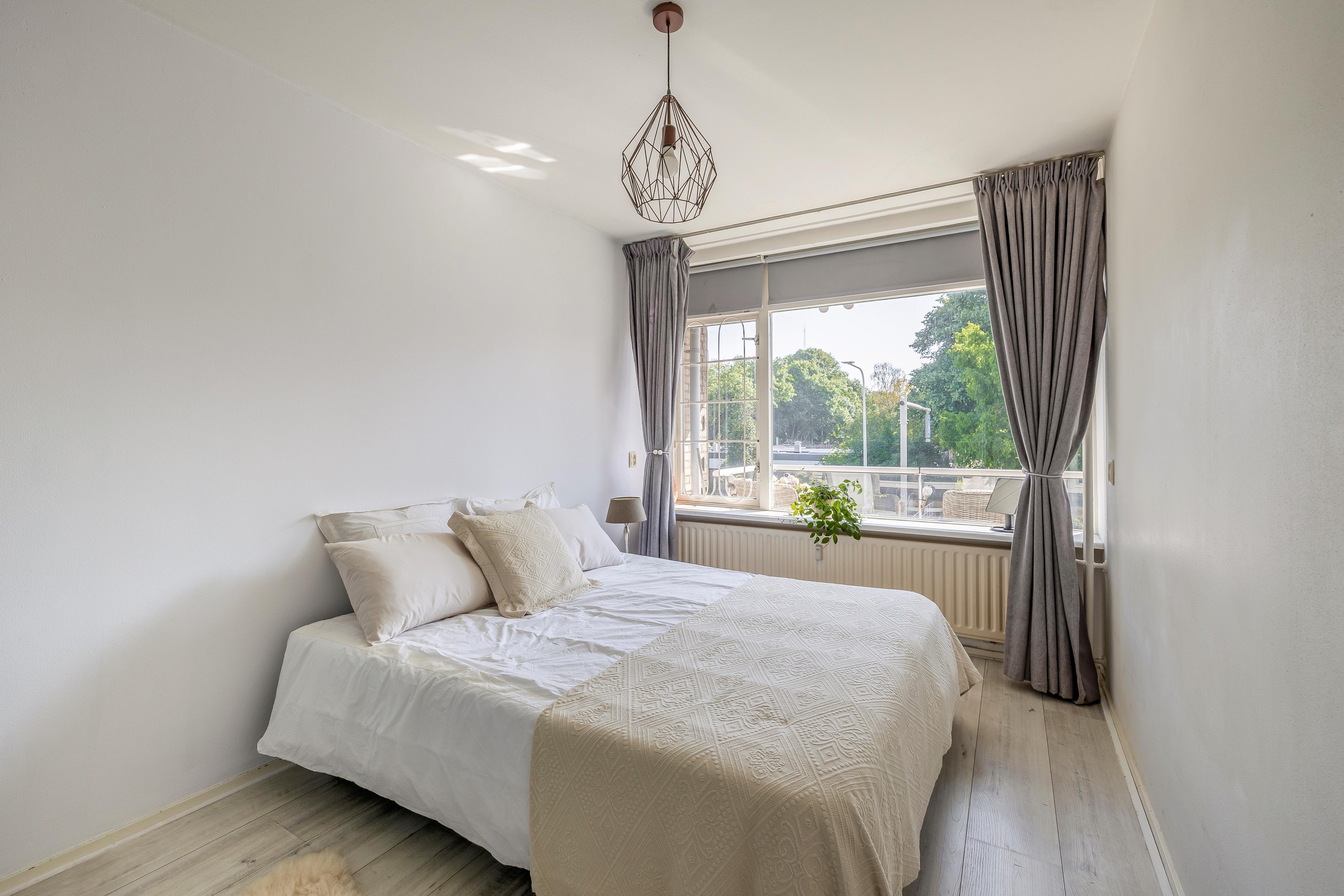 Vanuit de hal in het appartement zijn alle vertrekken bereikbaar. De ruime woonkamer aan de voorzijde heeft grote raampartijen die zorgen voor veel lichtinval en een prettig uitzicht over de straat. De lichte laminaatvloer loopt door in de gehele woning en geeft het appartement een moderne, rustige uitstraling.
