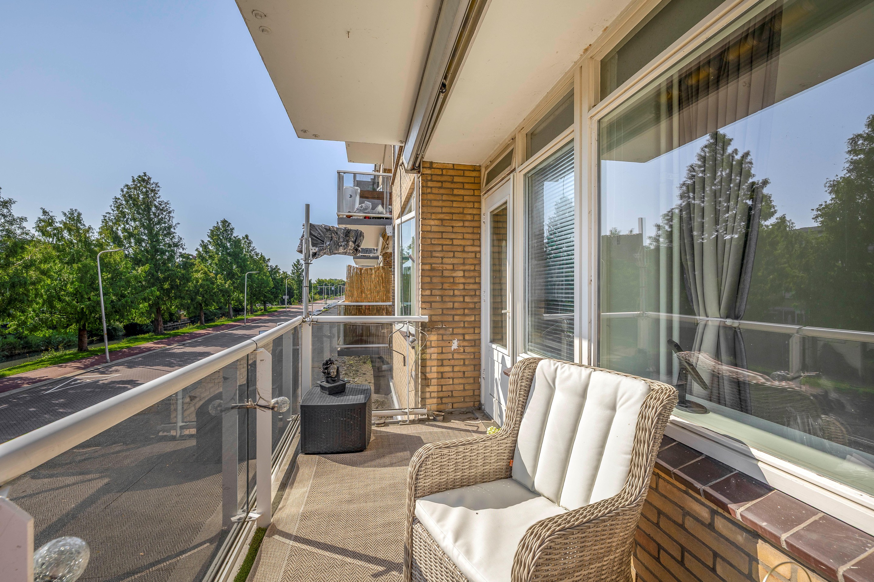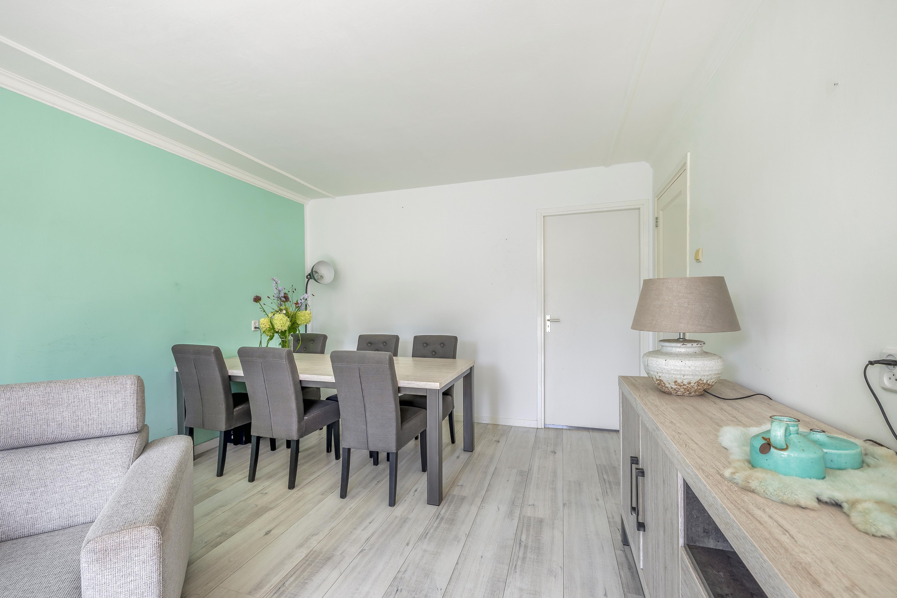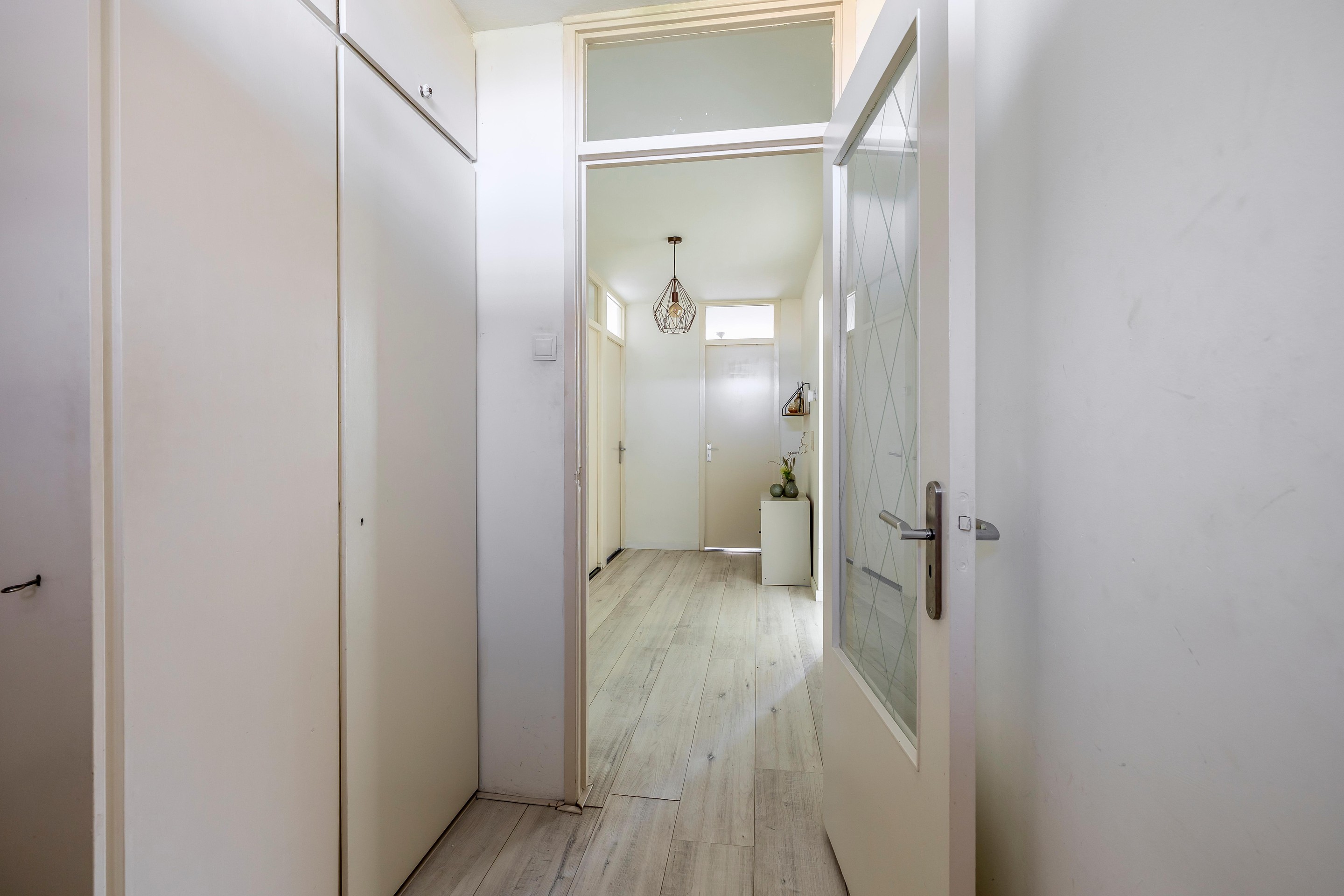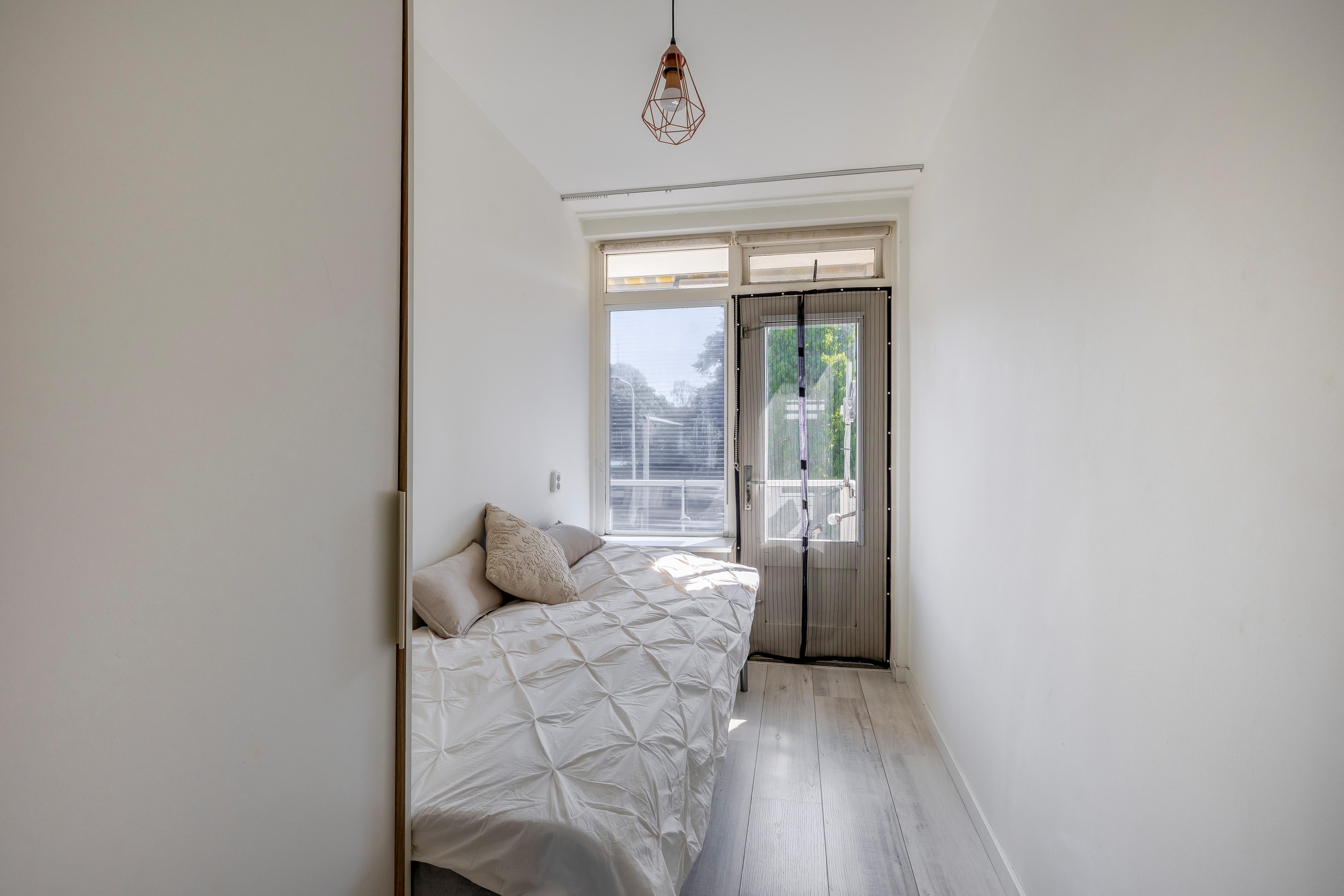 Vanuit de hal in het appartement zijn alle vertrekken bereikbaar. De ruime woonkamer aan de voorzijde heeft grote raampartijen die zorgen voor veel lichtinval en een prettig uitzicht over de straat. De lichte laminaatvloer loopt door in de gehele woning en geeft het appartement een moderne, rustige uitstraling.