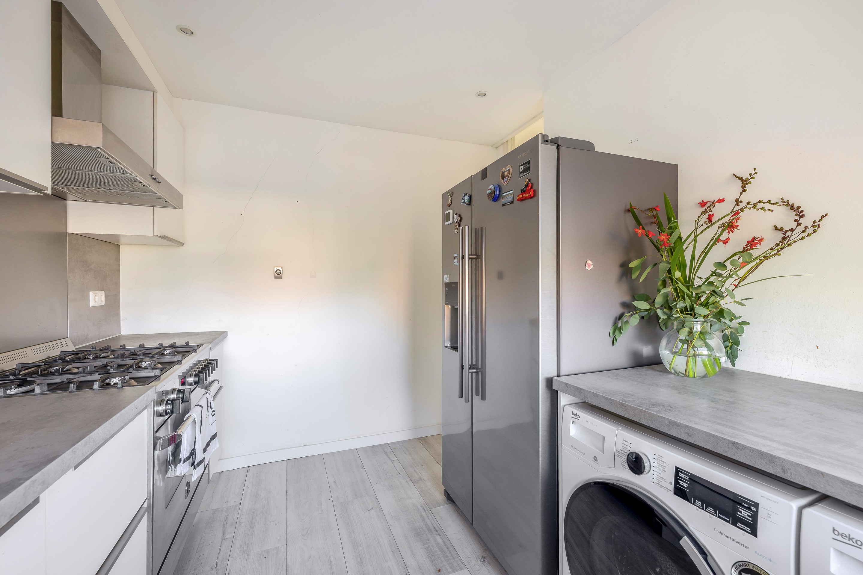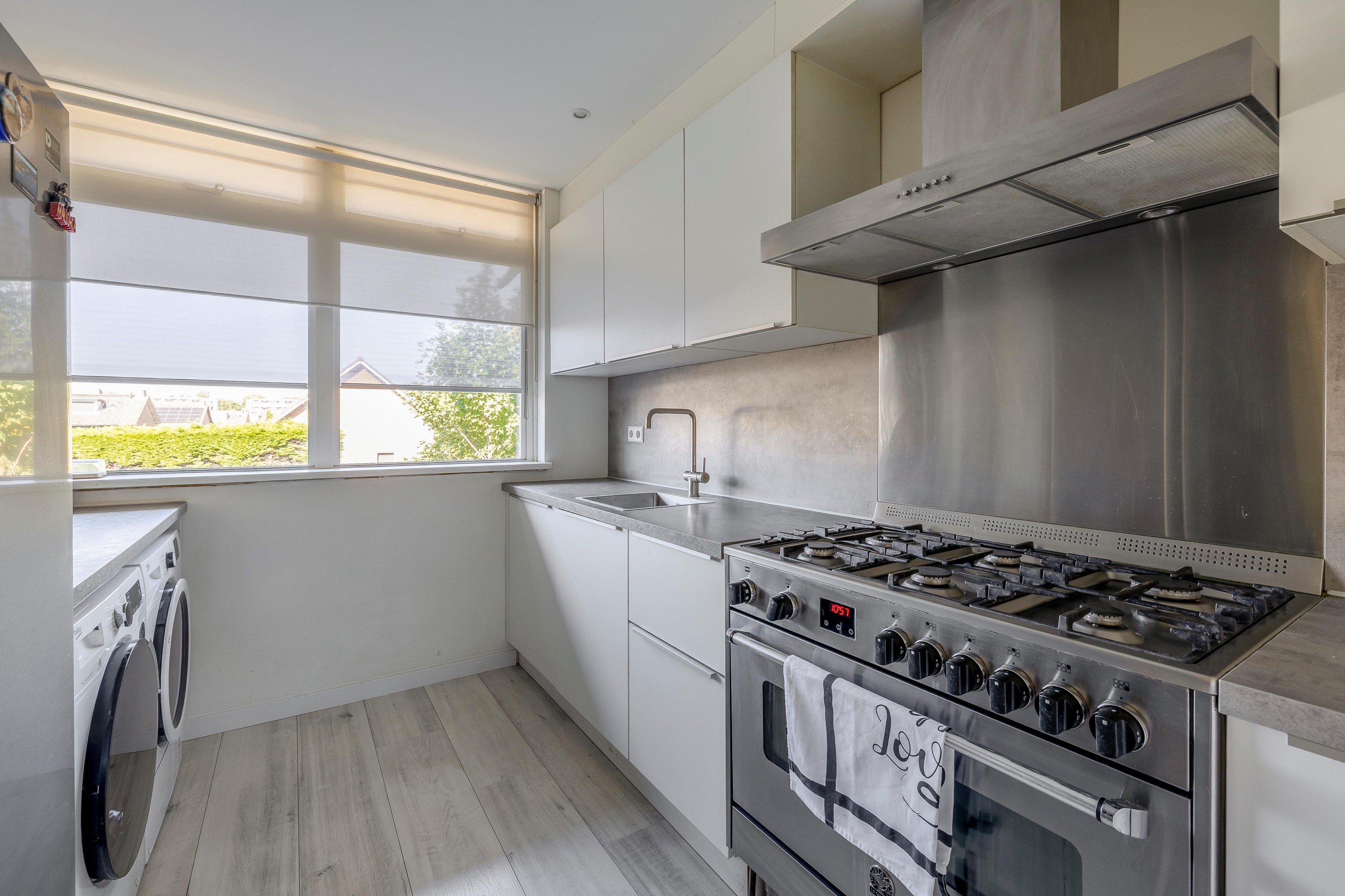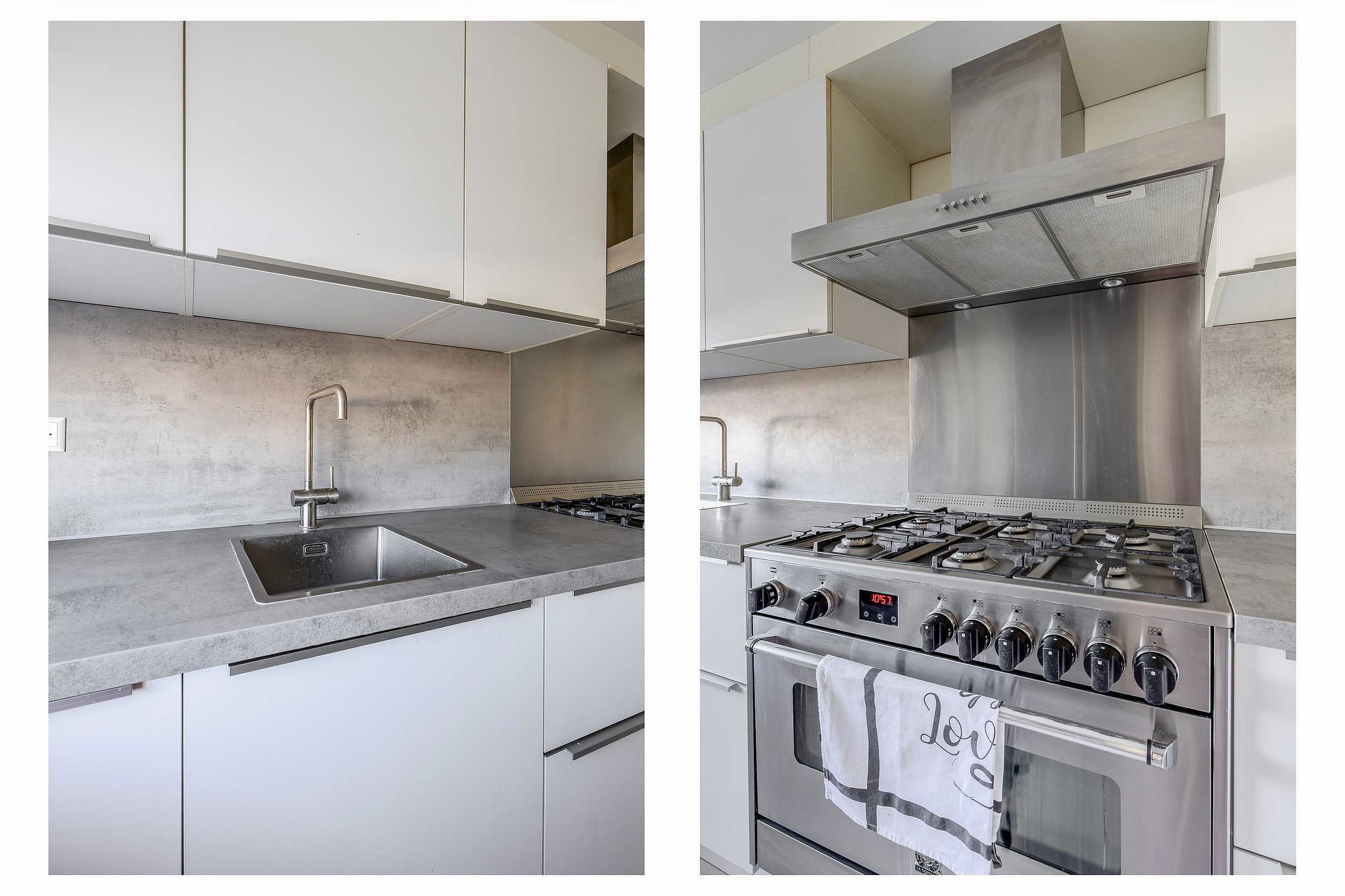 De keuken (eind 2017) is aan de achterzijde gesitueerd en voorzien van een strak werkblad, witte fronten en een RVS-achterwand. Hier is ruimte voor een Amerikaanse koelkast, een groot 6-pits gasfornuis met oven, en de aansluitingen voor zowel wasmachine als droger. Dankzij de efficiënte indeling biedt de keuken veel werk- en opbergruimte, ideaal voor kookliefhebbers.