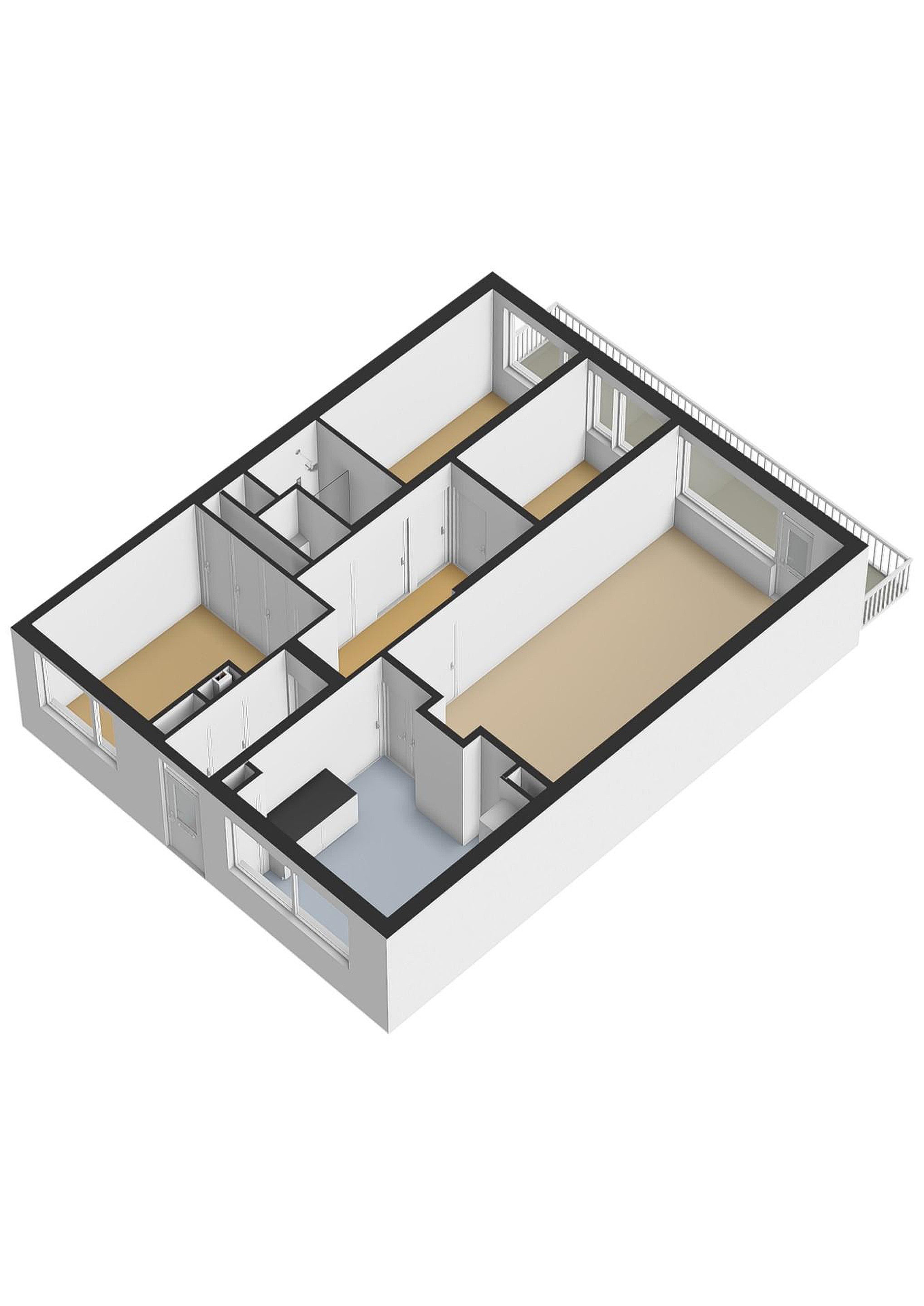 De woonkamer heeft een oppervlak van 26,00m2 en is door de rechthoekige vorm praktisch in te delen. Er is veel lichtinval door het grote raam. Vanuit de woonkamer kun je naar het balkon. De keuken bevindt zich aan de galerijzijde. Je kunt hier komen door de rechtstreekse verbinding naar de woonkamer en ook via een deur die op de centrale hal aansluit.