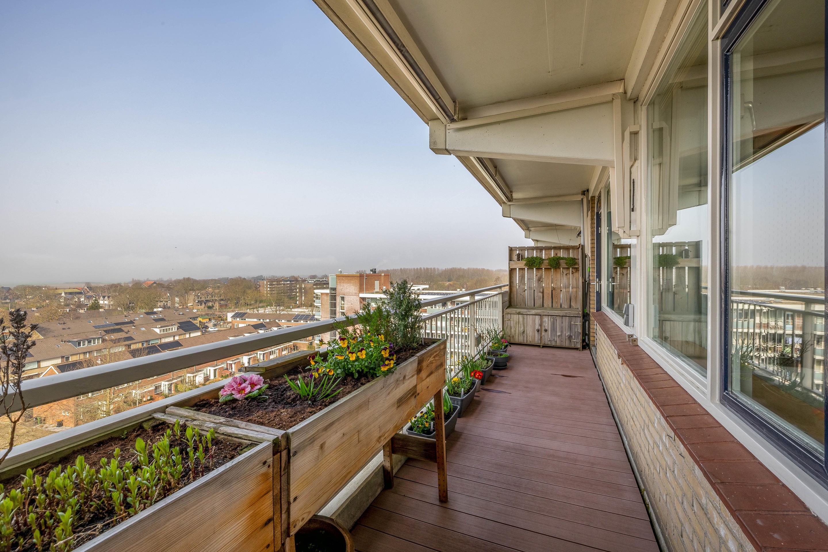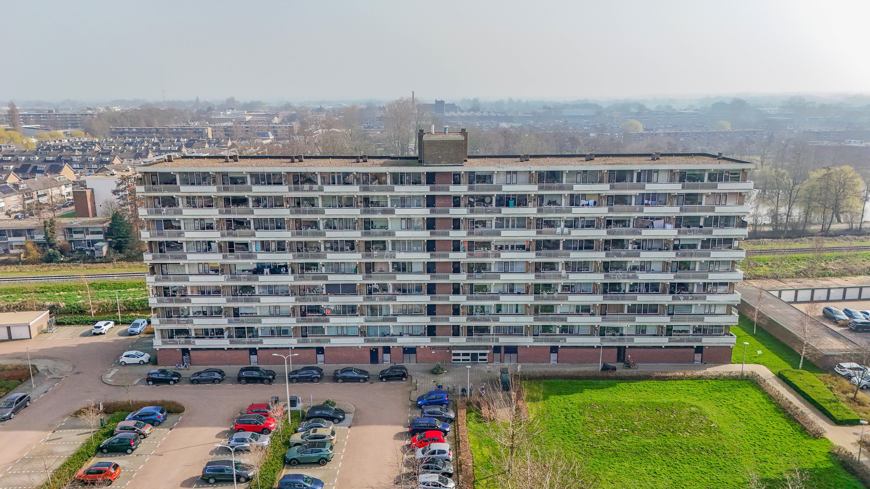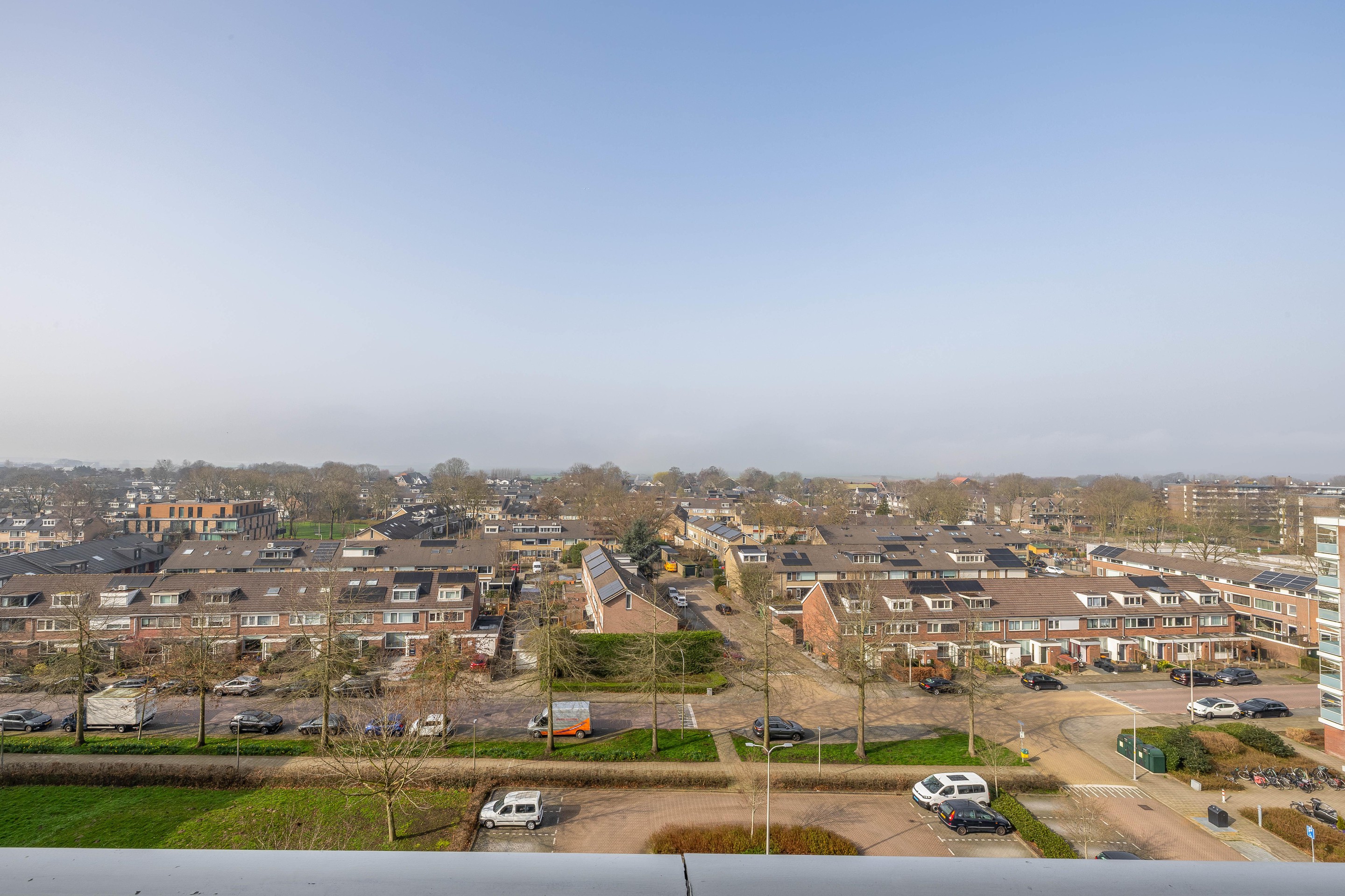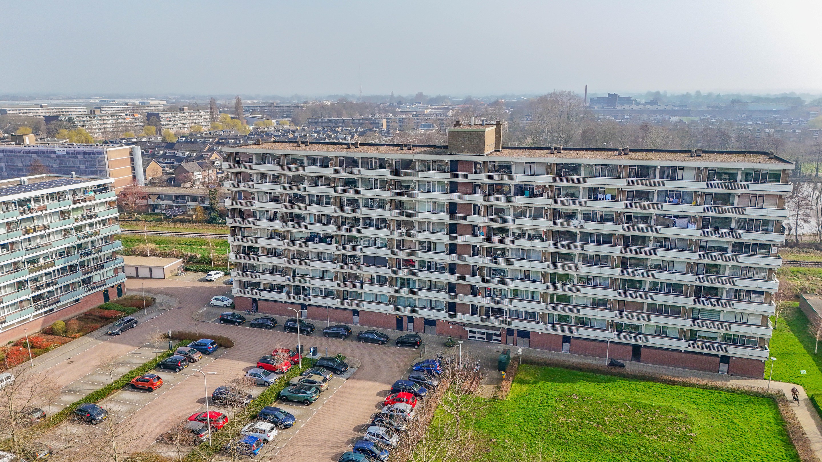 Als iets hier onderscheidend is, dan is het wel het uitzicht. Vanaf de achtste verdieping kijk je fantastisch ver weg en kun je vaak genieten van de ondergaande zon. Dit 4-kamer appartement is heerlijk ruim en licht, uitstekend onderhouden, zeer verzorgd bewoond en verkeert daarmee in goede staat. Door de tijd heen zijn goede investeringen gedaan, zoals dubbel glas in alle kamers inclusief de bovenlichten, moderne groepenkast en uitbreiding van elektra, twee moderne elektrisch bediende zonneschermen en ook badkamer en toilet zijn in de afgelopen jaren vernieuwd.