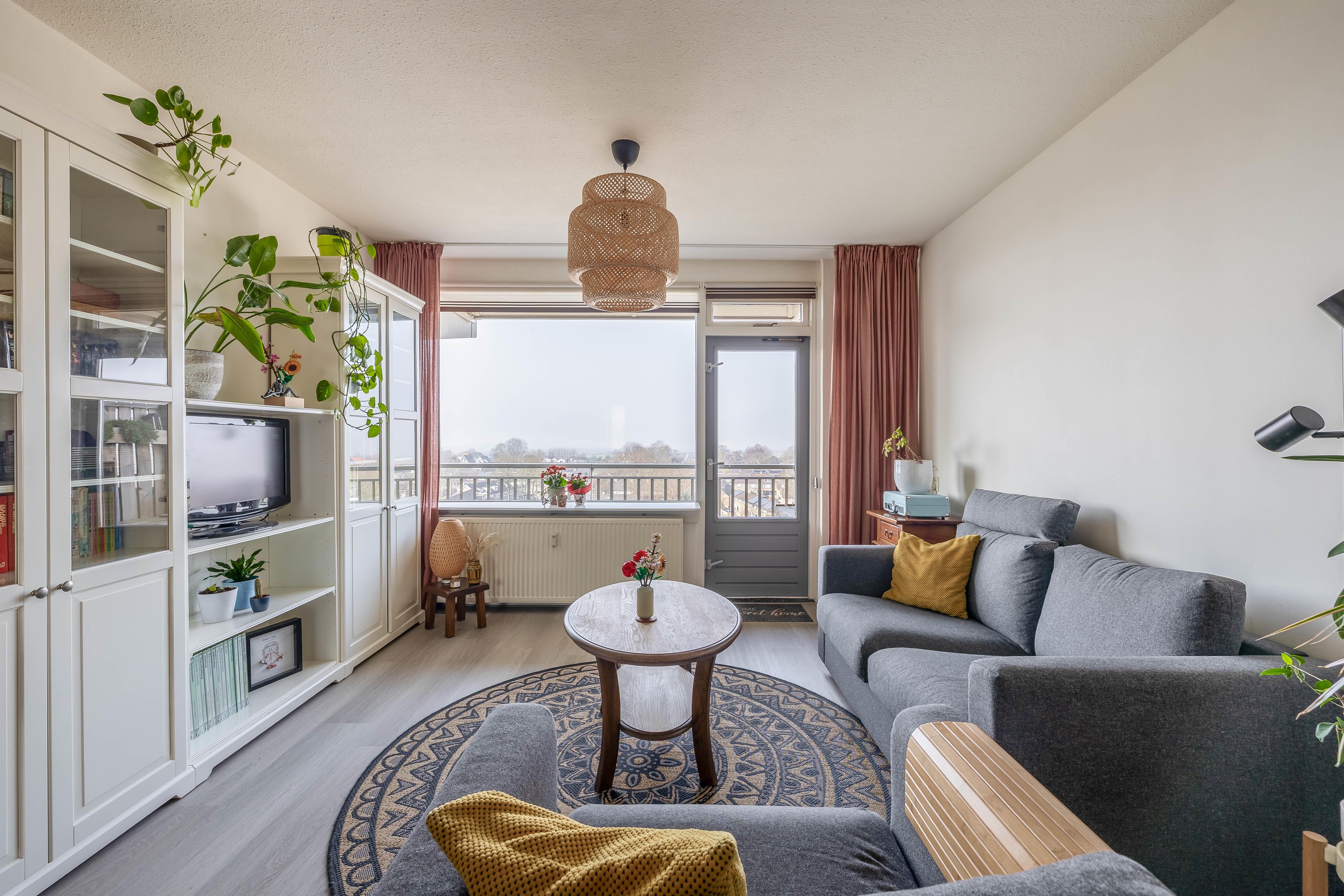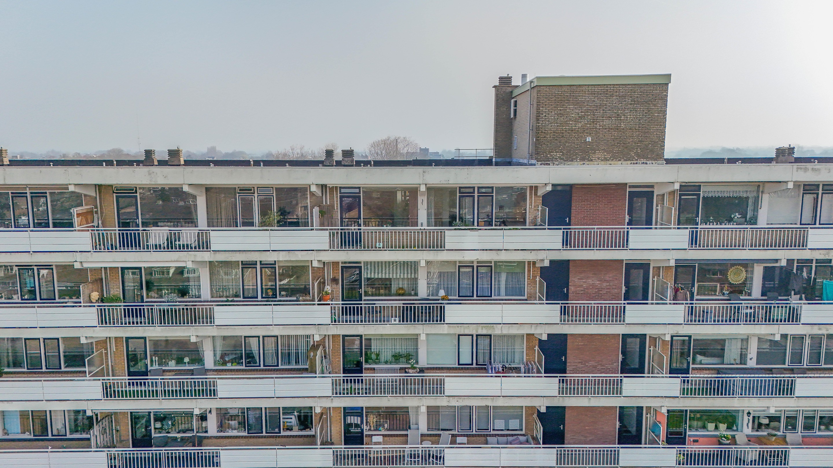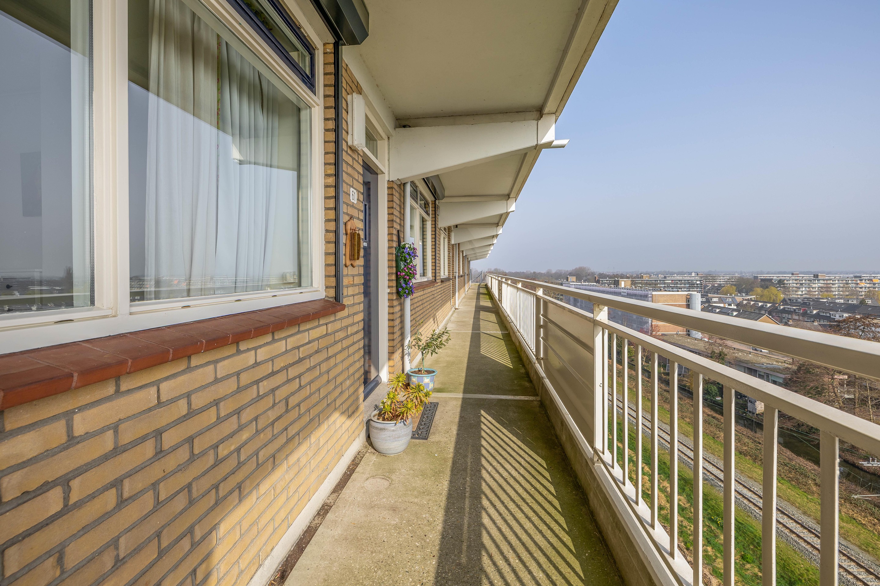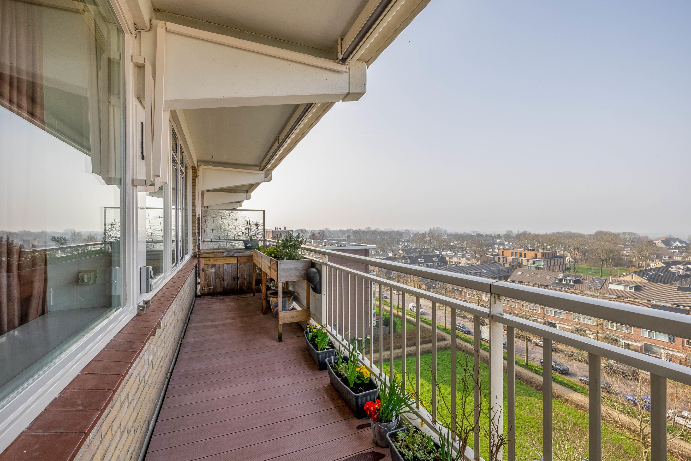 Als iets hier onderscheidend is, dan is het wel het uitzicht. Vanaf de achtste verdieping kijk je fantastisch ver weg en kun je vaak genieten van de ondergaande zon. Dit 4-kamer appartement is heerlijk ruim en licht, uitstekend onderhouden, zeer verzorgd bewoond en verkeert daarmee in goede staat. Door de tijd heen zijn goede investeringen gedaan, zoals dubbel glas in alle kamers inclusief de bovenlichten, moderne groepenkast en uitbreiding van elektra, twee moderne elektrisch bediende zonneschermen en ook badkamer en toilet zijn in de afgelopen jaren vernieuwd.