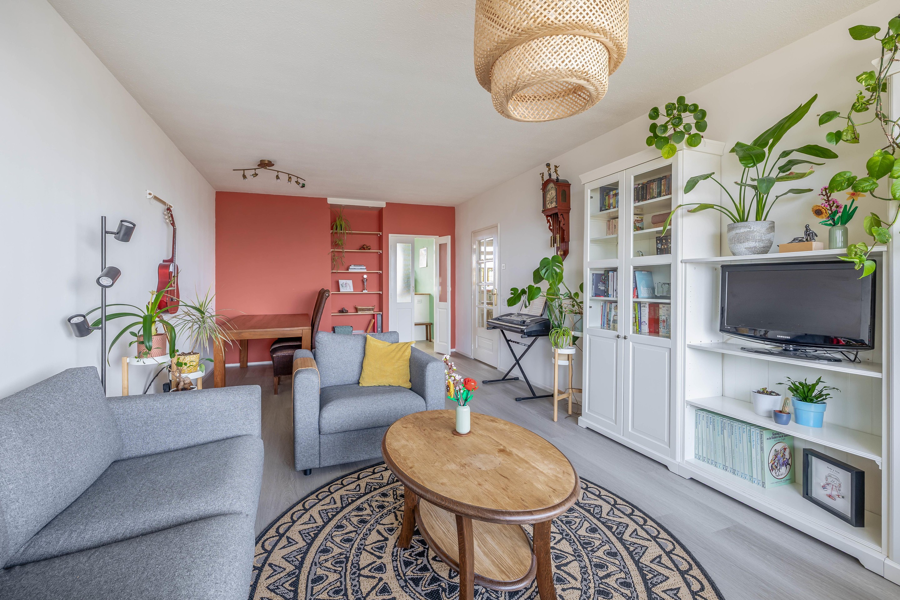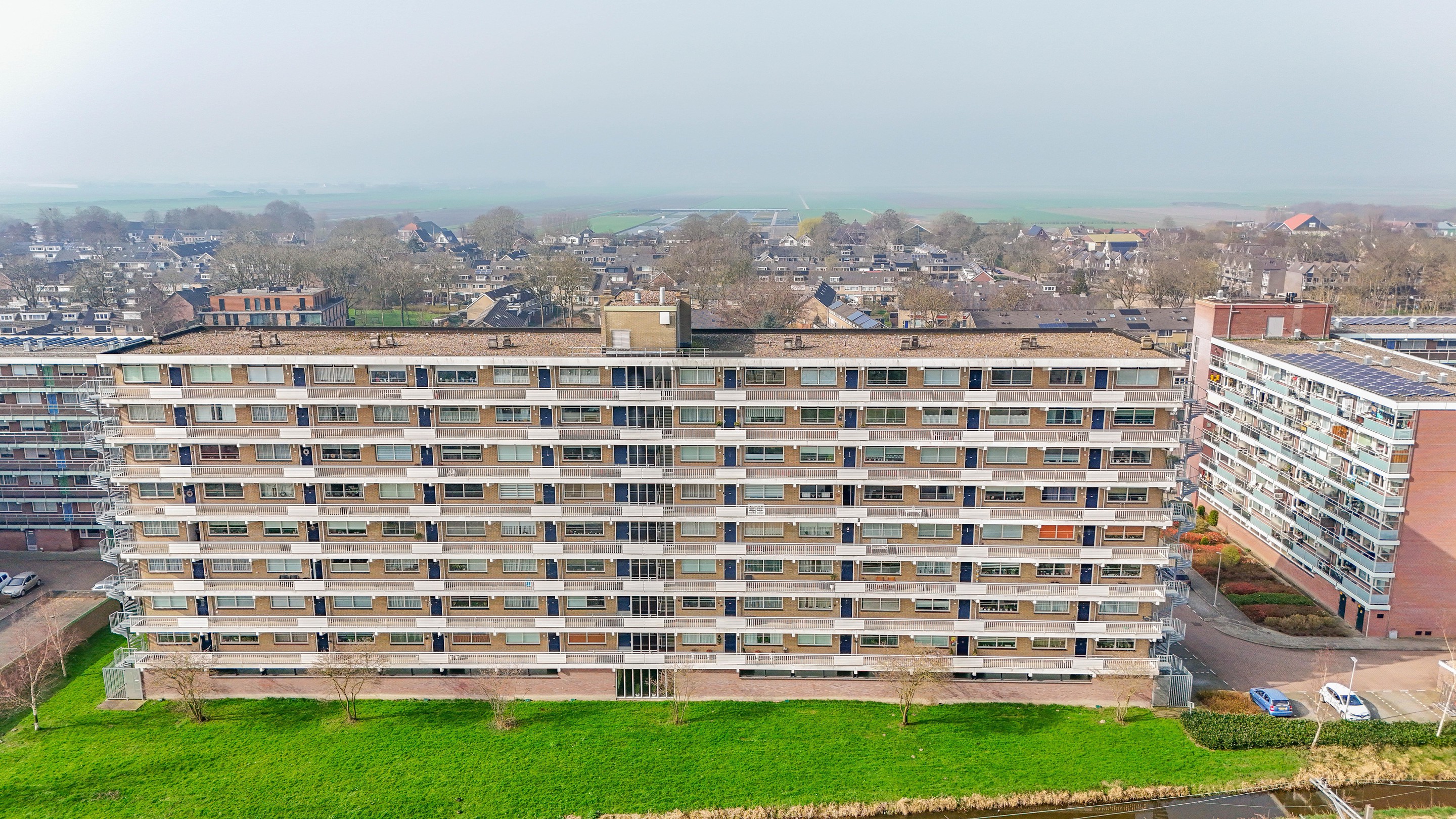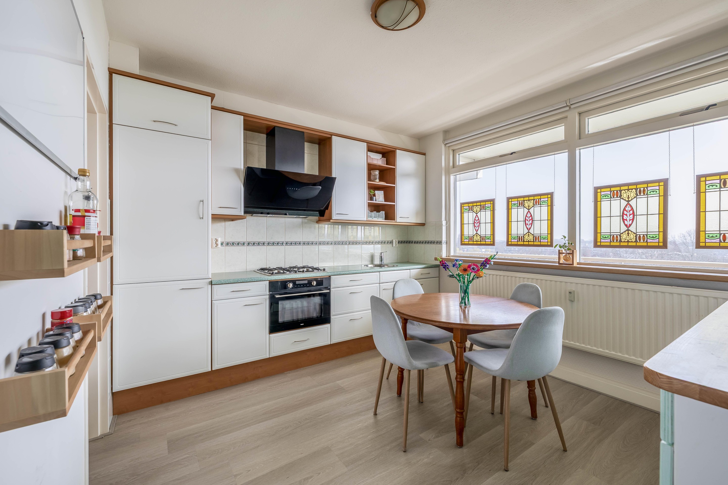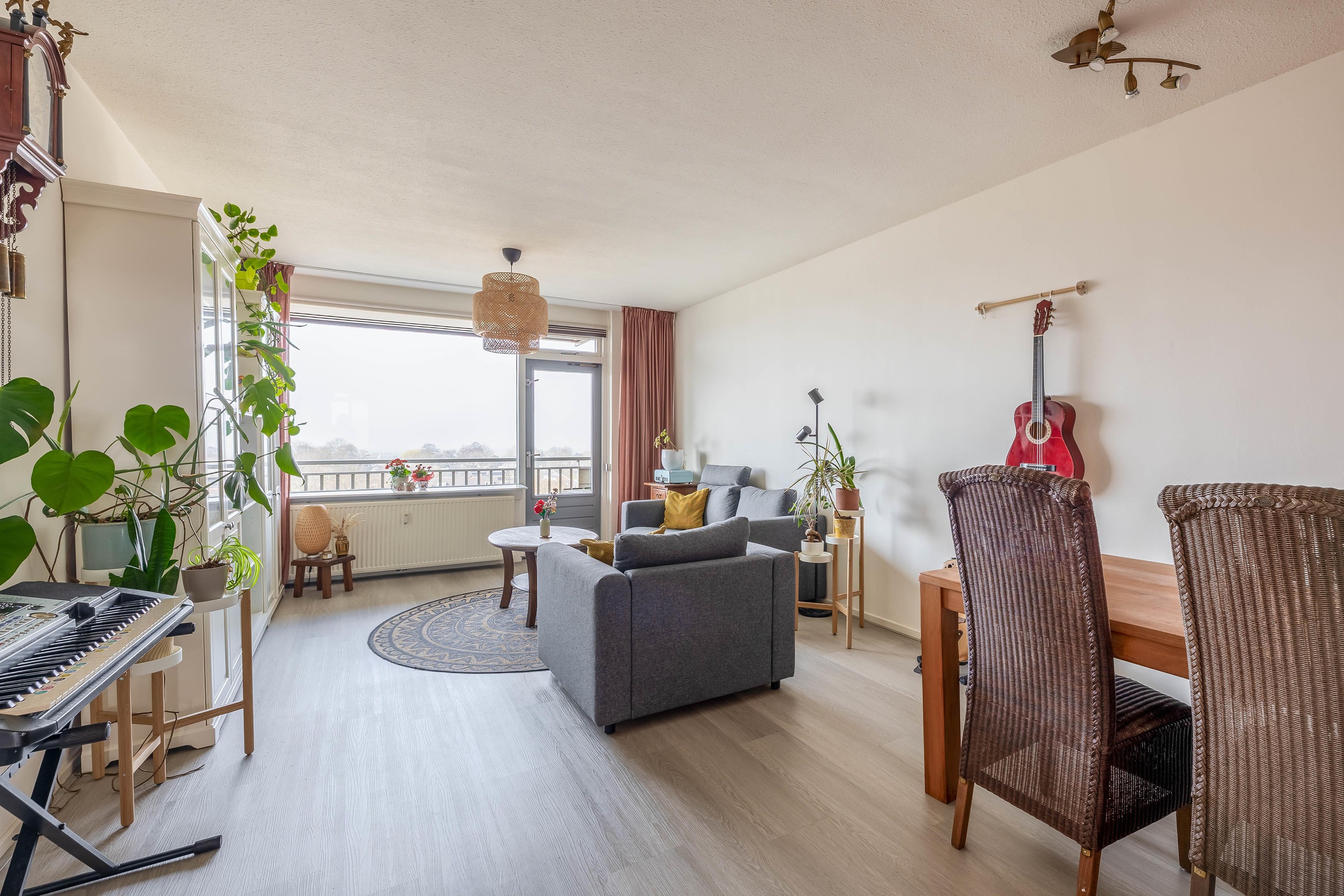 Als iets hier onderscheidend is, dan is het wel het uitzicht. Vanaf de achtste verdieping kijk je fantastisch ver weg en kun je vaak genieten van de ondergaande zon. Dit 4-kamer appartement is heerlijk ruim en licht, uitstekend onderhouden, zeer verzorgd bewoond en verkeert daarmee in goede staat. Door de tijd heen zijn goede investeringen gedaan, zoals dubbel glas in alle kamers inclusief de bovenlichten, moderne groepenkast en uitbreiding van elektra, twee moderne elektrisch bediende zonneschermen en ook badkamer en toilet zijn in de afgelopen jaren vernieuwd.