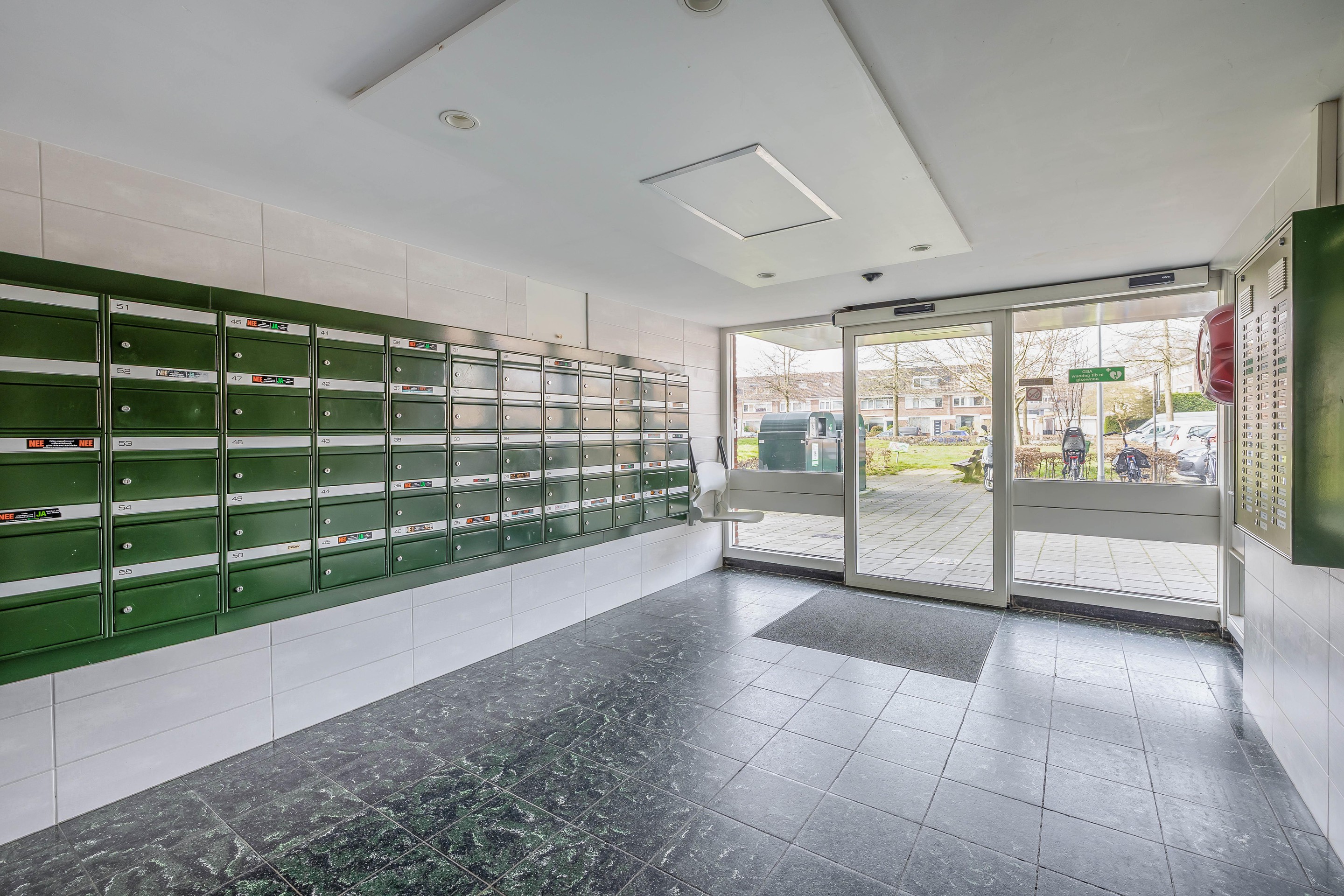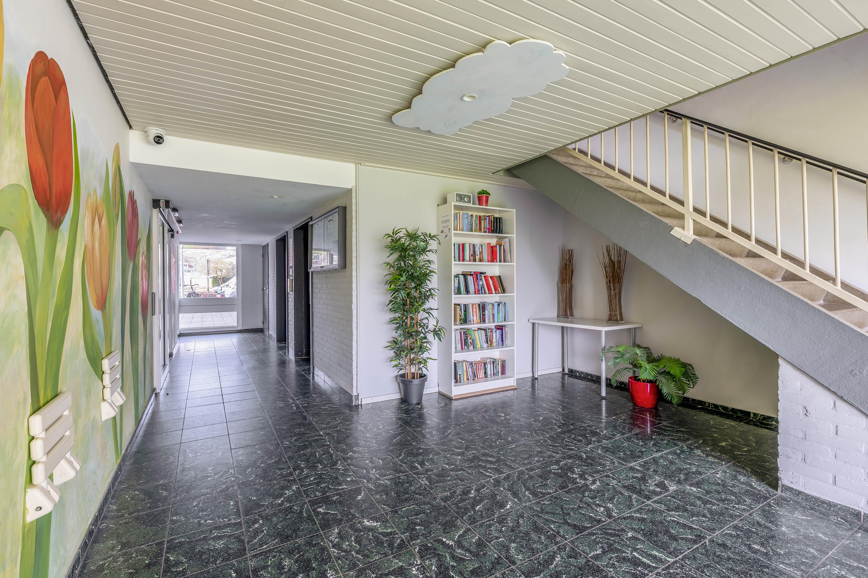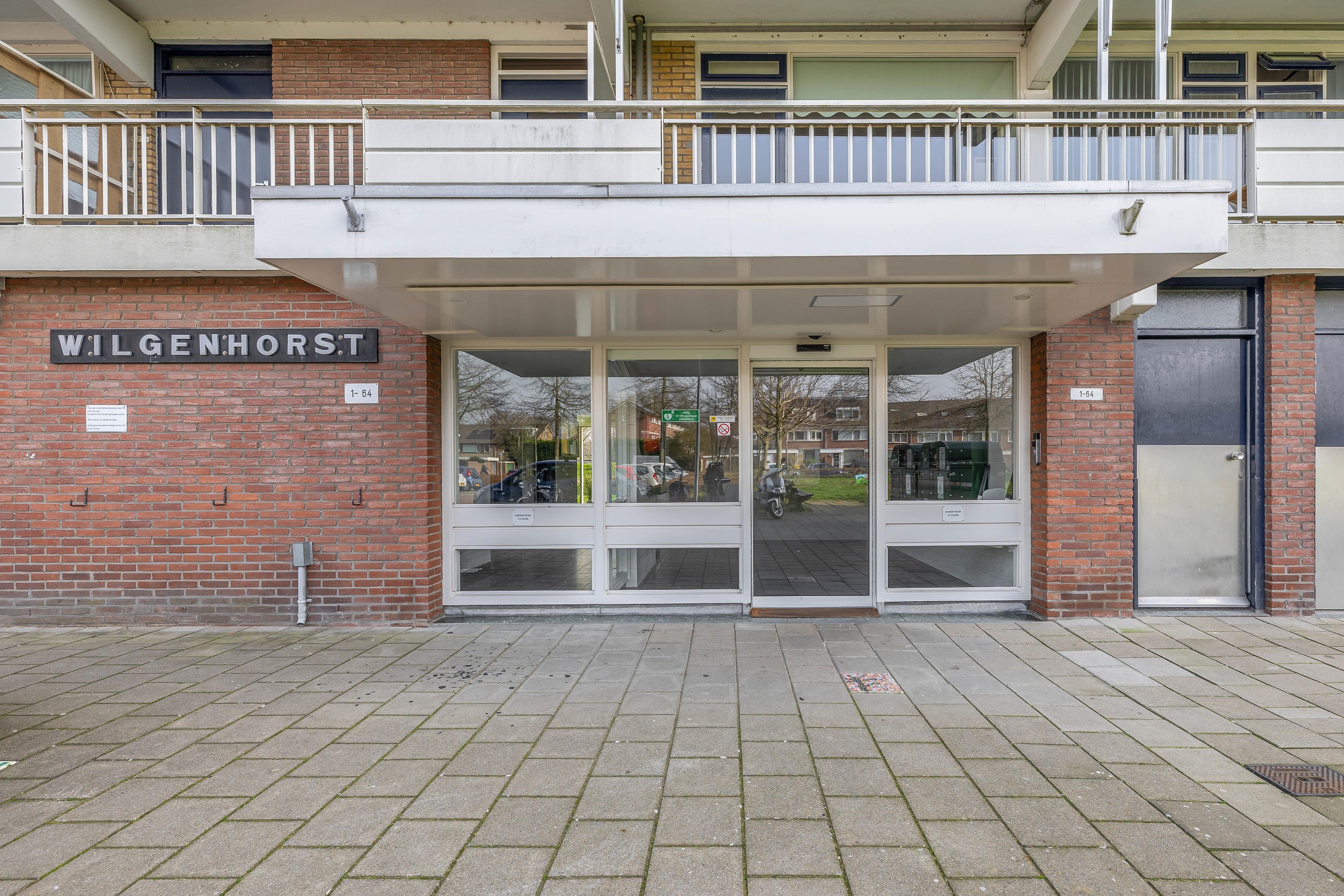 Centrale hal met bellenbord, brievenbussen en intercom. De entree naar de beide liften en het trappenhuis is niet vrij toegankelijk, maar afgesloten met een elektrisch bediende deur. Achterin de centrale hal is de toegangsdeur naar de berging. Zowel de centrale hal op de begane grond, als ook die op de verdieping zijn goed onderhouden, grotendeels betegeld en maken een verzorgde indruk. De galerij is schoon en netjes. Kortom, aan de Wilgenhorst is het plezierig thuiskomen.