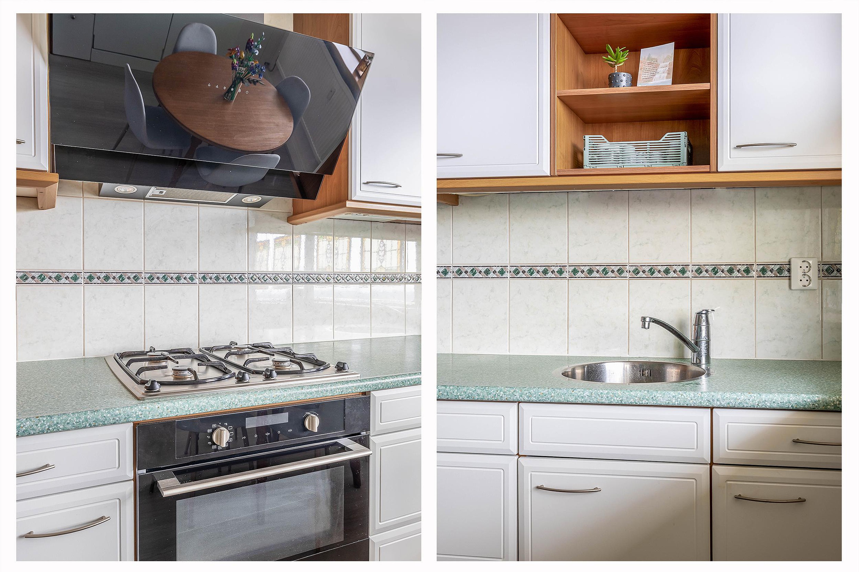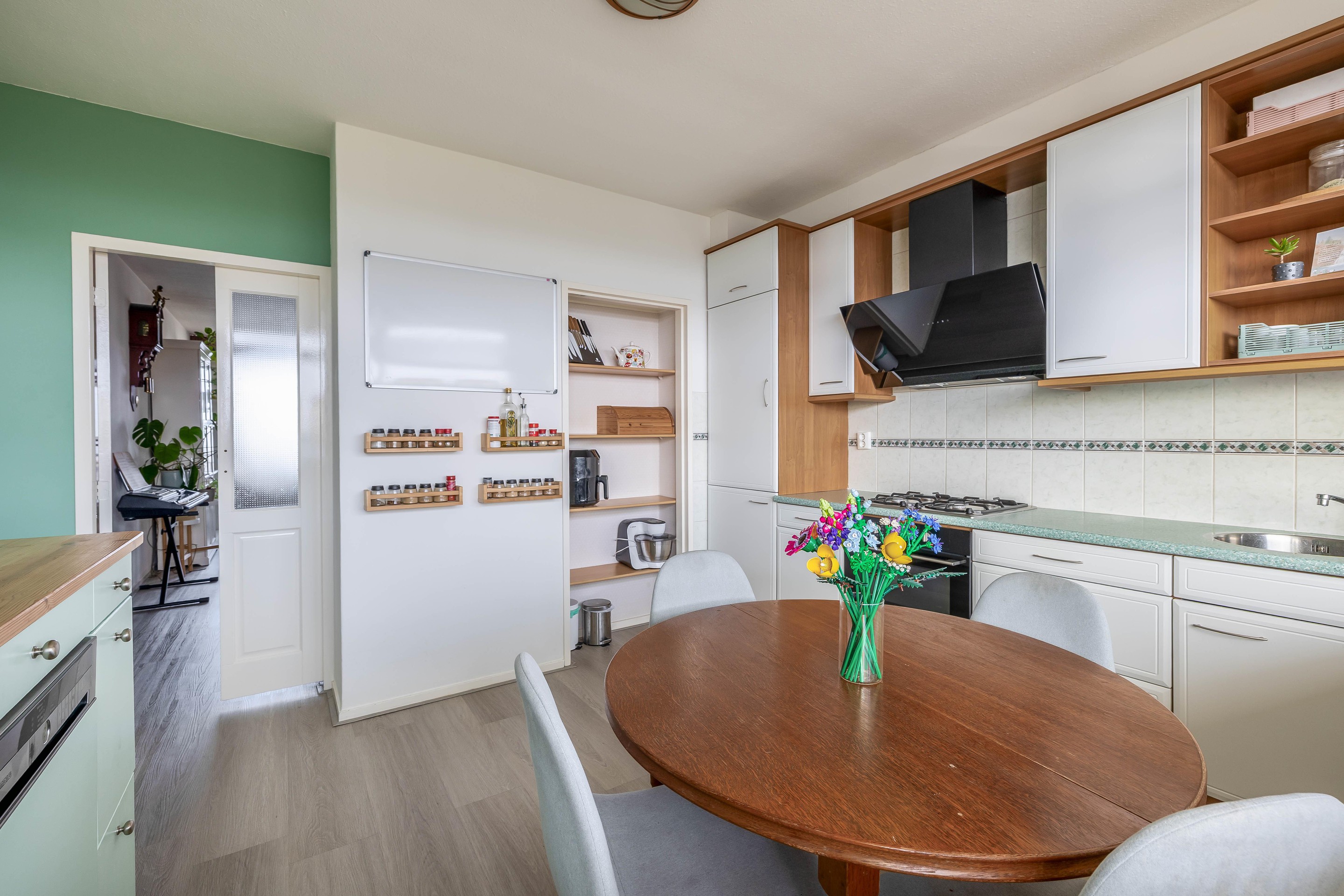 De rechte keukenopstelling is van oudere datum, maar verkeert in goede conditie. De aanwezige koelkast met drie vriesladen en de combi-oven zijn in 2020 vernieuwd en inmiddels is ook een moderne afzuigschouw geplaatst. Verder beschik je over een 4-pits gaskookplaat en spoelbak. Er is al 3-fase stroom naar de keuken gelegd voor toekomstig inductie koken. Aan de andere zijde van de keuken is recent een kast gemaakt met hierin de wasmachineaansluiting en een vaatwasser, zodat dit netjes afgewerkt is. De CV-ketel voor de warmwatervoorziening is eveneens aan deze zijde aanwezig en in een kast geplaatst.
