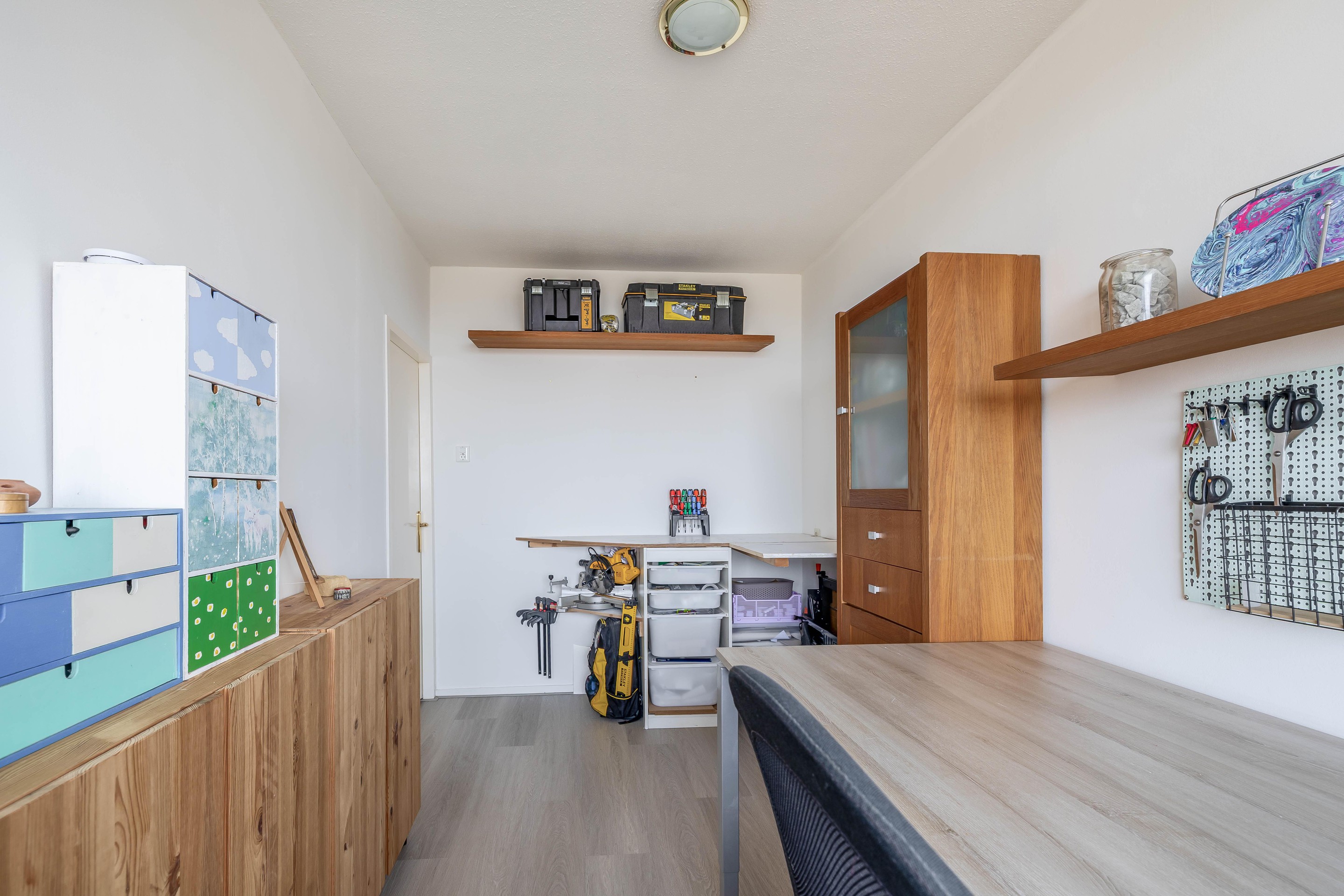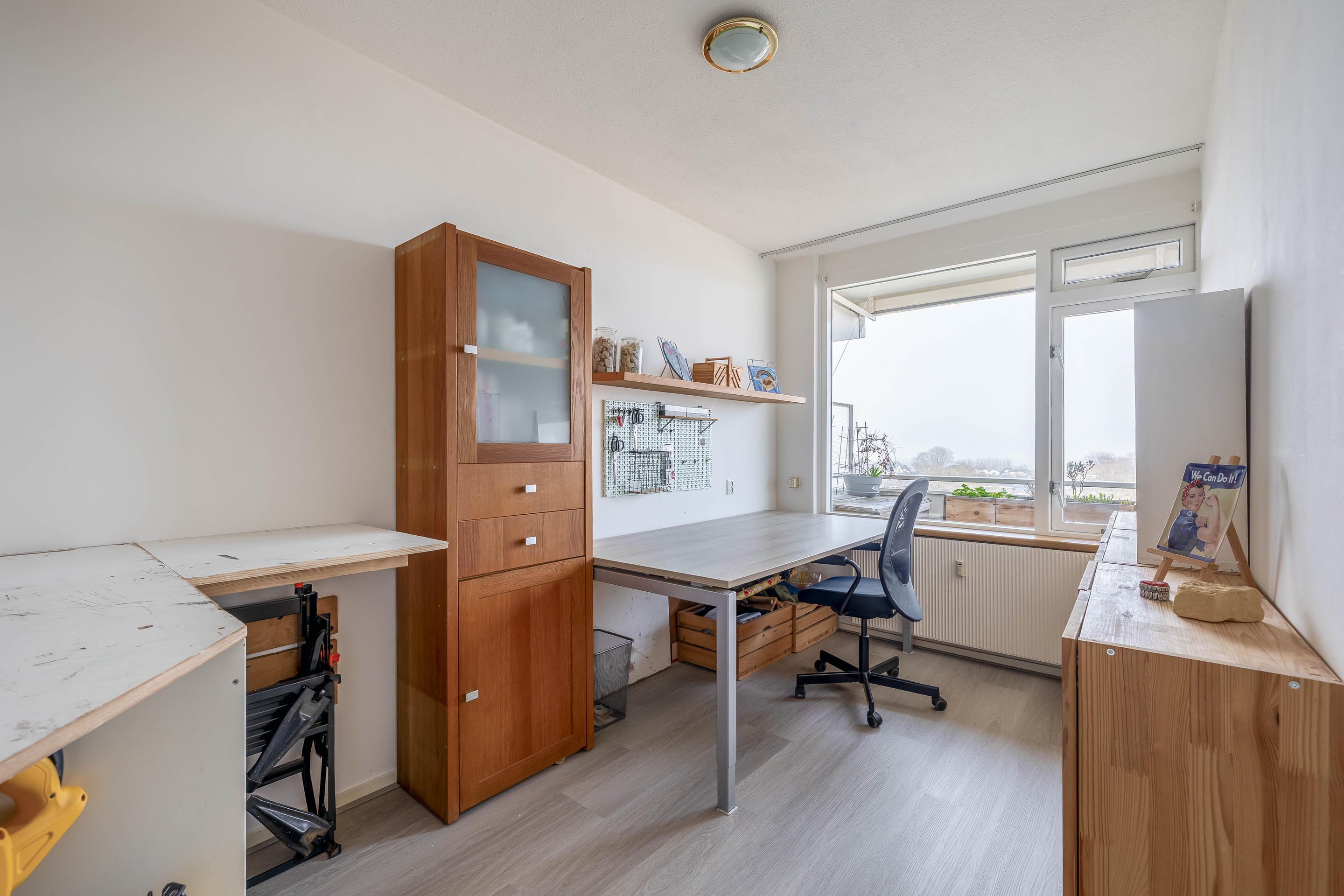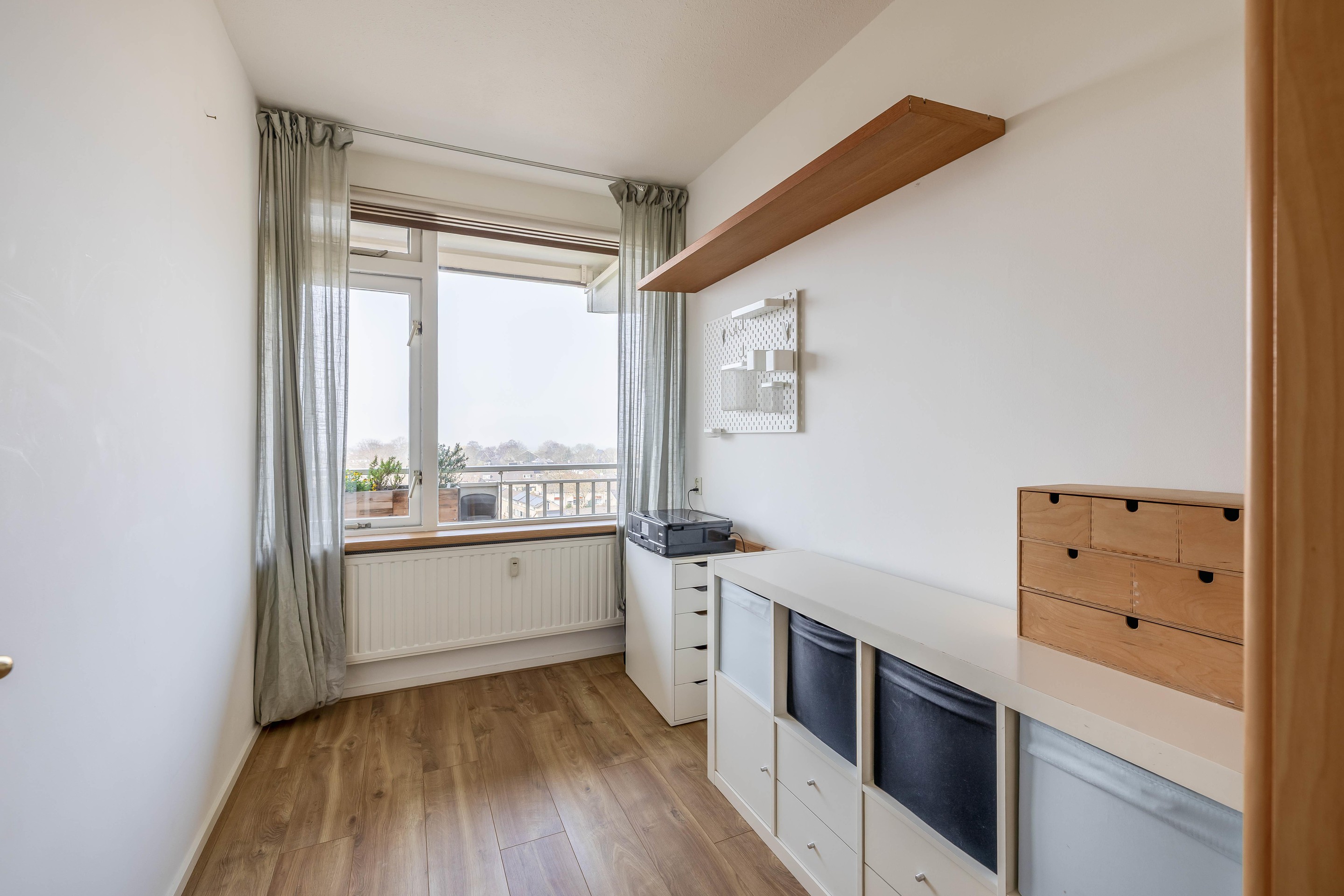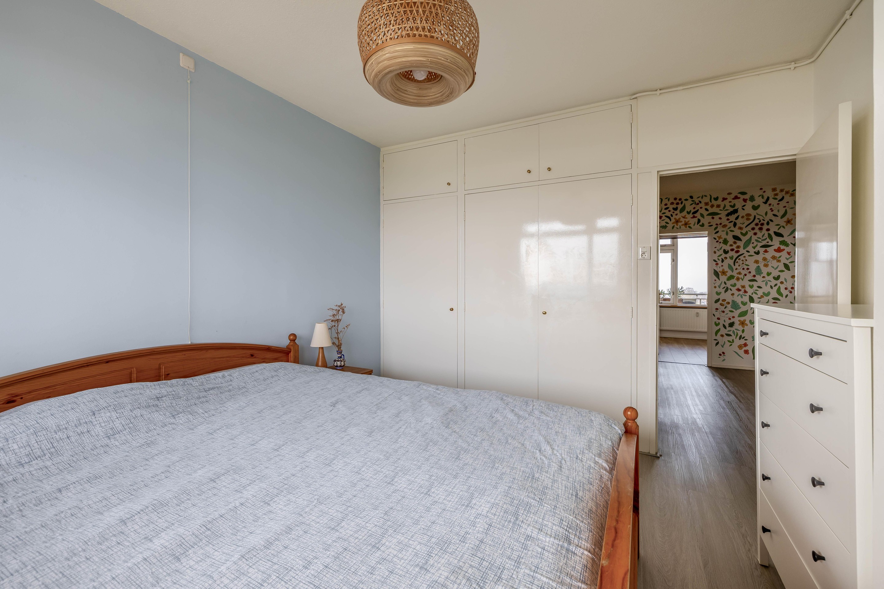 Er zijn in het appartement drie slaapkamers. De grootste kamer is aan de galerijzijde en beschikt over vaste inbouwkasten. De badkamer en toilet zijn tegelijk vernieuwd en daarbij voorzien van hetzelfde tegelwerk en kleurstelling. Het toilet heeft een vrij hangend closet, een fontein met onderbouwkastje, is geheel betegeld en voorzien van verlaagd plafond met inbouwspots.