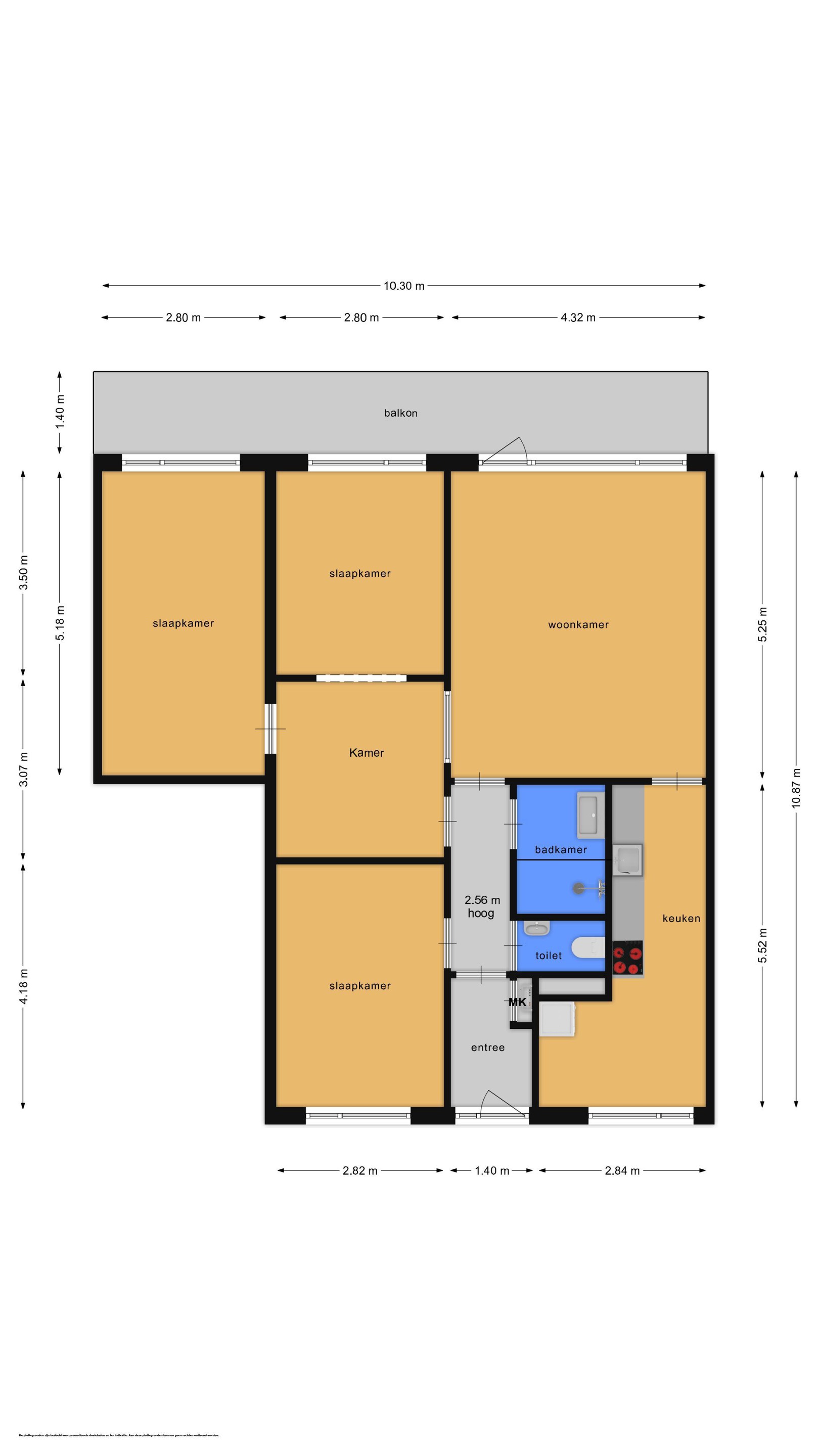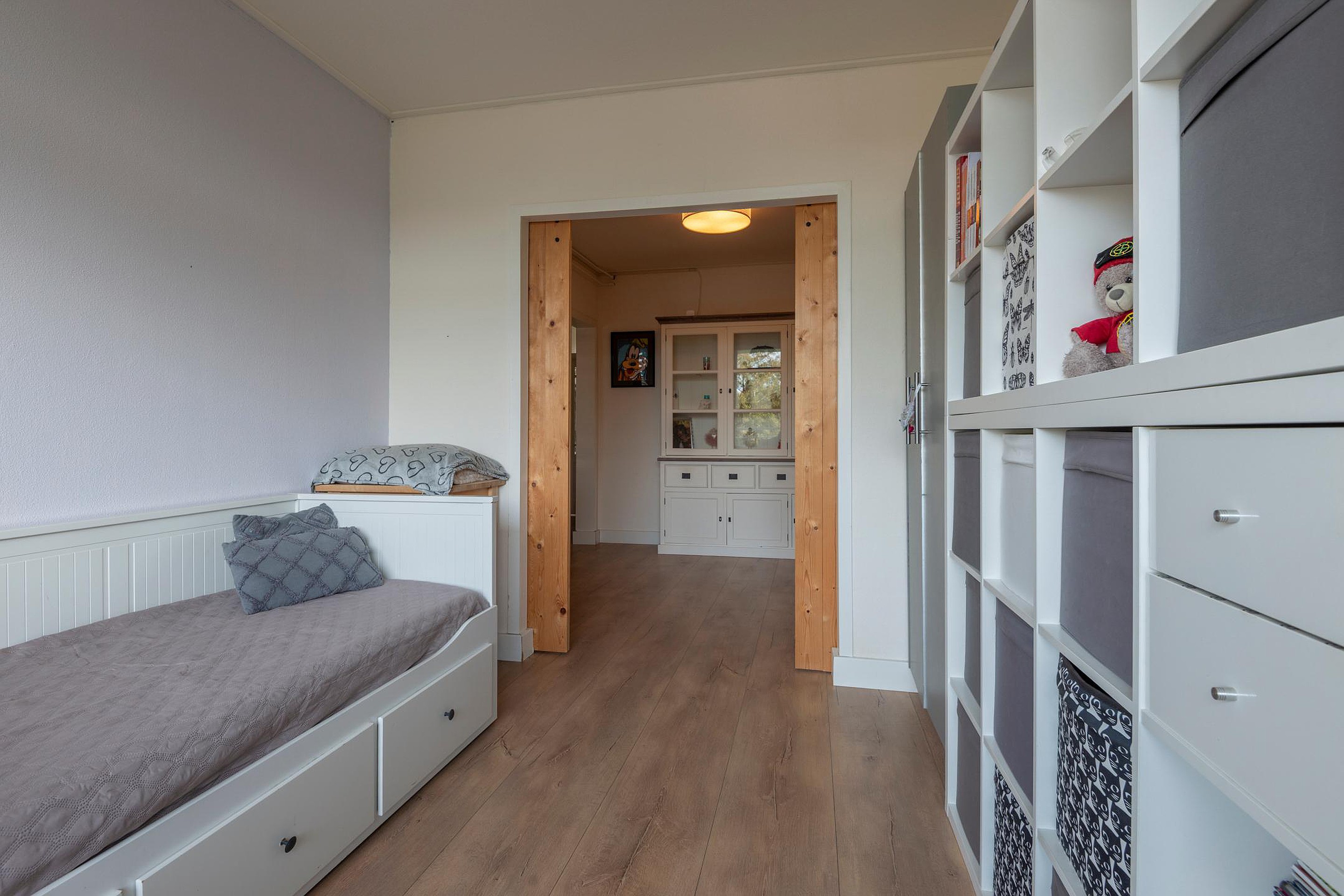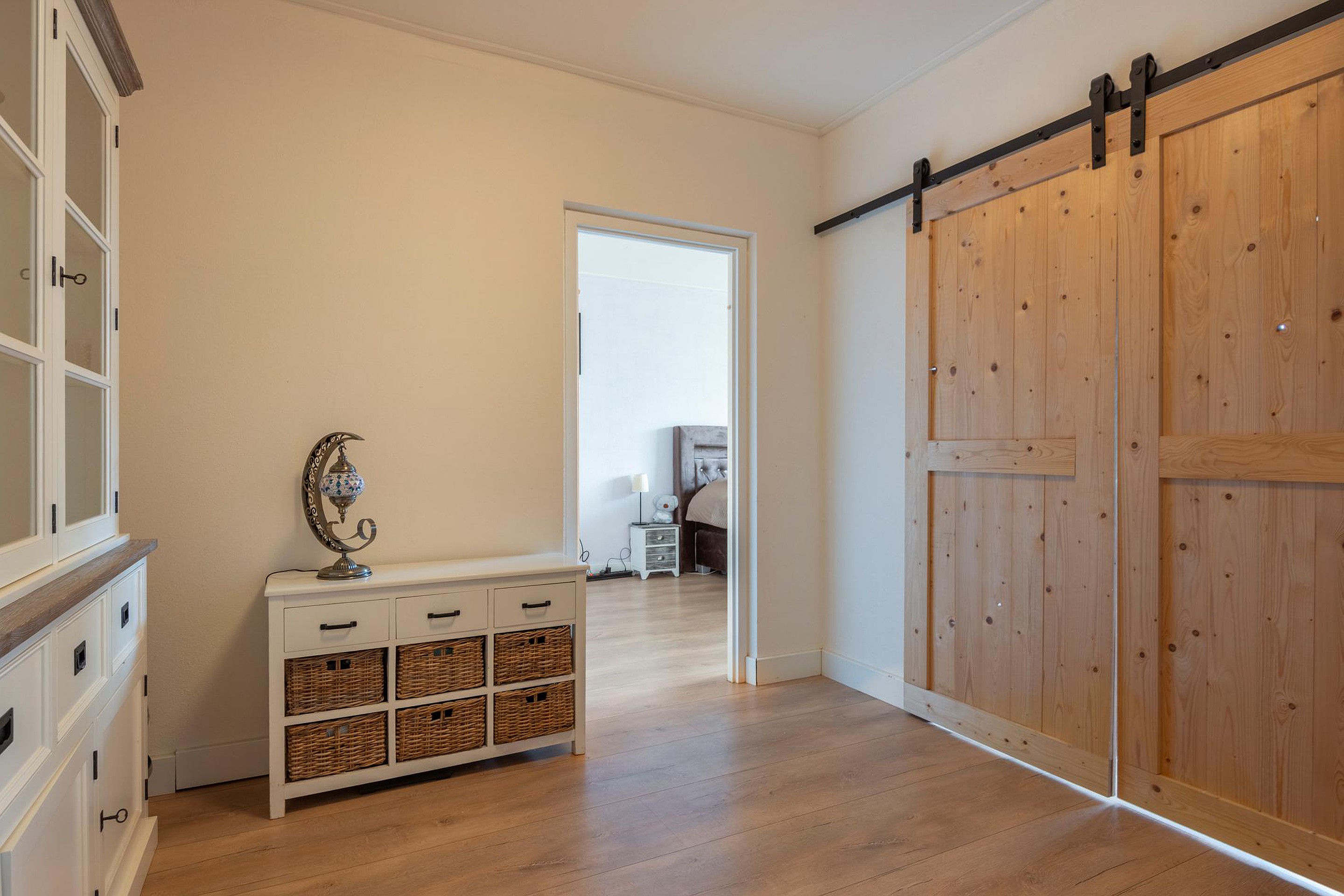 Via een “tussenkamer”, momenteel in gebruik als speelhal, zijn een ruime tweede en derde slaapkamer aan de achterzijde bereikbaar. Het gehele appartement is voorzien van een drempelloze laminaatvloer.