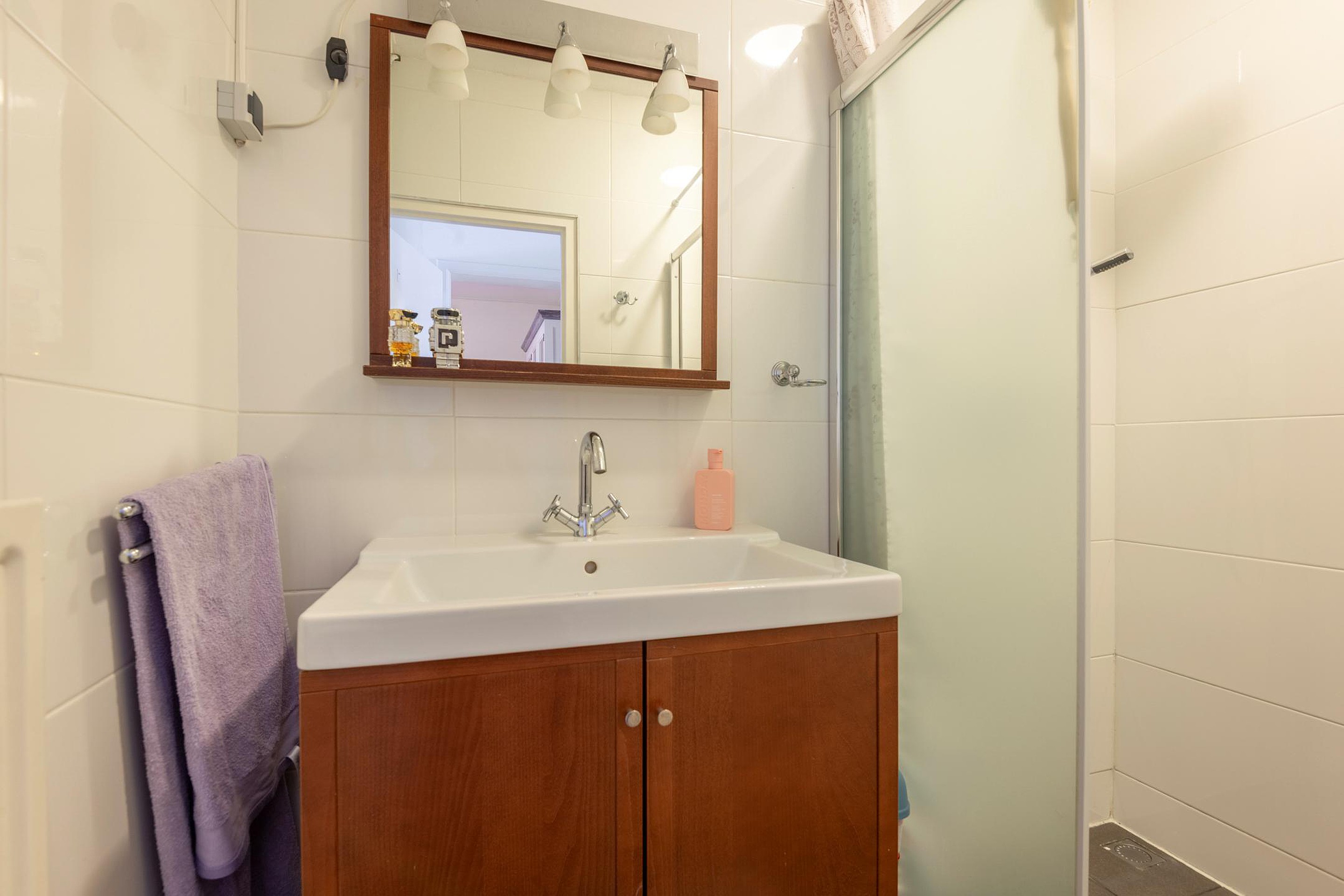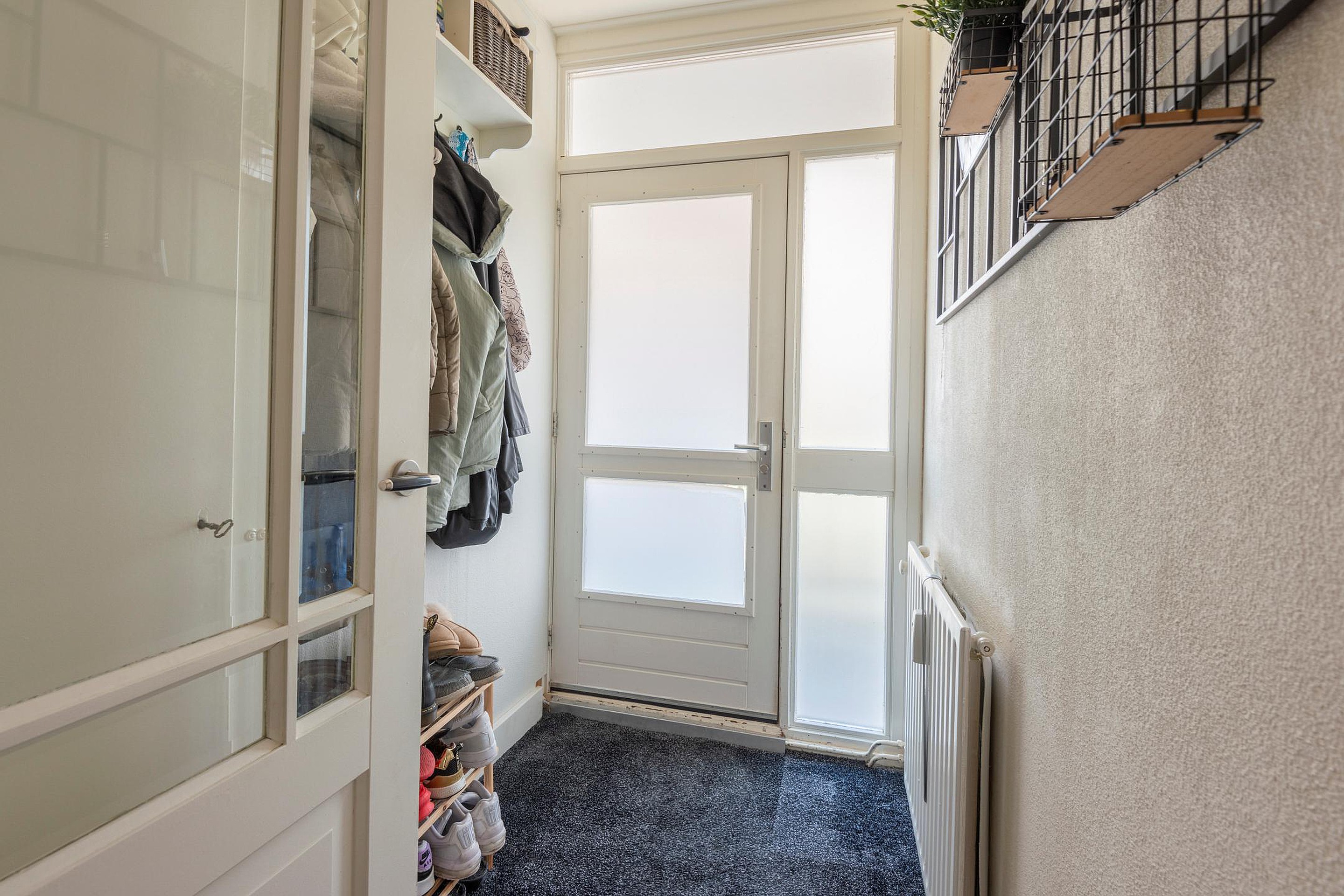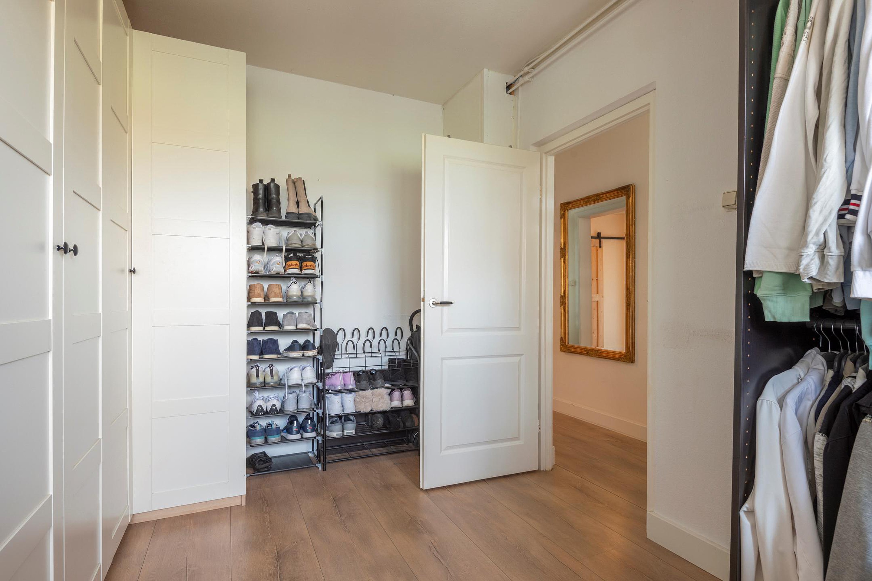 Entree, hal met tochthal, uitgebreide meterkast en garderobe. De gang geeft toegang tot een separate toiletruimte met vrij hangend toilet met fonteintje, een badkamer met inloopdouche en wastafelmeubel met spiegelkast. Ruime slaapkamer van ca. 12 m2 aan de voorzijde (de wasmachine-/drogeraansluiting nog aanwezig).