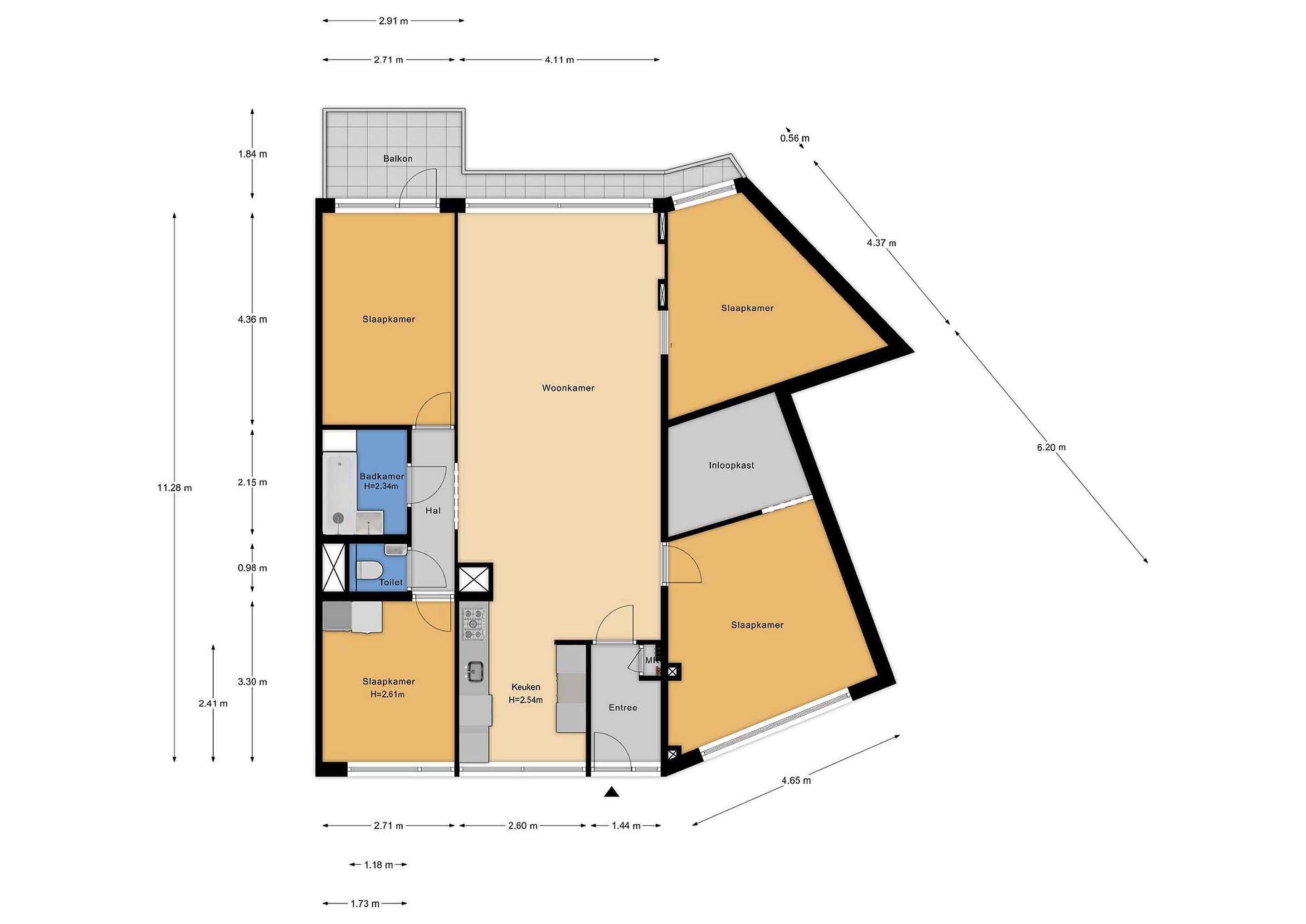 Voor alle woningen geldt dat de in tekst vermelde afmetingen een indicatie zijn en daar kunnen geen rechten aan worden ontleend. De werkelijke oppervlakte kan afwijken van hetgeen in detail op de website is vermeld. De woning is ingemeten volgens de meetinstructie welke verplicht is voor makelaars en taxateurs. Ondanks de zorg die door de makelaar aan de correcte invoer van de gegevens besteed wordt, kan de makelaar niet verantwoordelijk gehouden en/of aansprakelijk gesteld worden voor eventuele fouten, omissies en/of onvolkomenheden in de gegevens.