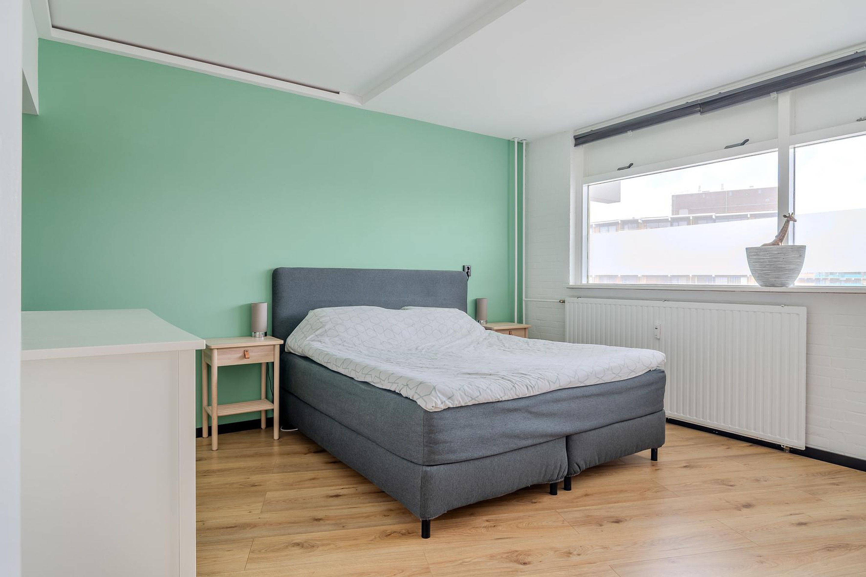 Het complex heeft een afgesloten entree met bellentableau en brievenbussen waarna je toegang krijgt tot de liften en het trappenhuis. Op de zevende verdieping stap je de galerij op naar de entree van dit appartement. Binnenkomst in de hal met meterkast. Vanuit de hal heb je toegang tot de woonkamer. De heerlijke lichte woonkamer (6.75 x 4.11) is aan de achterzijde gelegen. De open keuken (4.40 x 2.60) is voorzien van een stenen werkblad met een luxe uitstraling. Deze is parallel opgesteld en heeft veel kastruimte en diverse inbouwapparatuur zoals gaskookplaat, afzuigkap, combi- oven/magnetron, koelkast, vriezer en vaatwasser. Vanuit de woonkamer heb je aan de rechterzijde toegang tot de grootste slaapkamer (4.65 x 4.56) aan de voorzijde, met een vaste inloopkast (2.36 x 2.25). En aan de rechter achterzijde tot de tweede grote slaapkamer (4.80 x 4.27). Aan de linkerzijde van de woonkamer kom je in de gang welke toegang geeft tot de derde en vierde slaapkamer, badkamer en apart toilet. Ook dit zijn twee ruime slaapkamers (3.30 x 2.71 en 4.36 x 2.71), waarvan de slaapkamer aan de achterzijde toegang geeft tot het balkon. In de slaapkamer aan de voorzijde is de wasmachine en droger gesitueerd. De badkamer (2.15 x 1.73) is volledig betegeld en heeft een ligbad en een wastafelmeubel. Uiteraard is het mogelijk om hier de wasmachine-aansluiting te maken. Het toilet is volledig betegeld en voorzien van een wandcloset en wastafel. Het balkon is op het zuiden gelegen en op dit moment voorzien van gaaspanelen. Deze worden verwijderd bij de verkoop. Op de begane grond van het complex is de afgesloten eigen berging/box (2.71 x 2.89).