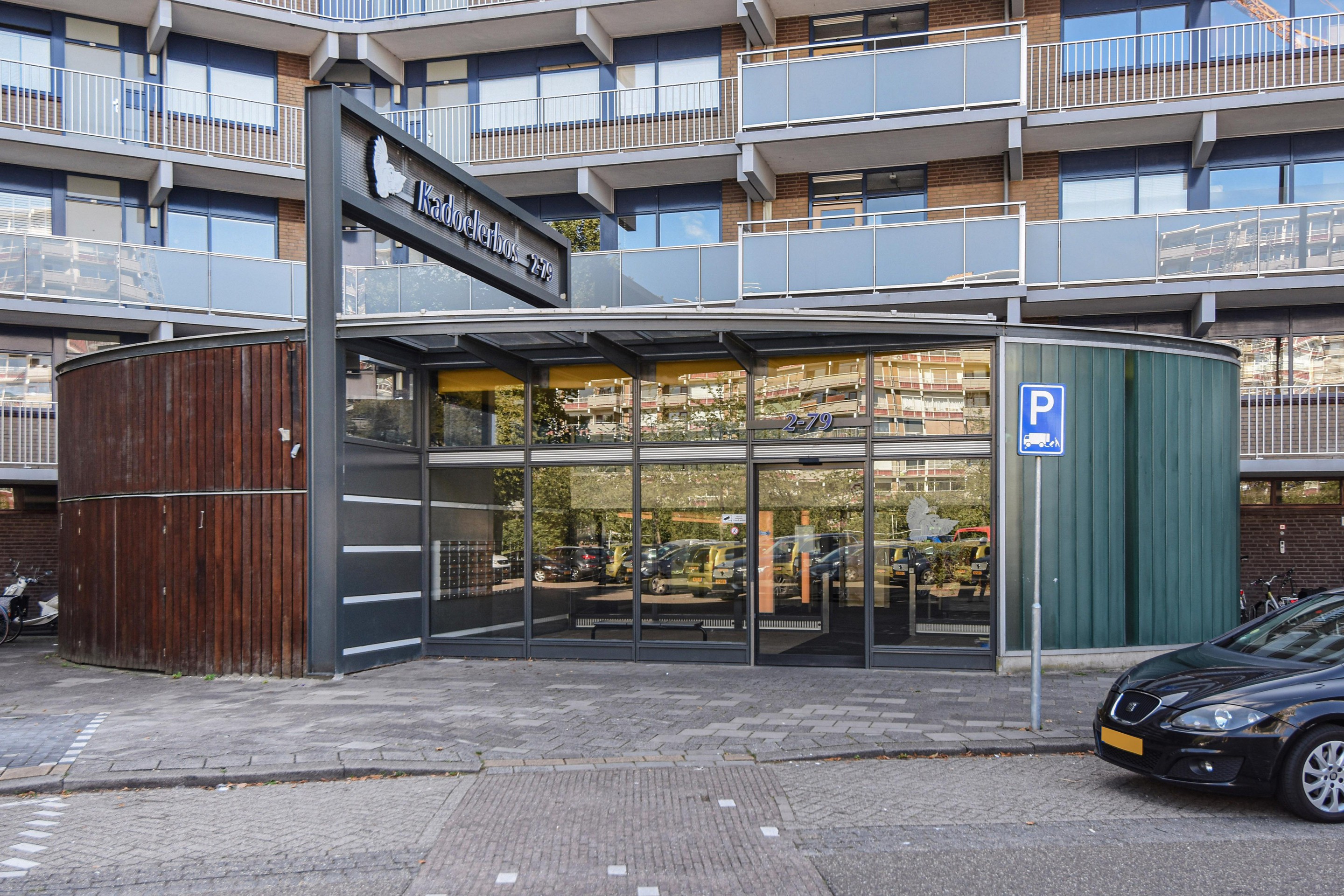 Begane grond: moderne centrale entree met intercom, brievenbussen, liften, trappenhuis en toegang tot de individuele bergingen.