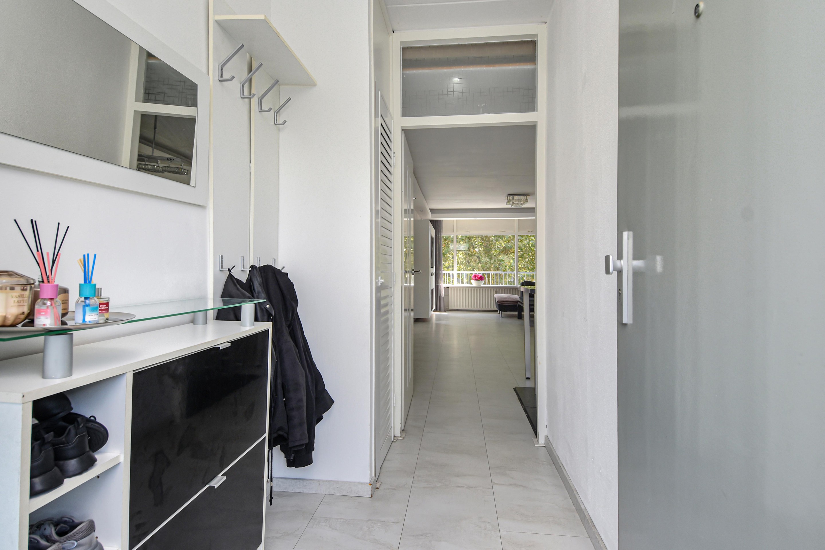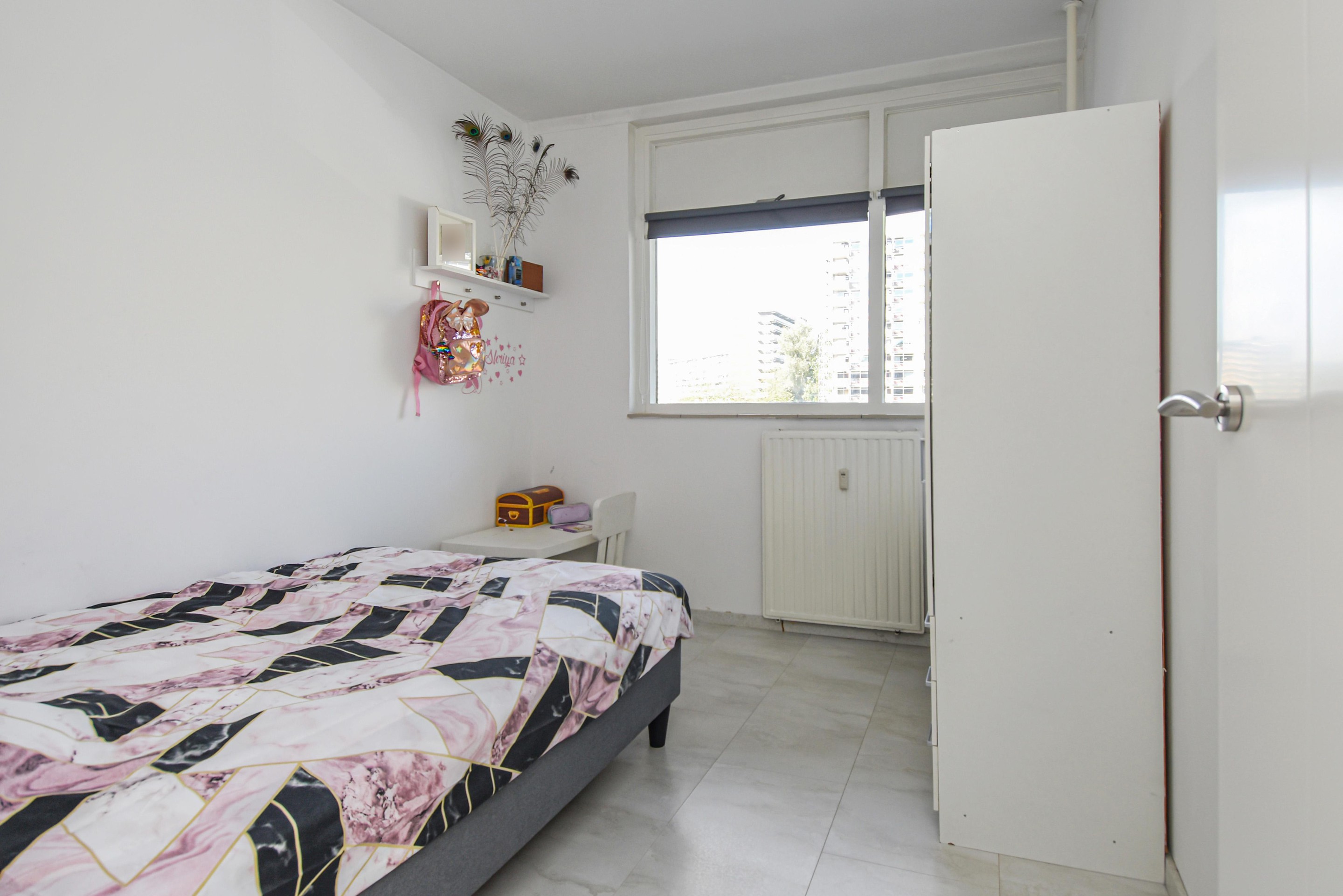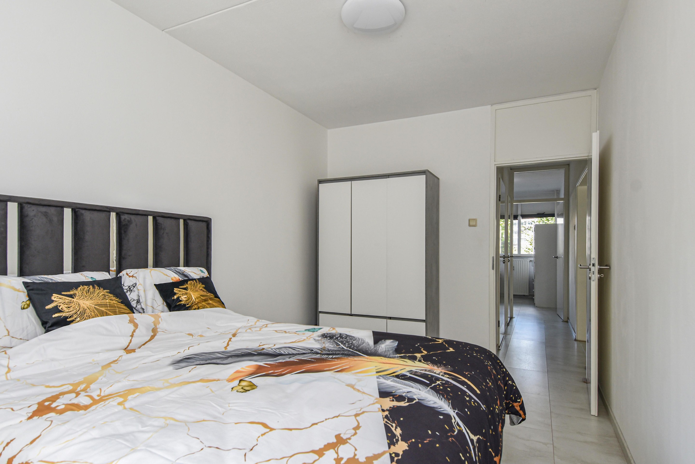 Via de tussenhal zijn de overige slaapkamers bereikbaar: een tweede slaapkamer met toegang tot het balkon en een derde slaapkamer aan de galerijzijde. De luxe, geheel betegelde badkamer (2016) beschikt over een douche, design wastafelmeubel met dubbele kommen en wasmachineaansluiting. Daarnaast is er een separate toiletruimte met zwevend toilet en fontein.