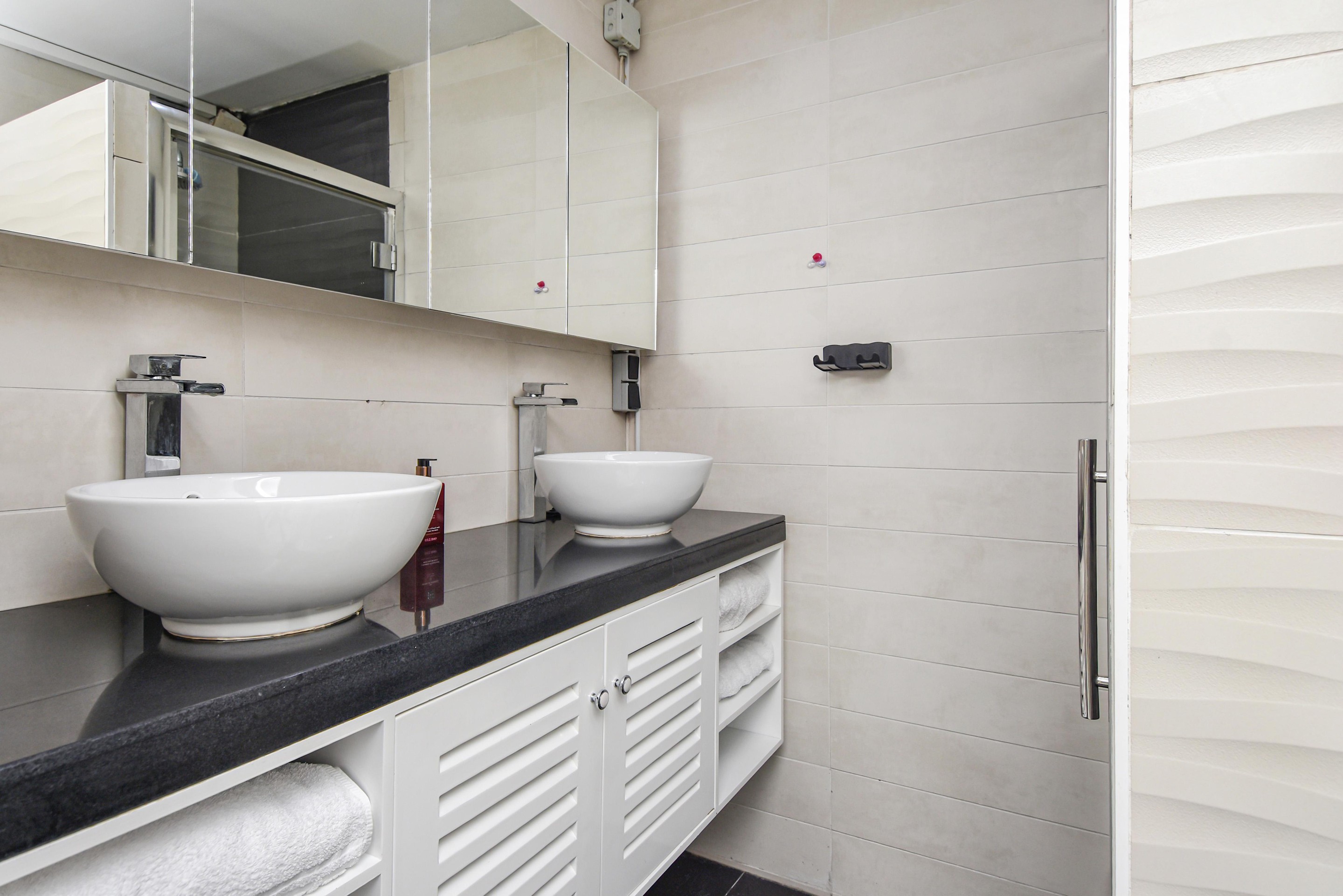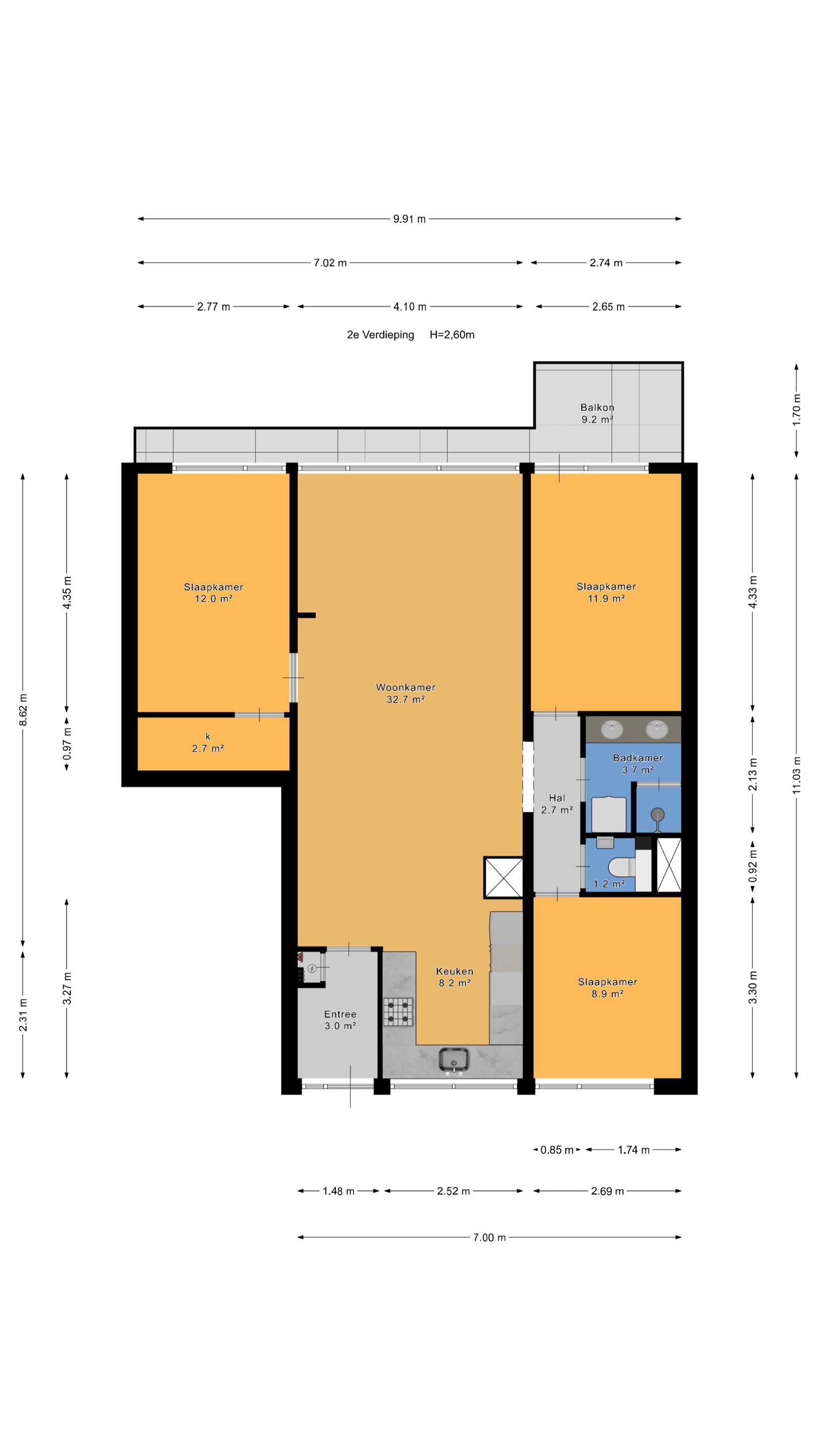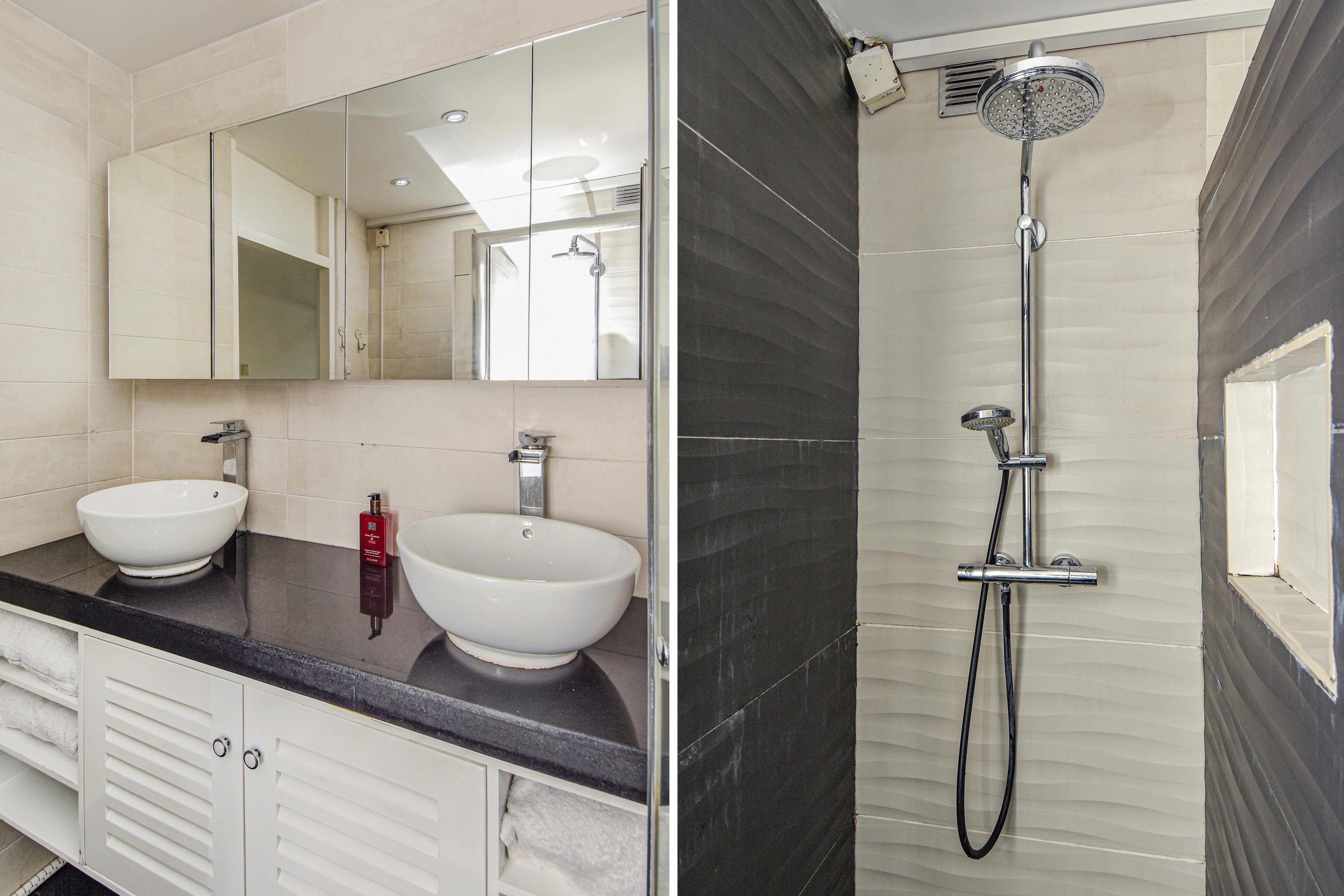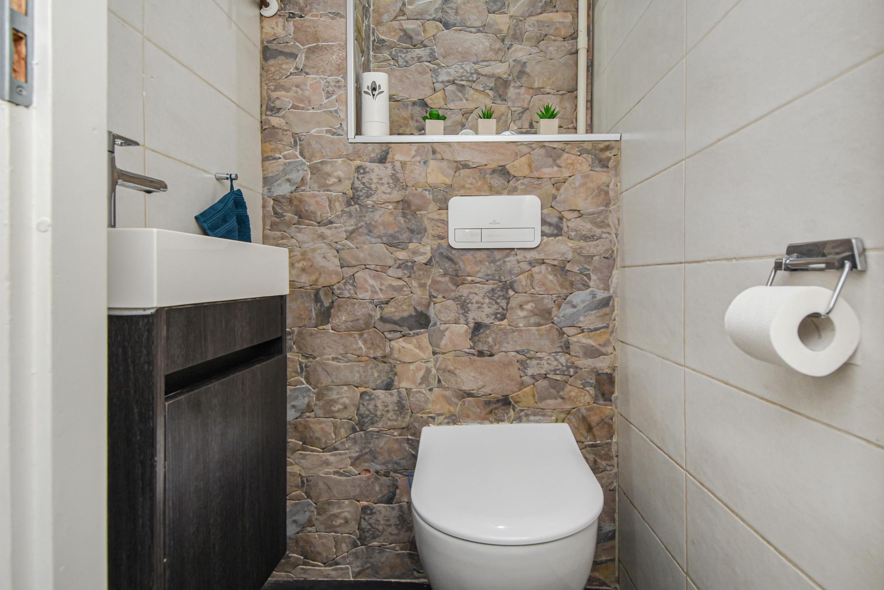 Via de tussenhal zijn de overige slaapkamers bereikbaar: een tweede slaapkamer met toegang tot het balkon en een derde slaapkamer aan de galerijzijde. De luxe, geheel betegelde badkamer (2016) beschikt over een douche, design wastafelmeubel met dubbele kommen en wasmachineaansluiting. Daarnaast is er een separate toiletruimte met zwevend toilet en fontein.