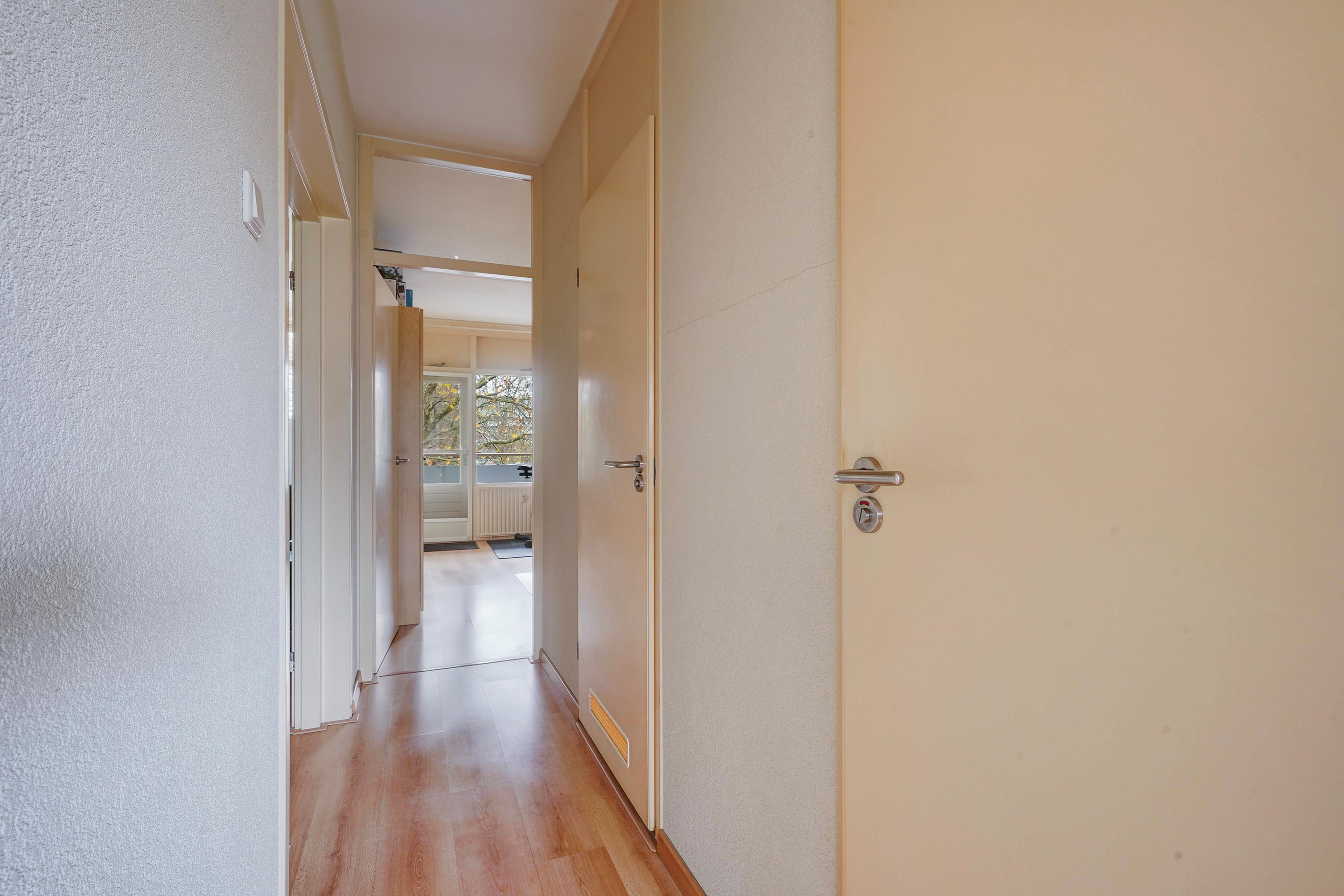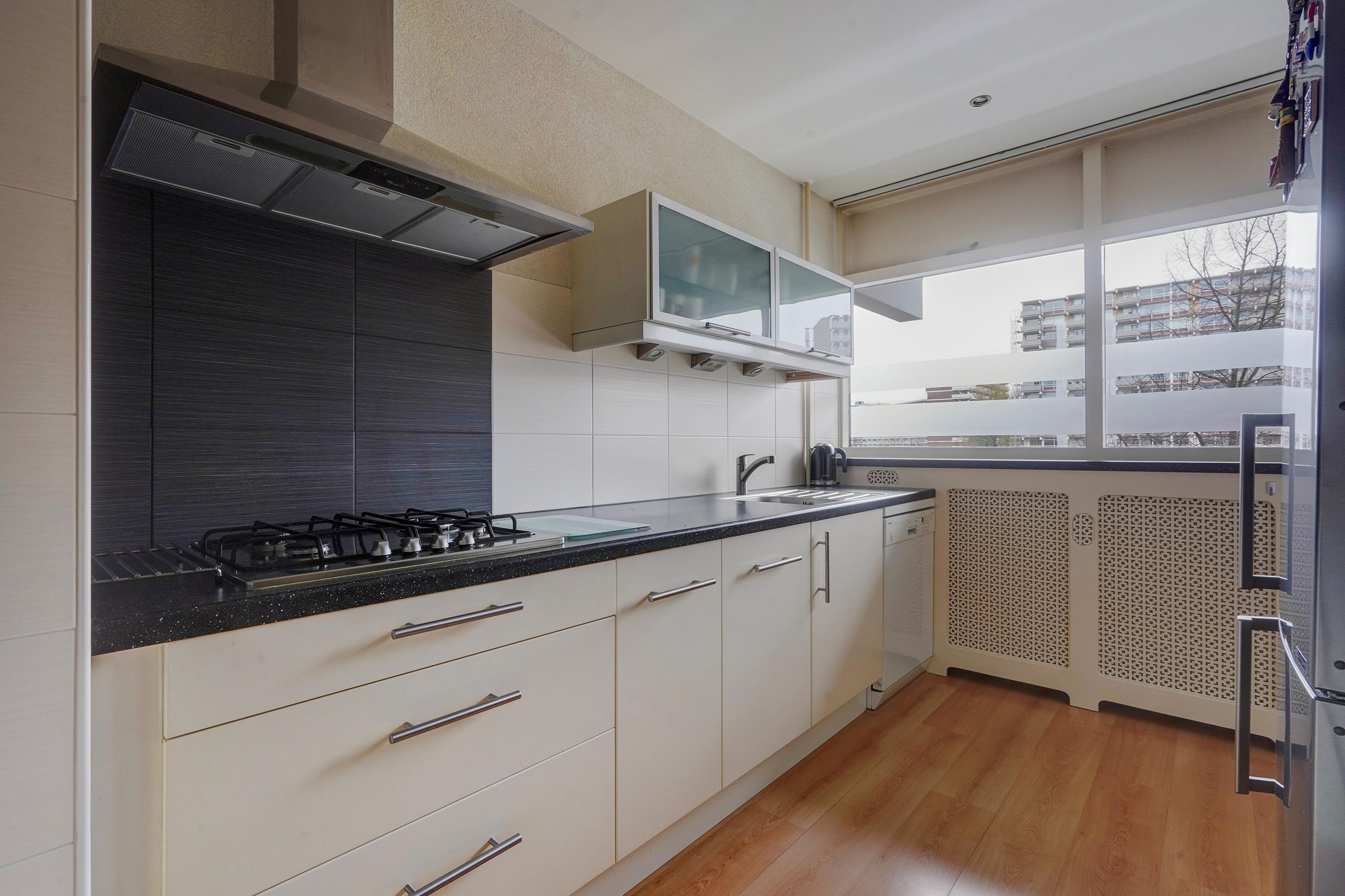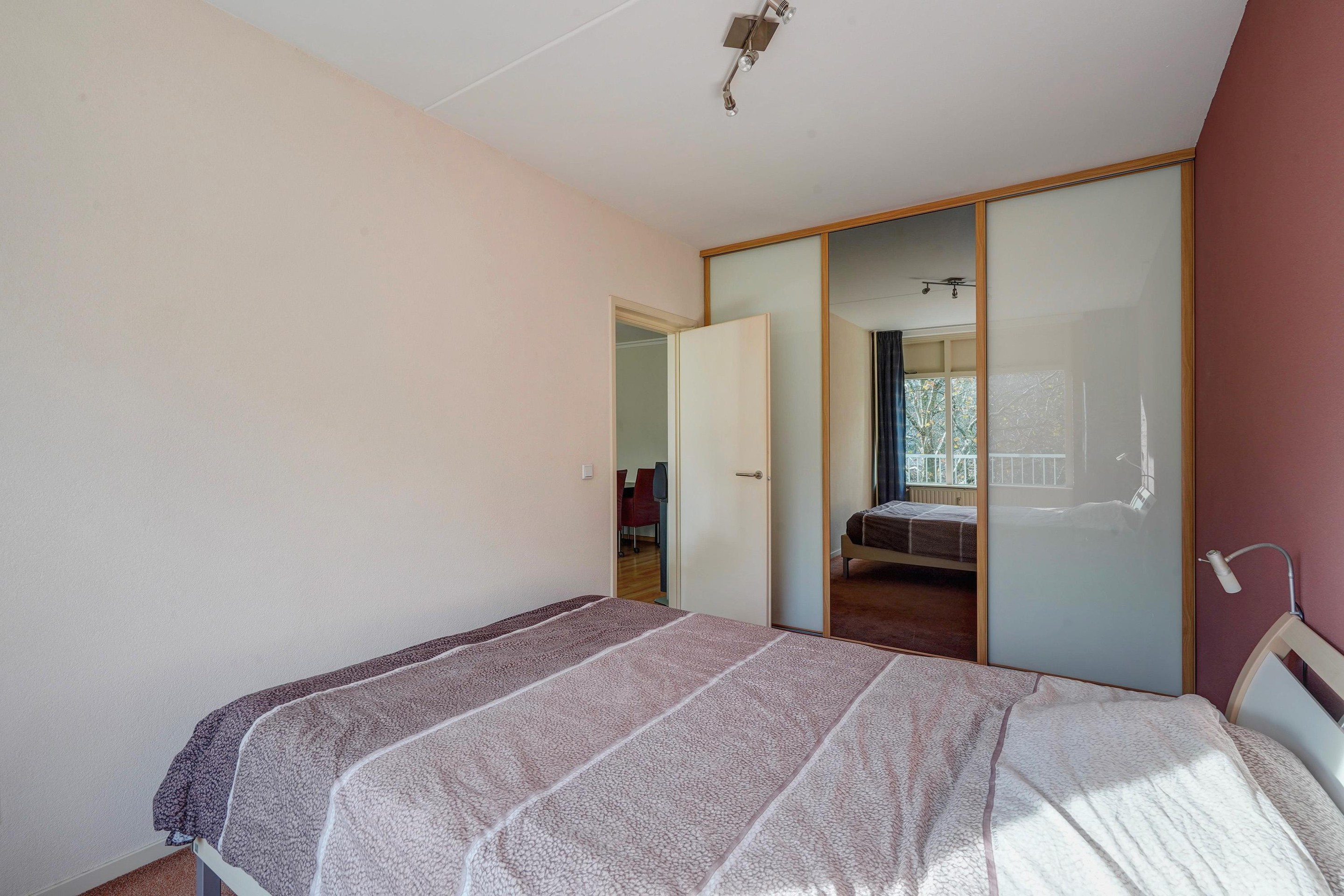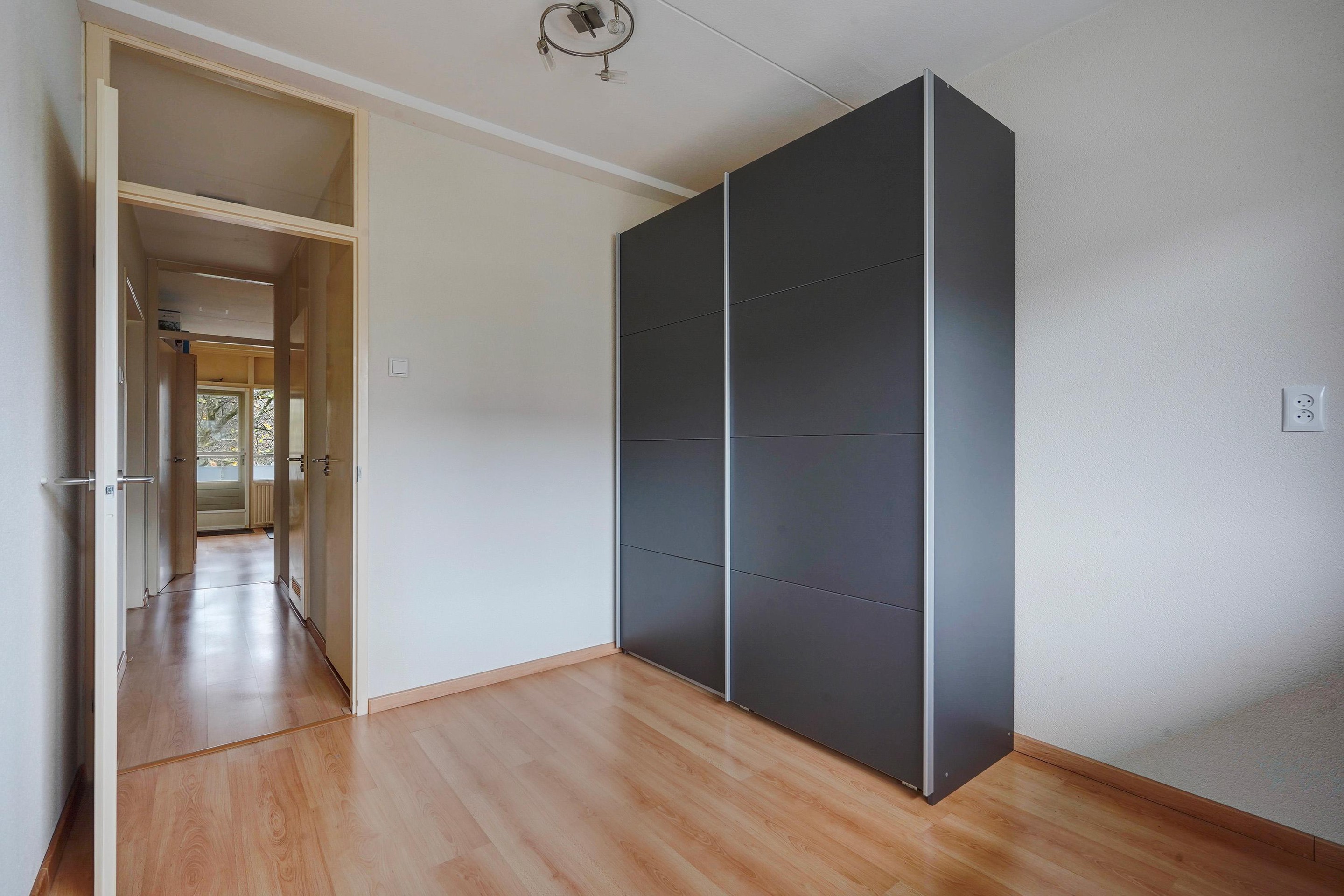 Begane grond Entree woning, hal met meterkast welke toegang geeft tot de woonkamer. De woonkamer is ruim opgezet en geeft heerlijk groen uitzicht over het park. De keuken is netjes en v.v. 4 pits gas kookplaat, afzuigkap, vaatwasser, apothekerskast en lossen koel-/vriescombinatie. Ruime slaapkamer aan de achterzijde met over de gehele breedte een schuifkast. De tweede slaapkamer aan de achterzijde geeft toegang tot het balkon (zon tot ongeveer 13.00 uur). De badkamer is v.v. douche, wastafelmeubel, wasmachine-/droger aansluiting. De naastgelegen toilet is v.v. fontein en is keurig netjes. De derde slaapkamer is aan de voorzijde gelegen en is thans in gebruik als waskamer.