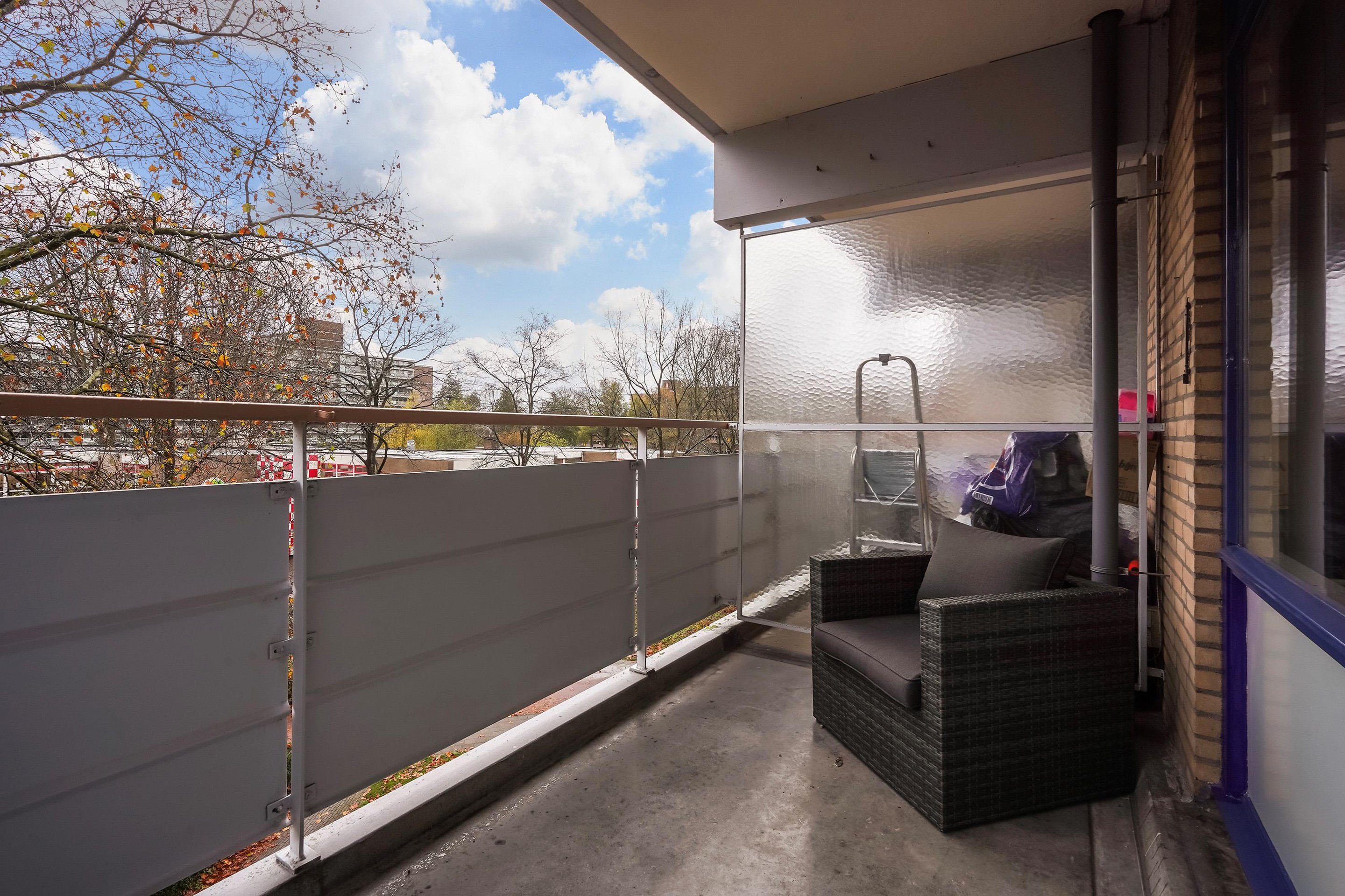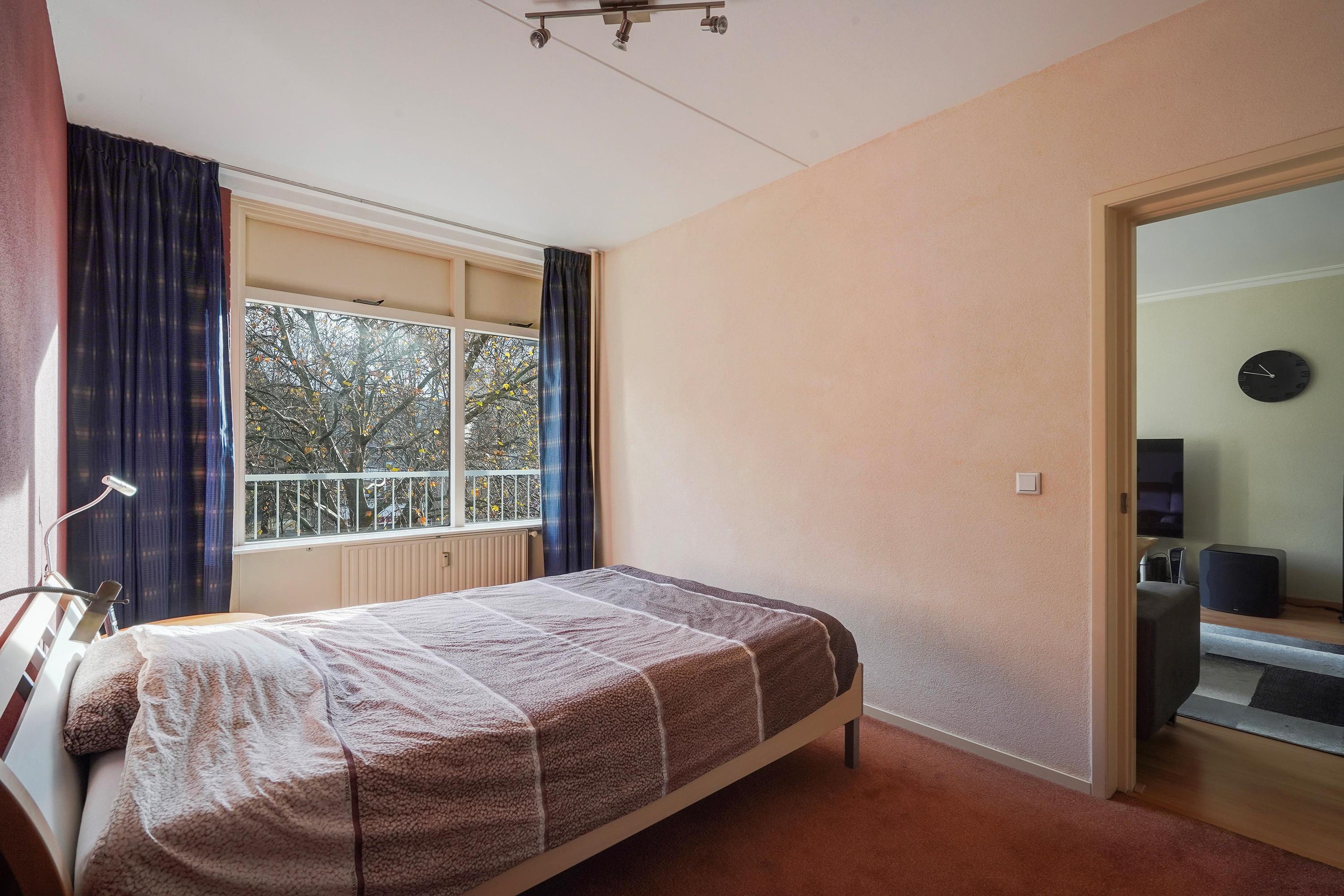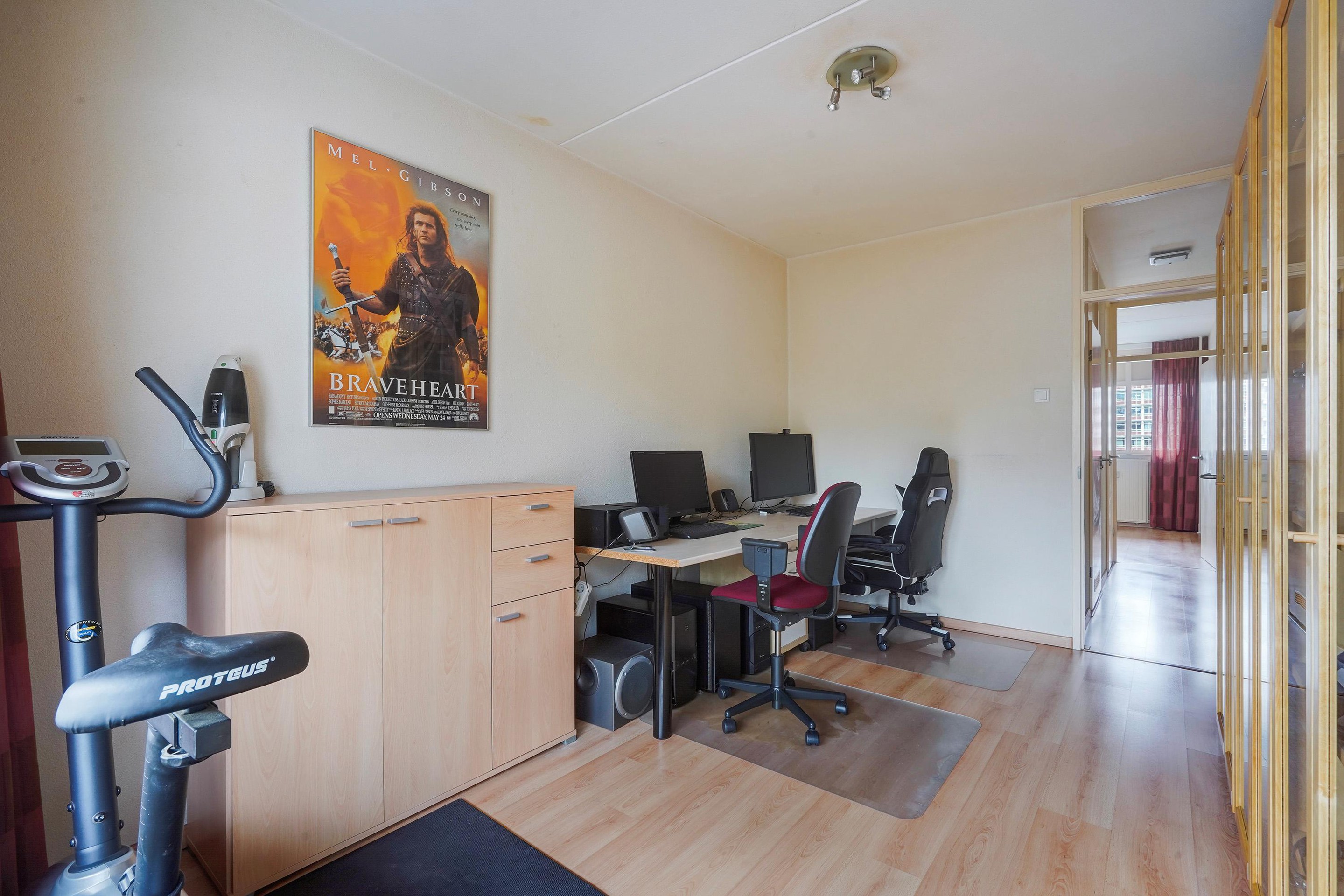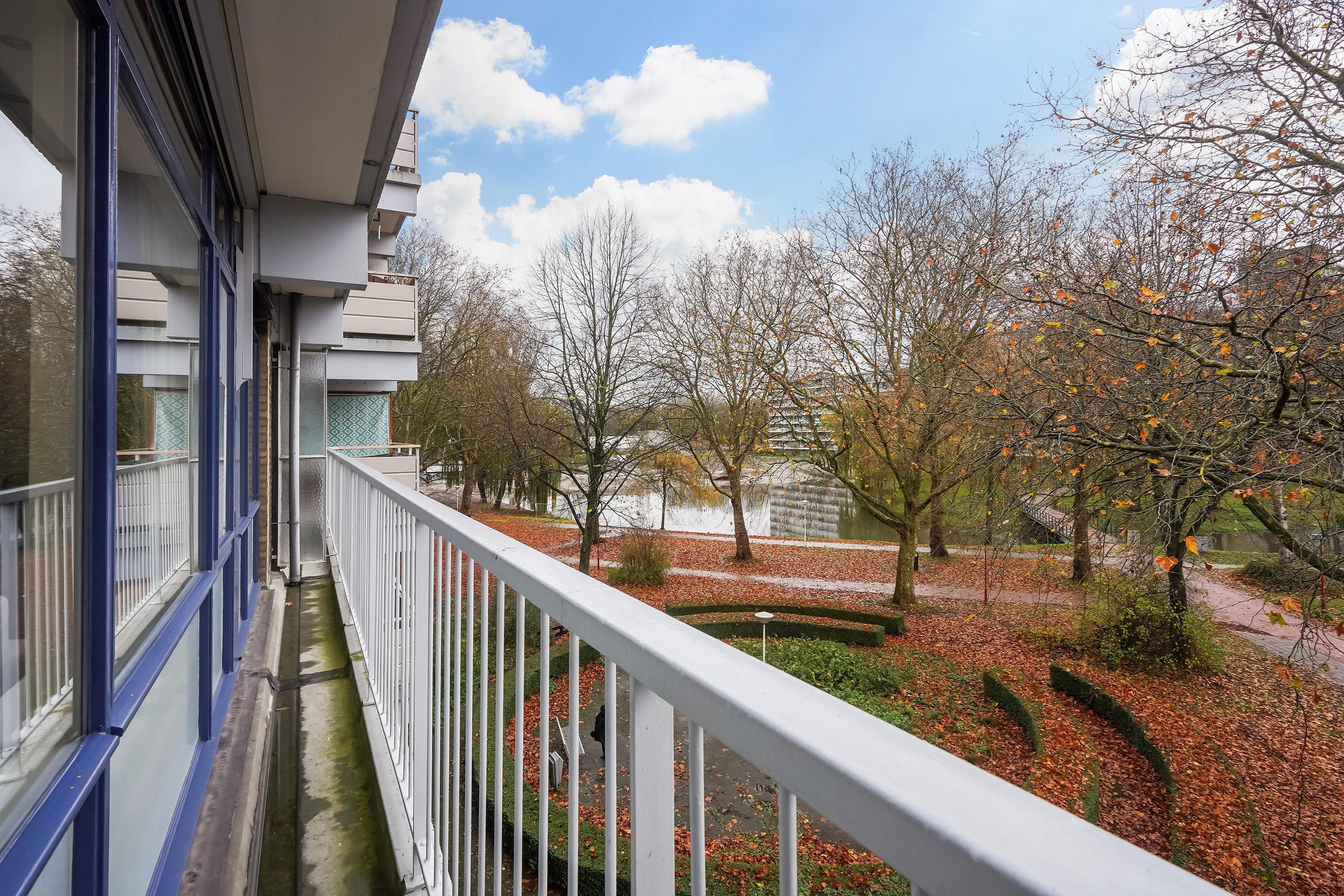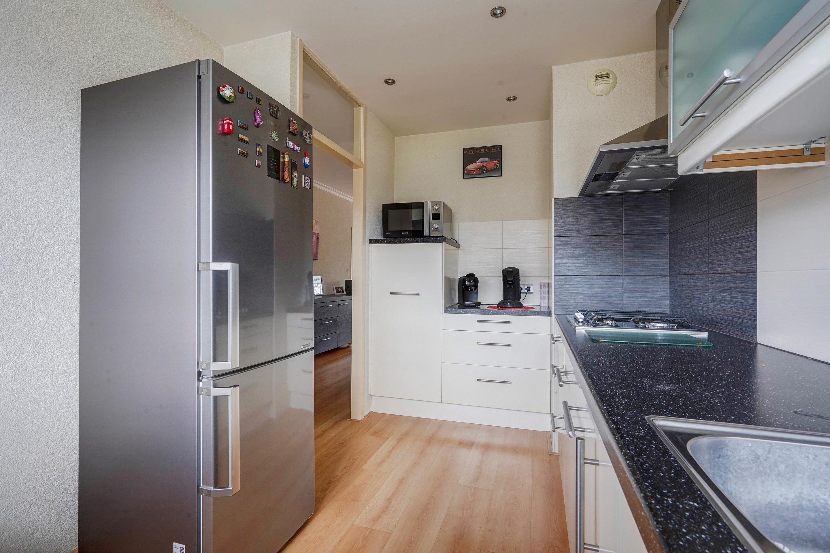 Begane grond Entree woning, hal met meterkast welke toegang geeft tot de woonkamer. De woonkamer is ruim opgezet en geeft heerlijk groen uitzicht over het park. De keuken is netjes en v.v. 4 pits gas kookplaat, afzuigkap, vaatwasser, apothekerskast en lossen koel-/vriescombinatie. Ruime slaapkamer aan de achterzijde met over de gehele breedte een schuifkast. De tweede slaapkamer aan de achterzijde geeft toegang tot het balkon (zon tot ongeveer 13.00 uur). De badkamer is v.v. douche, wastafelmeubel, wasmachine-/droger aansluiting. De naastgelegen toilet is v.v. fontein en is keurig netjes. De derde slaapkamer is aan de voorzijde gelegen en is thans in gebruik als waskamer.