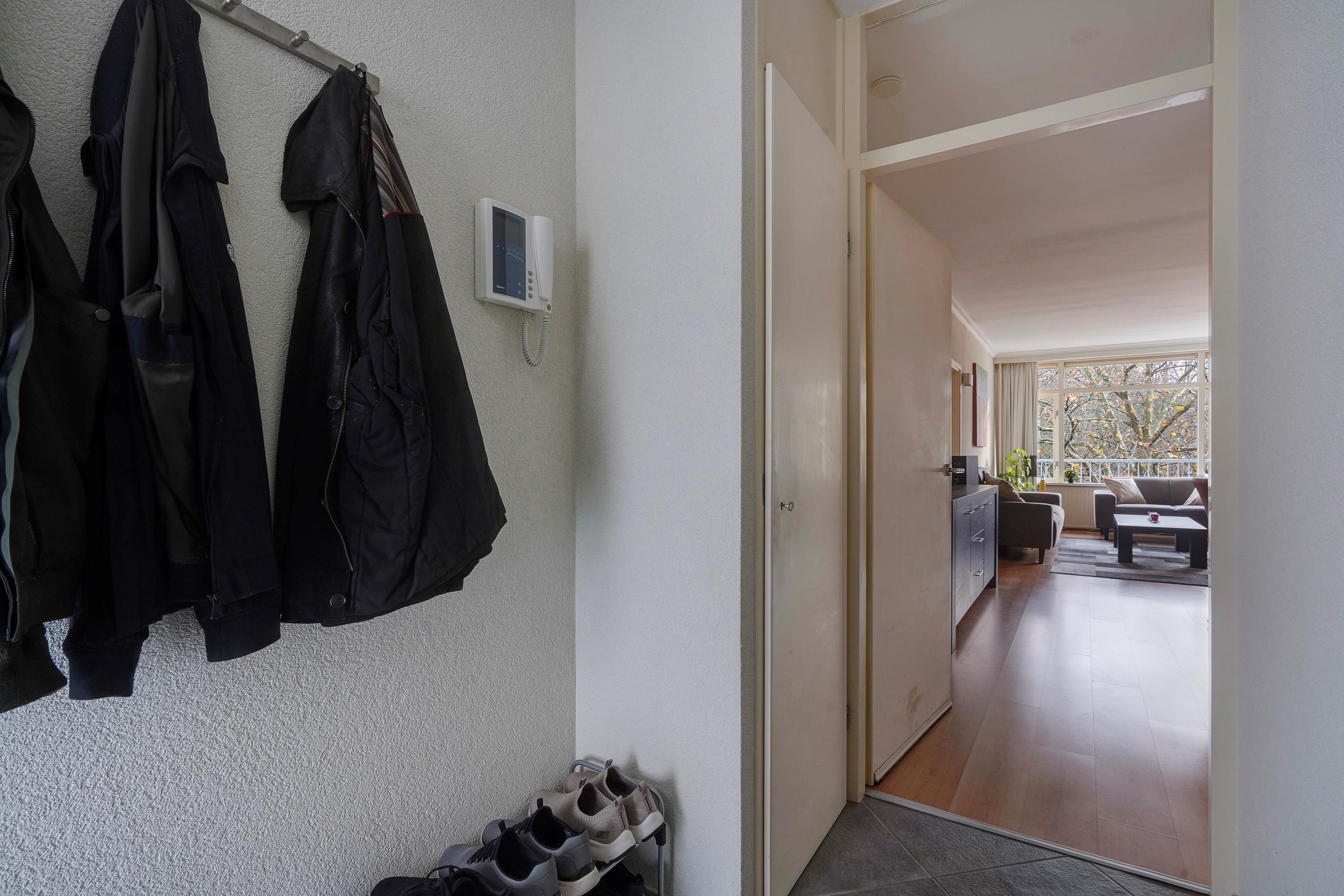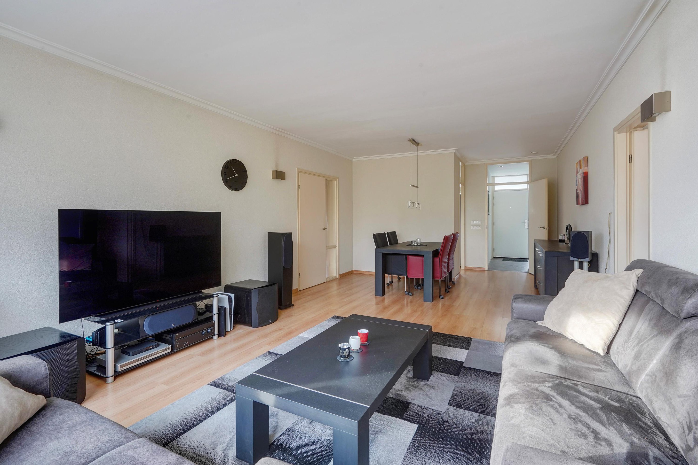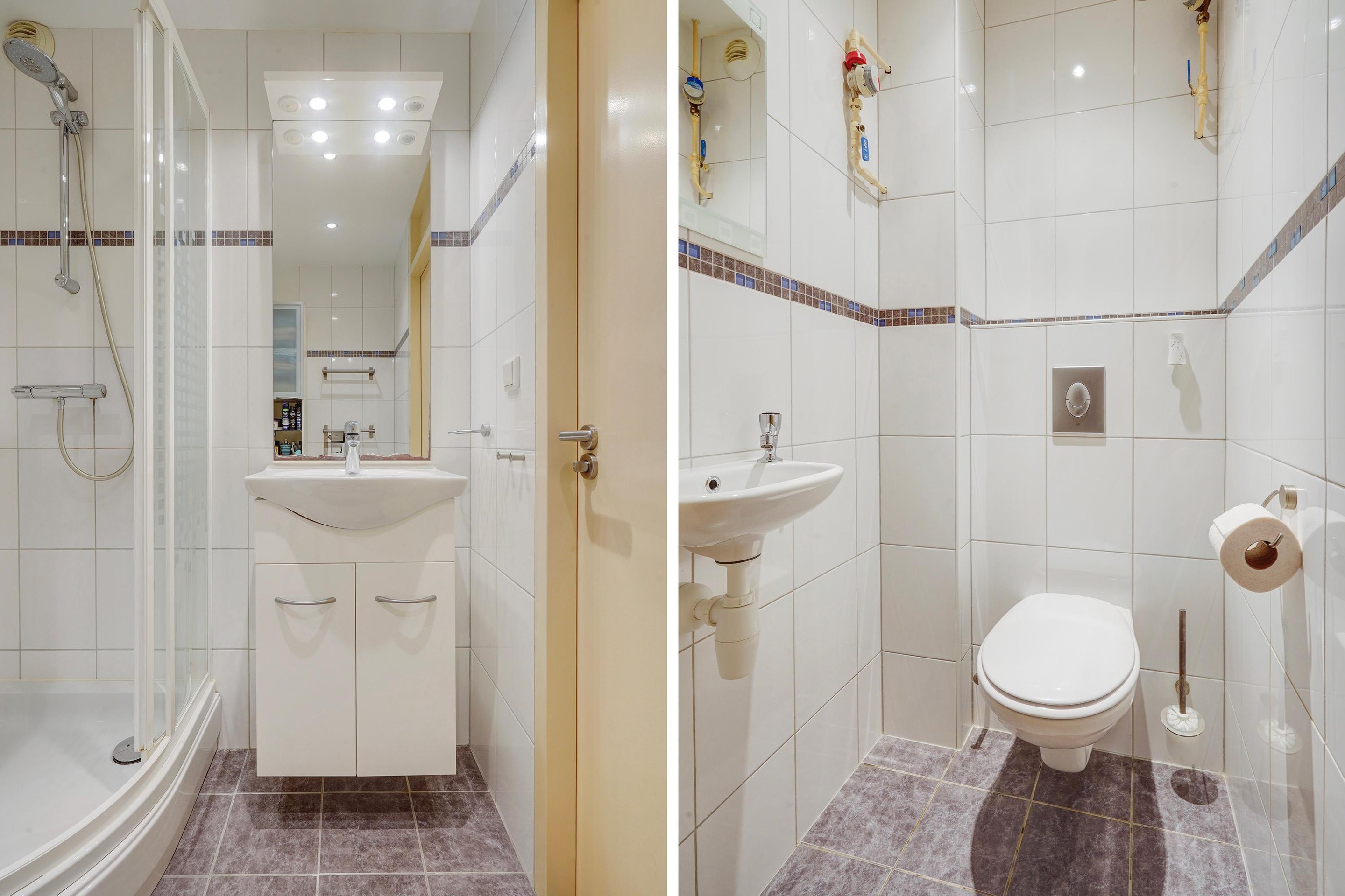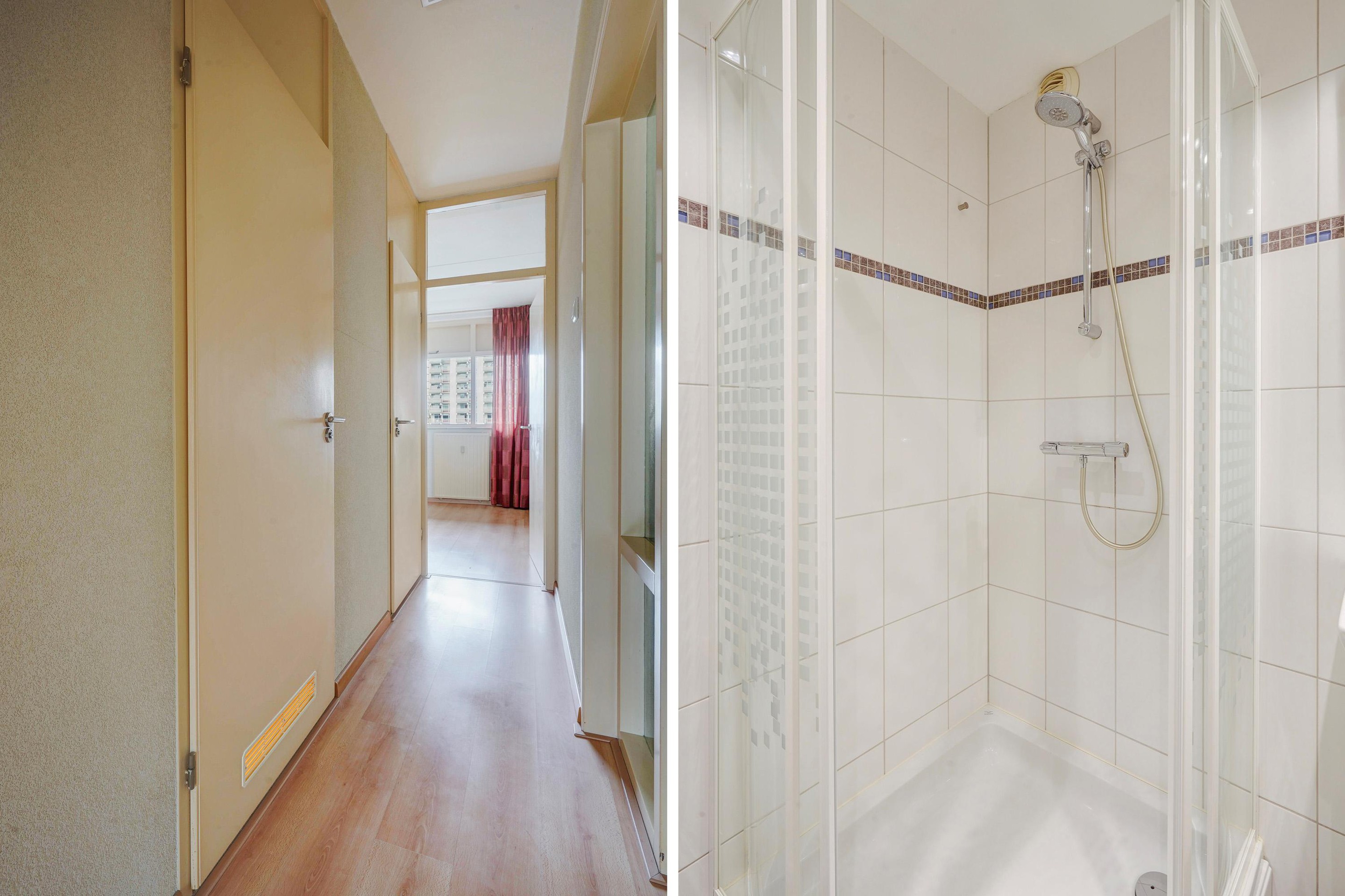 Begane grond Entree woning, hal met meterkast welke toegang geeft tot de woonkamer. De woonkamer is ruim opgezet en geeft heerlijk groen uitzicht over het park. De keuken is netjes en v.v. 4 pits gas kookplaat, afzuigkap, vaatwasser, apothekerskast en lossen koel-/vriescombinatie. Ruime slaapkamer aan de achterzijde met over de gehele breedte een schuifkast. De tweede slaapkamer aan de achterzijde geeft toegang tot het balkon (zon tot ongeveer 13.00 uur). De badkamer is v.v. douche, wastafelmeubel, wasmachine-/droger aansluiting. De naastgelegen toilet is v.v. fontein en is keurig netjes. De derde slaapkamer is aan de voorzijde gelegen en is thans in gebruik als waskamer.