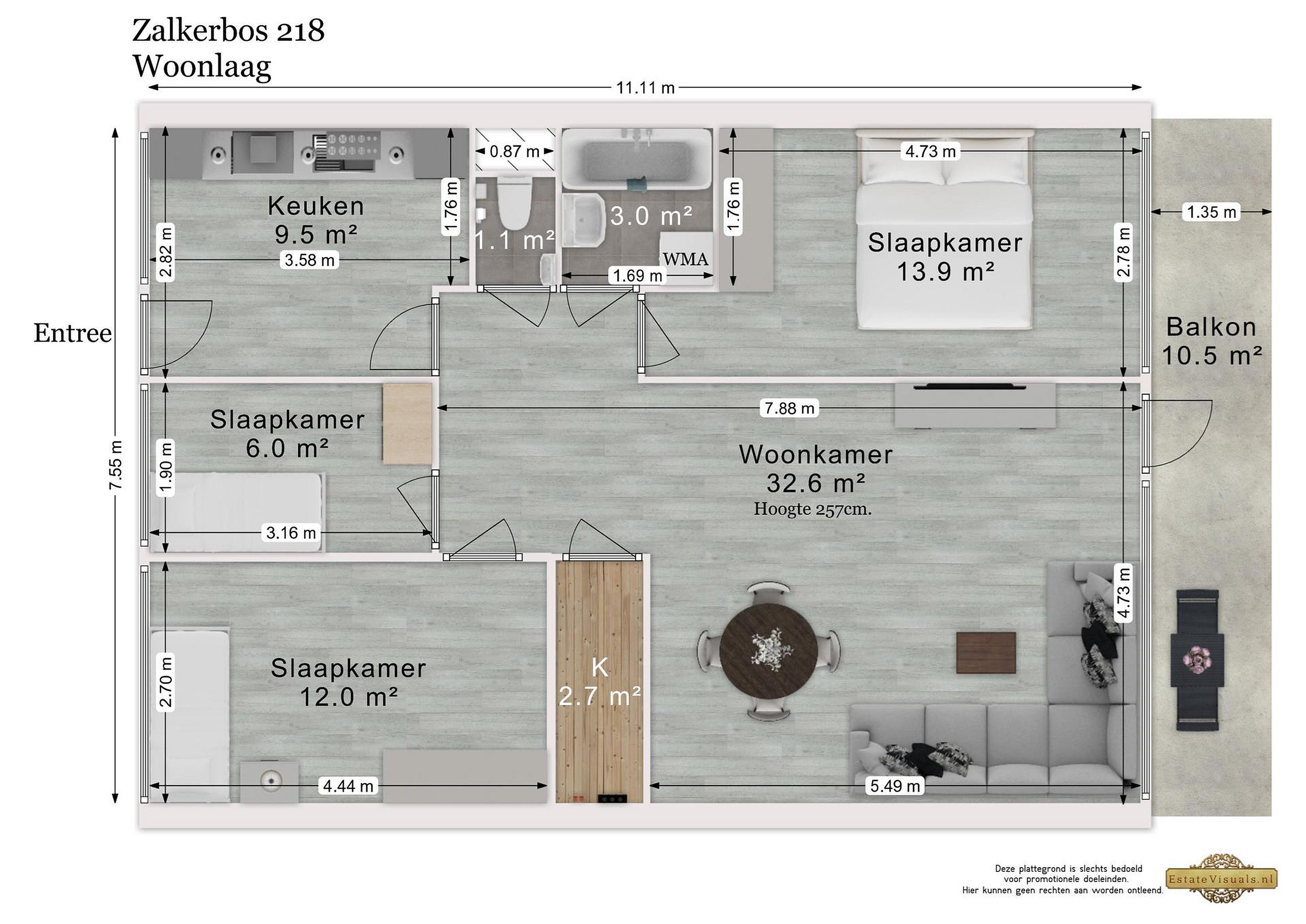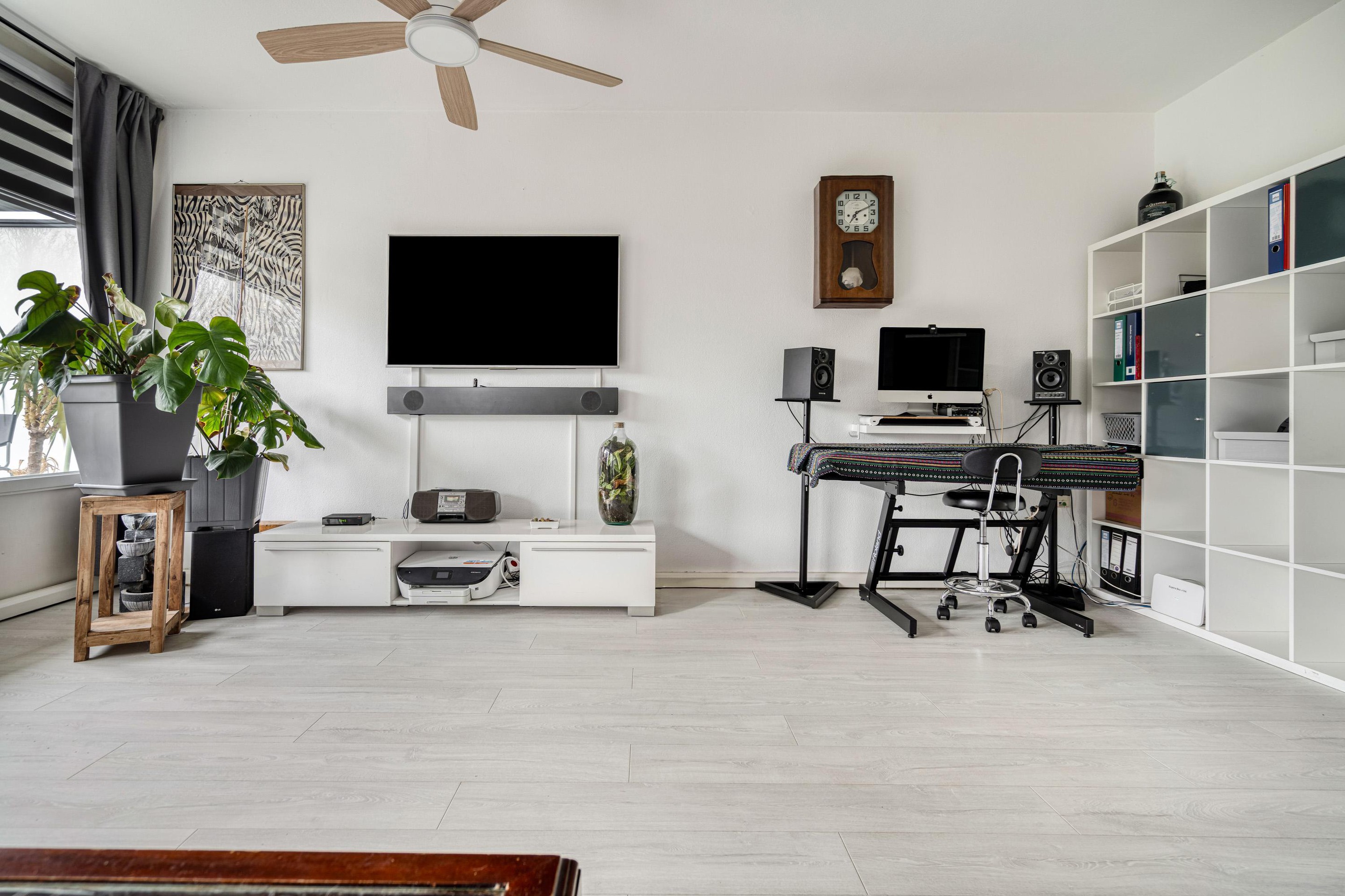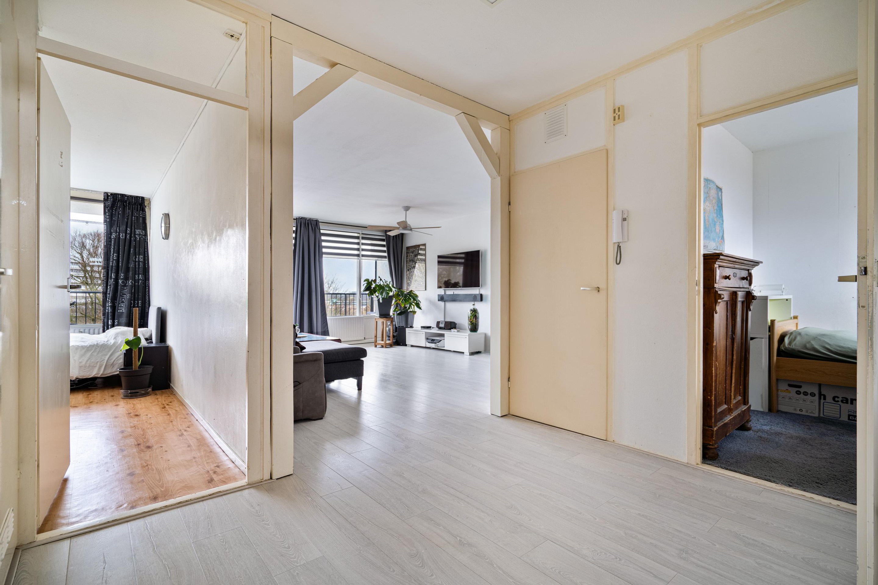 De lichte woonkamer biedt toegang tot het zonnig gelegen balkon op het zuiden (ca. 11 m2). Dankzij de slimme indeling en grote raampartijen geniet je hier van veel natuurlijke lichtinval. De woning beschikt over drie slaapkamers, twee aan de voorzijde en één aan de achterzijde.