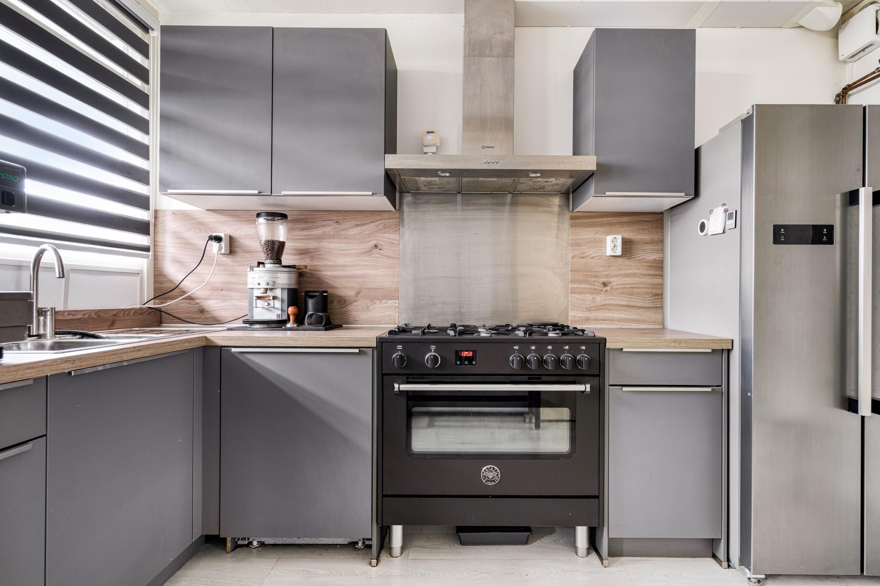 Het appartement heeft een prettige, open indeling waardoor de leefruimte een moderne loft-uitstraling krijgt. De keuken is voorzien van een net keukenblok met diverse apparatuur, waaronder een inbouwvaatwasser, 5-pits fornuis met oven, afzuigkap en een Amerikaanse koelkast.