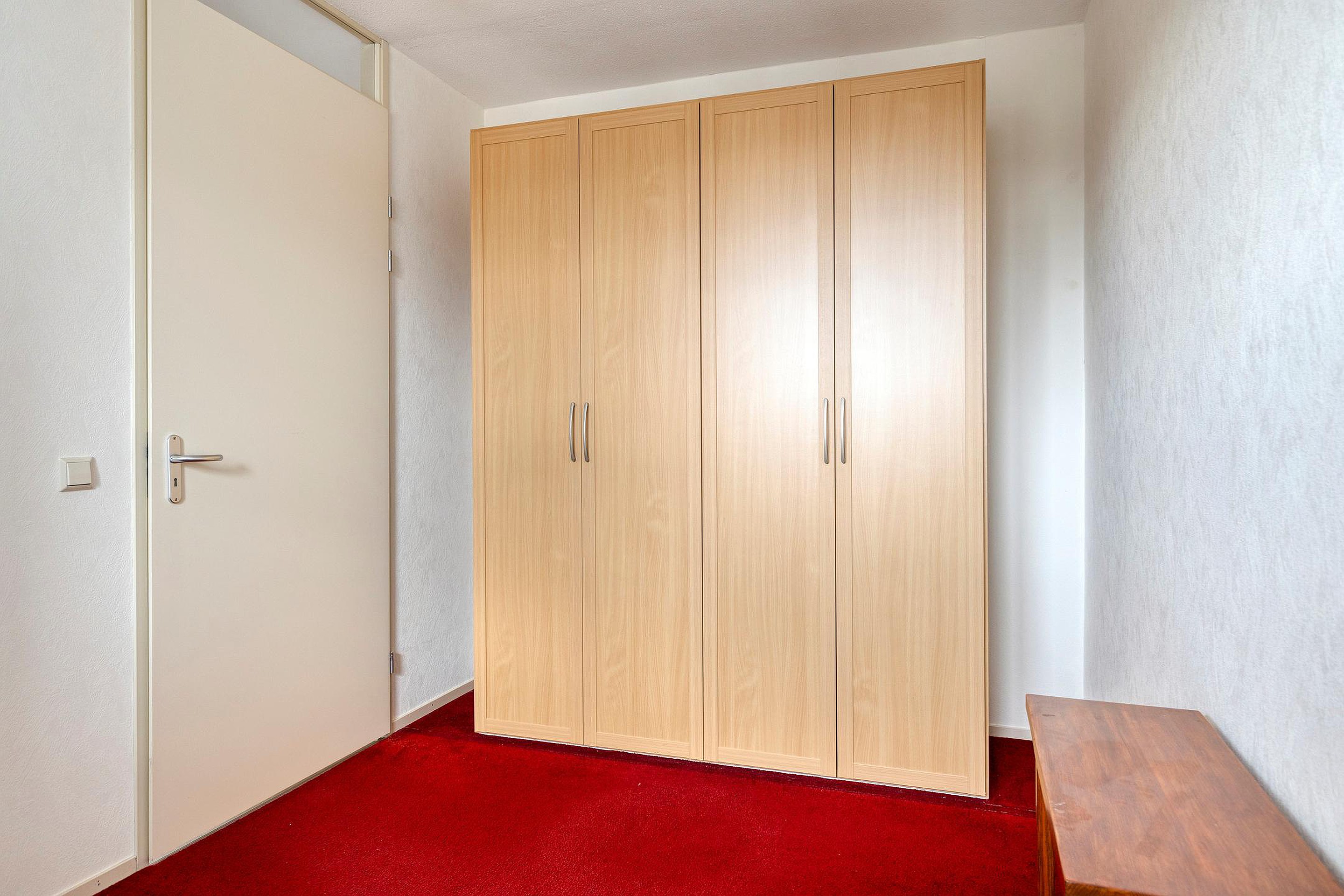 Het appartement beschikt over twee slaapkamers, waarvan de grootste prima ruimte biedt aan een tweepersoonsbed en een royale kast. De tweede kamer is ideaal als logeer- of werkkamer. De badkamer is verzorgd en praktisch ingedeeld.