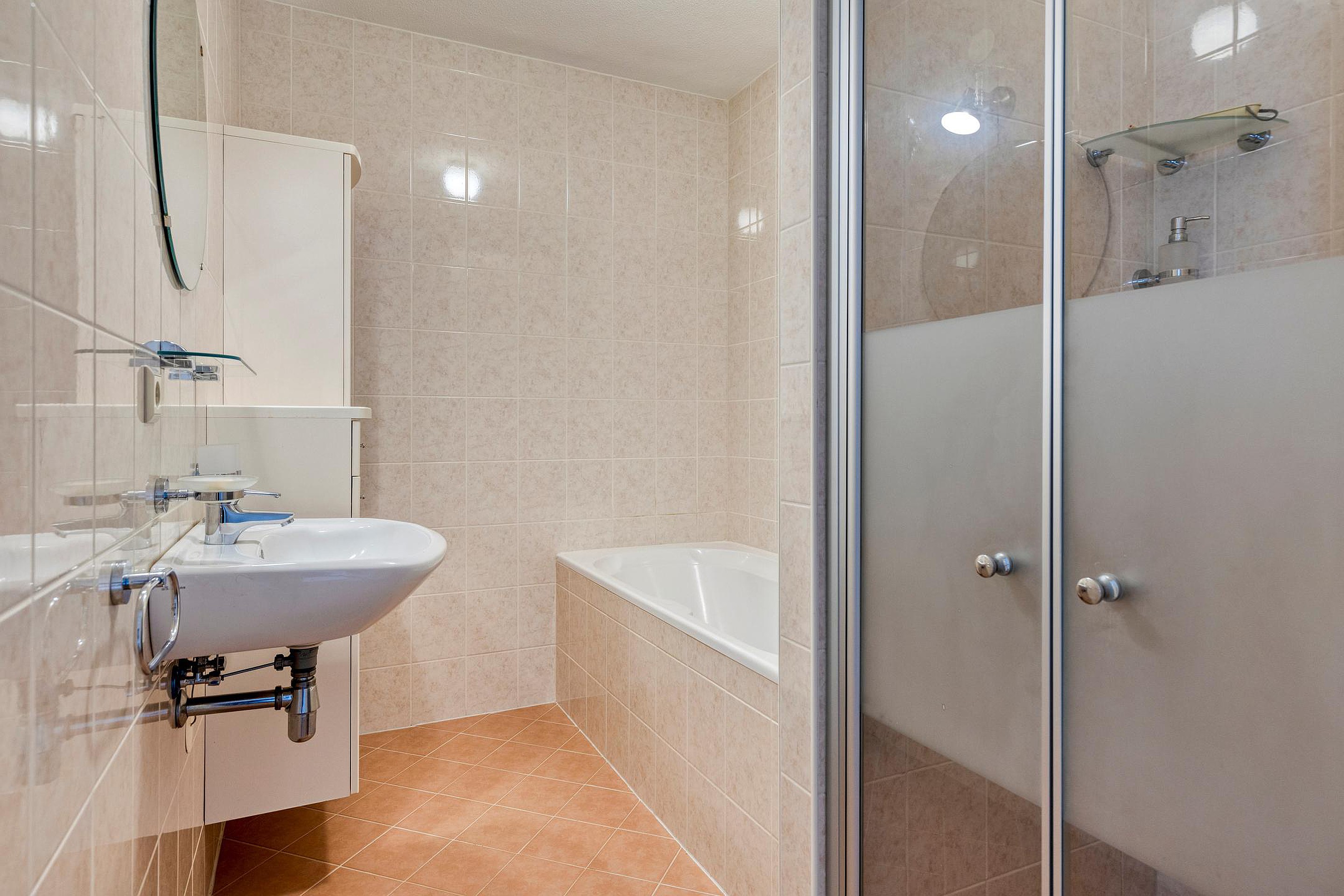 Ruime badkamer met ligbad, wastafel, badmeubel en douchecabine