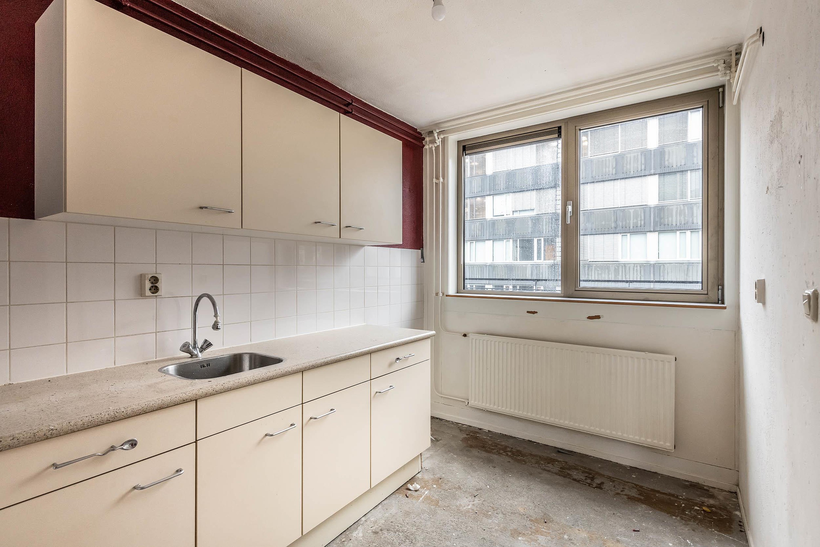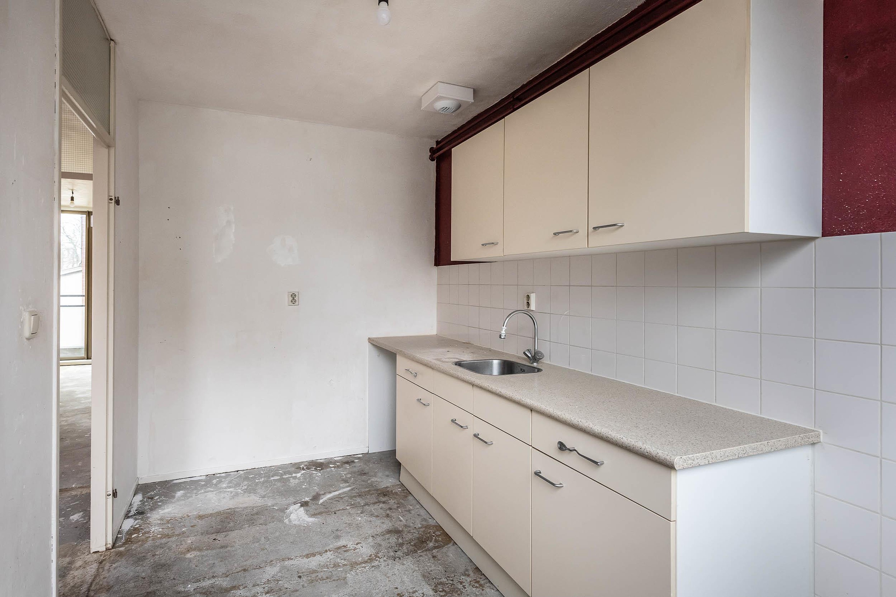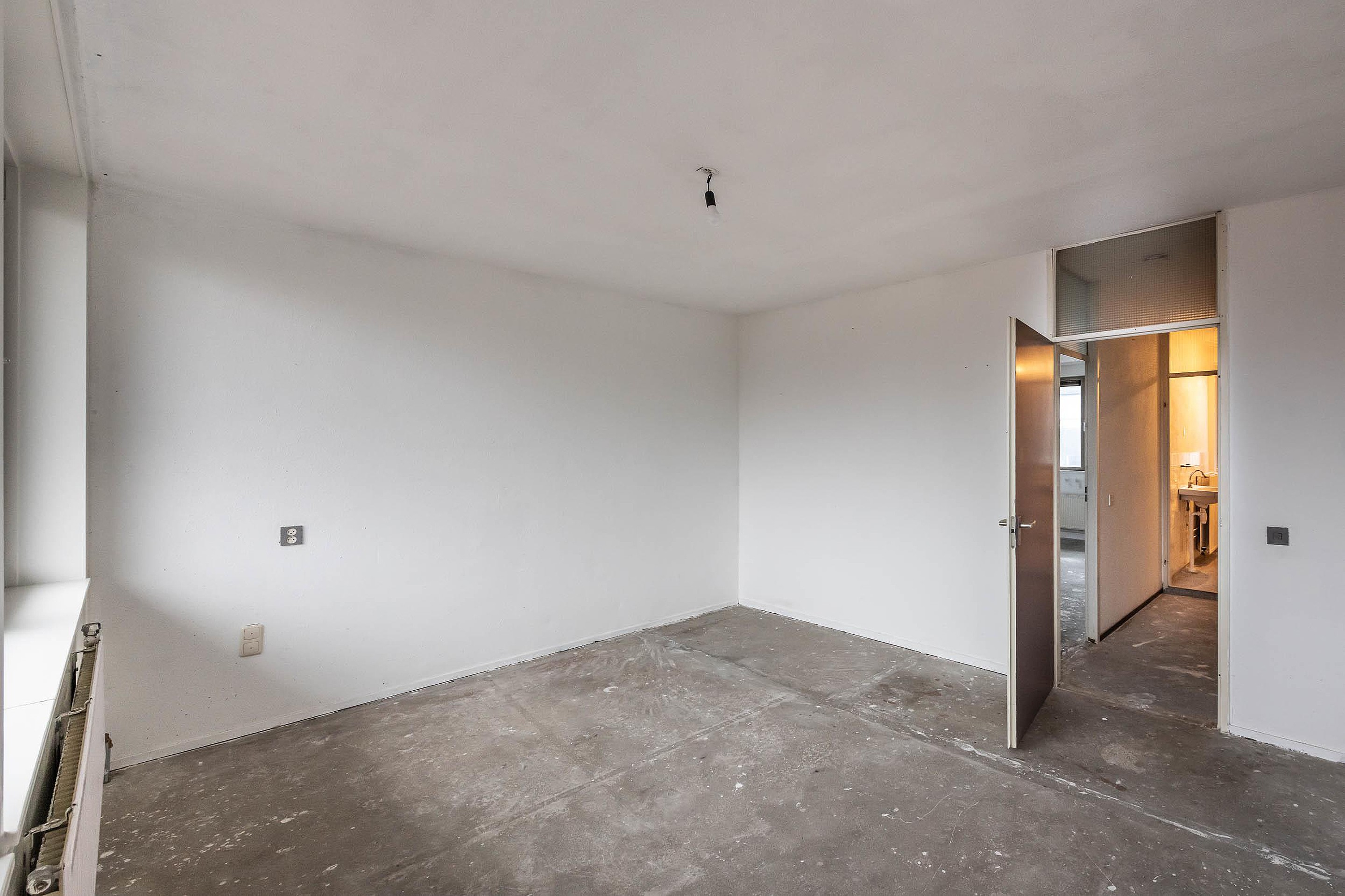 Het appartement is verdeeld over twee verdiepingen en bereikbaar via het trappenhuis of de lift. De indeling is praktisch en prettig, met een duidelijke scheiding tussen wonen en slapen en volop mogelijkheden om de woning naar eigen smaak te moderniseren.