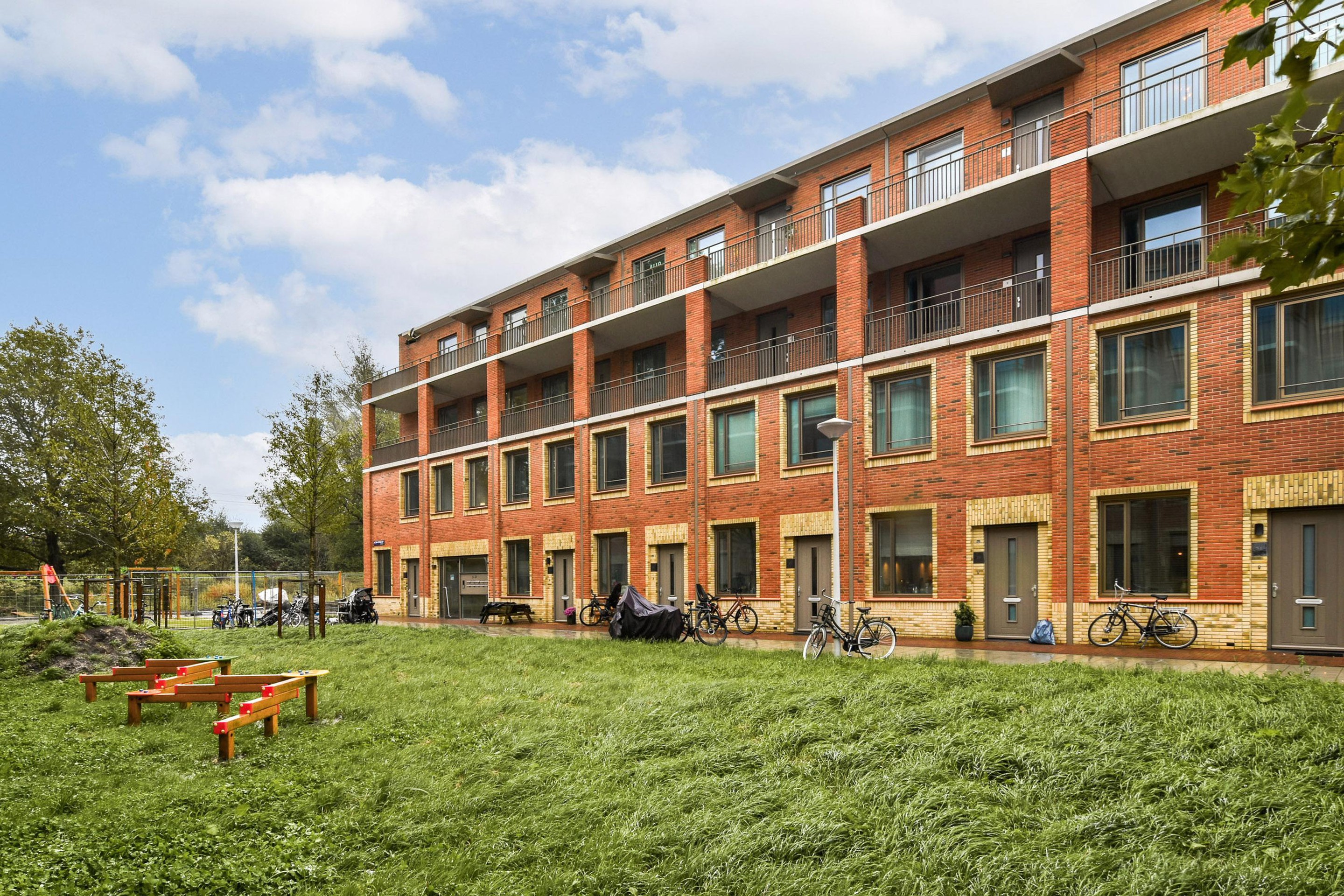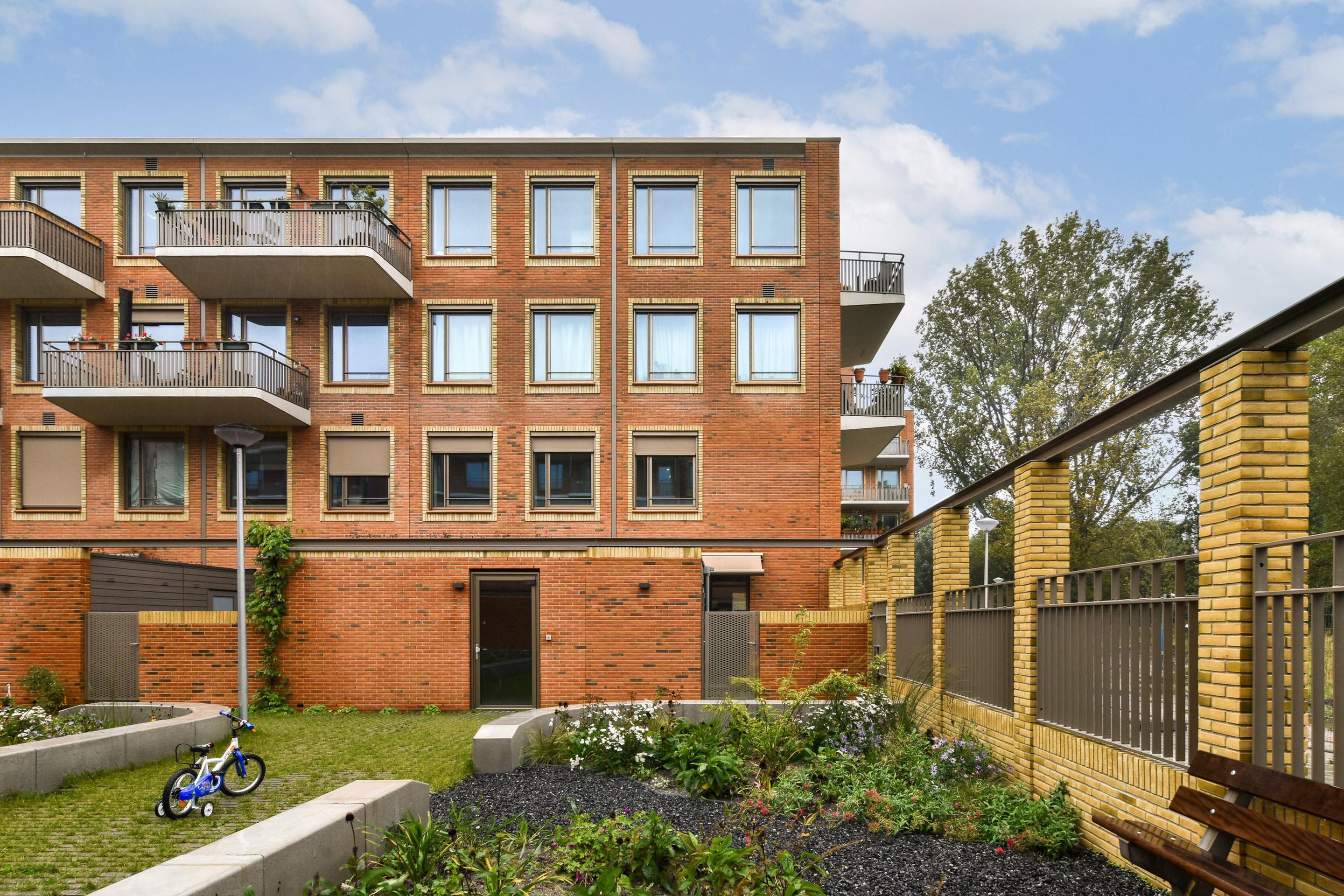 Op de begane grond vind je tevens een modern, volledig betegeld toilet. Vanuit de woonkamer loop je direct de zonnige achtertuin op het zuiden in, compleet met berging, waterpunt en zonwering. De tuin grenst direct aan de afgesloten gemeenschappelijke binnentuin, een veilige en groene plek waar kinderen vrij kunnen spelen en bewoners heerlijk kunnen ontspannen.