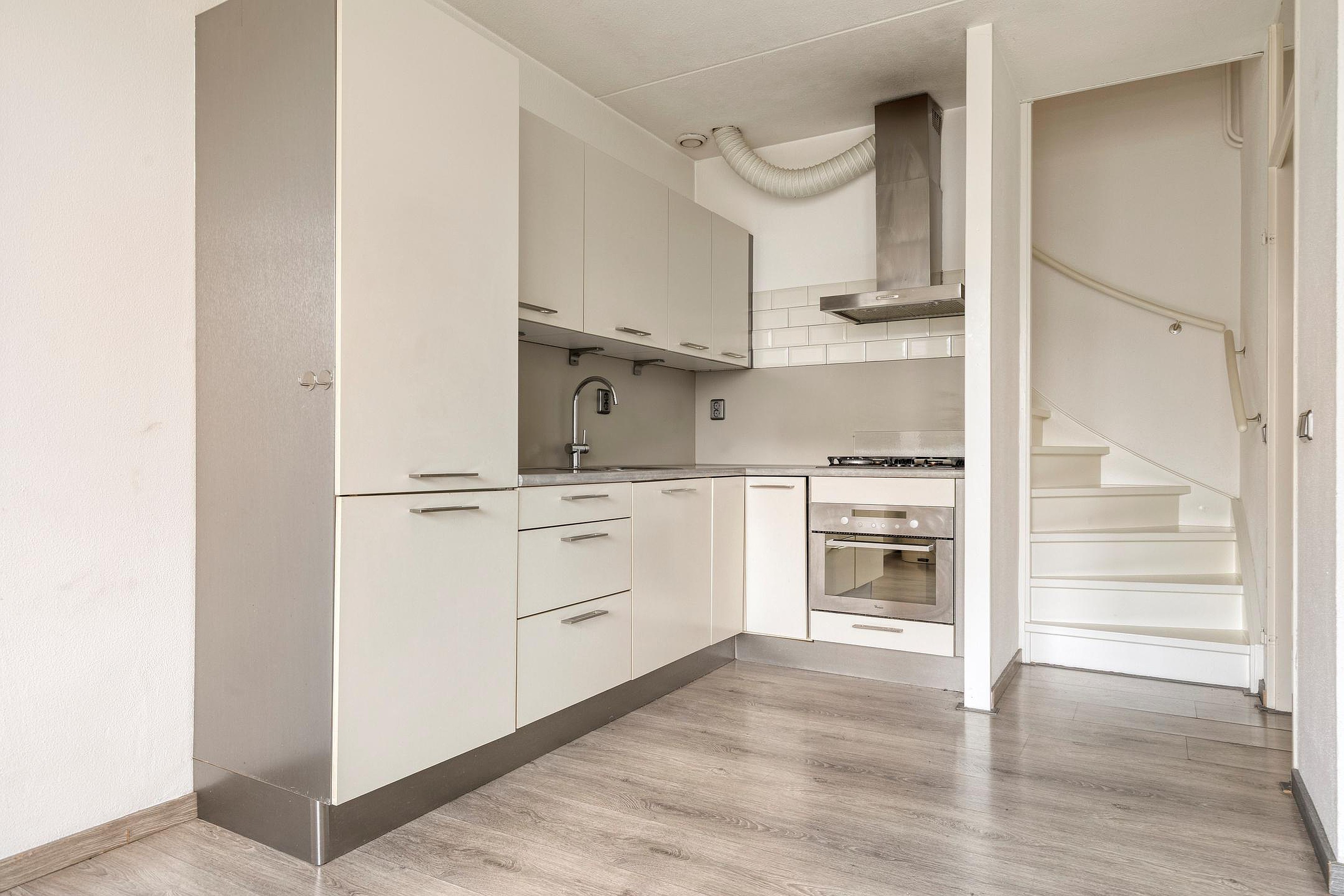- Moderne keuken met koelkast, afzuigkap, oven, gasfornuis
