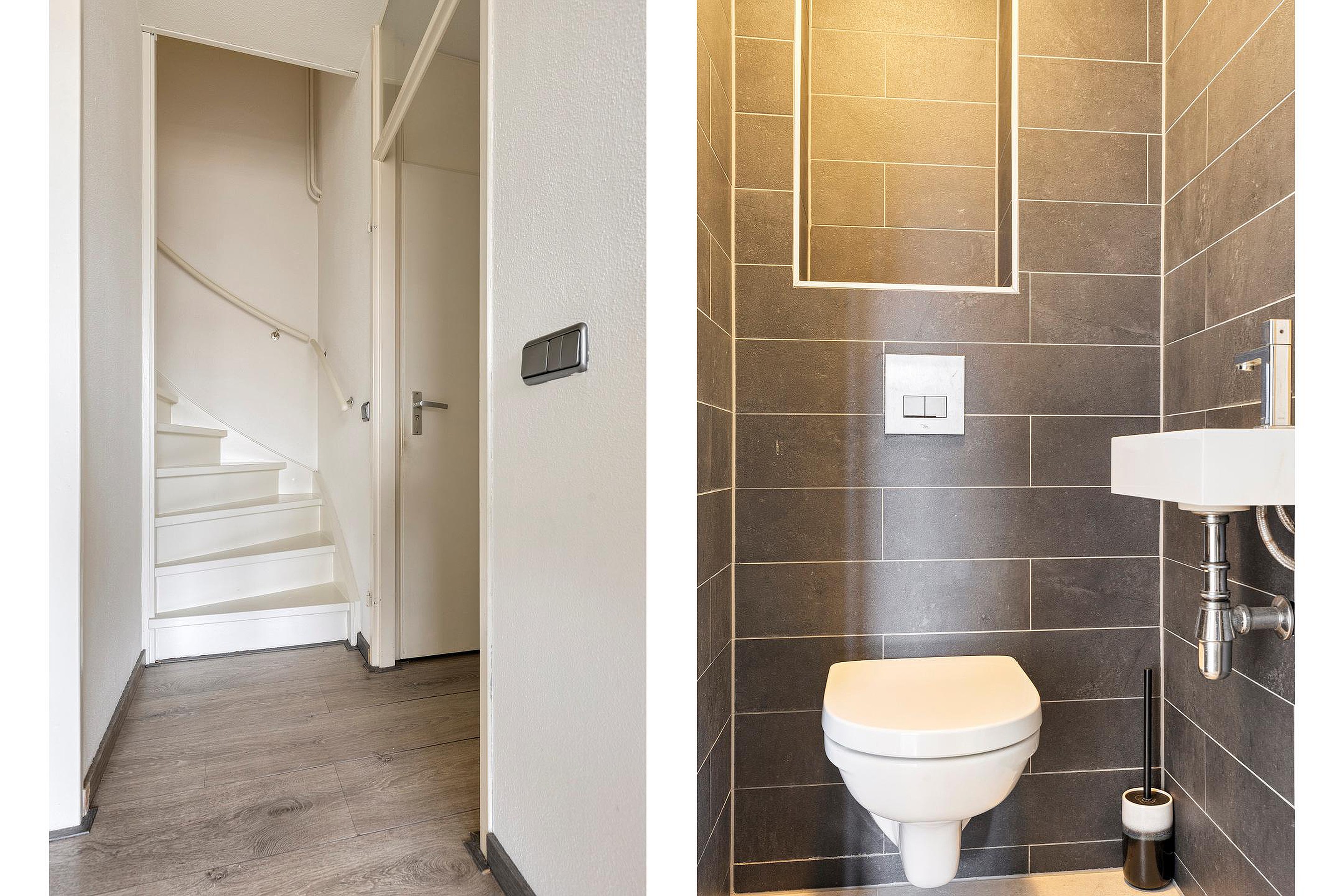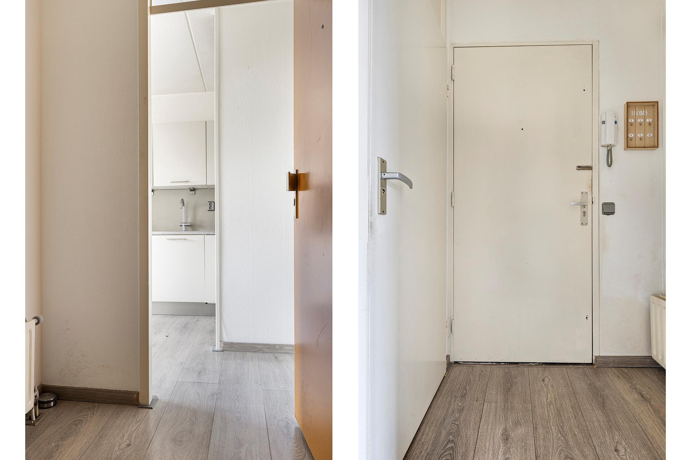 Gemeenschappelijke entree met trappenhuis, bellentableau en brievenbussen. Het trappenhuis geeft toegang tot slechts twee appartementen. Vanuit de entree heeft u tevens toegang tot de meterkast.