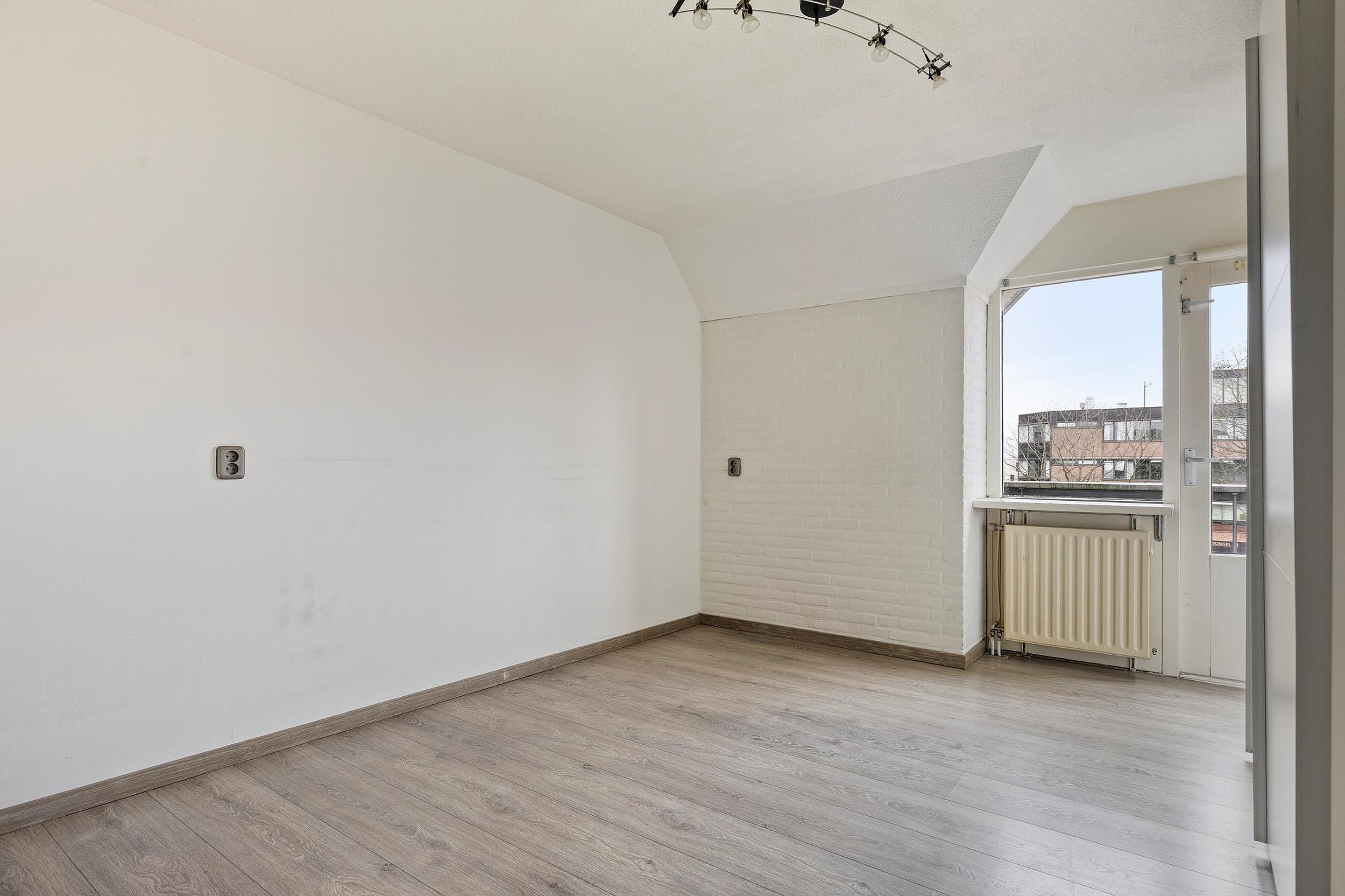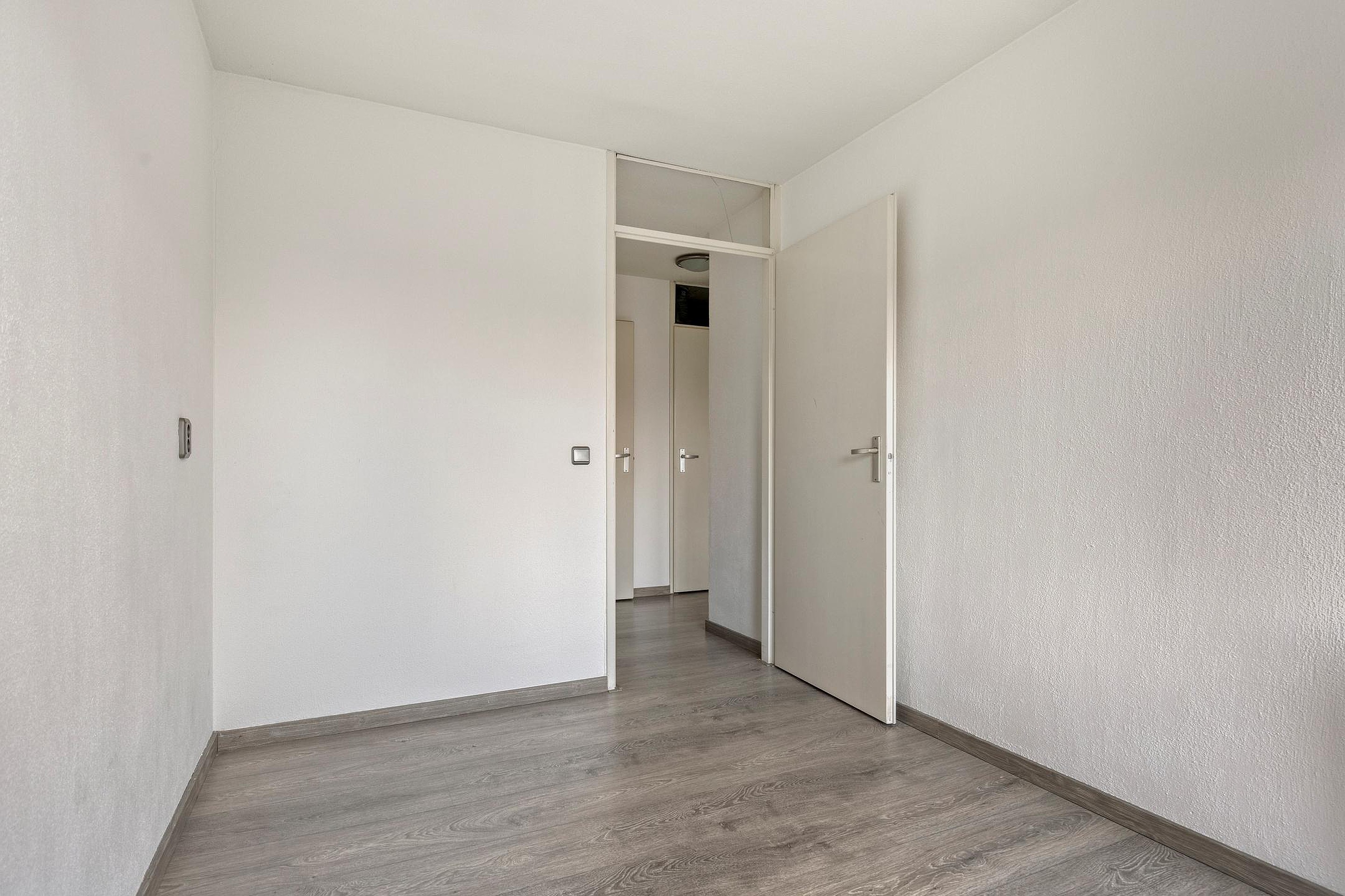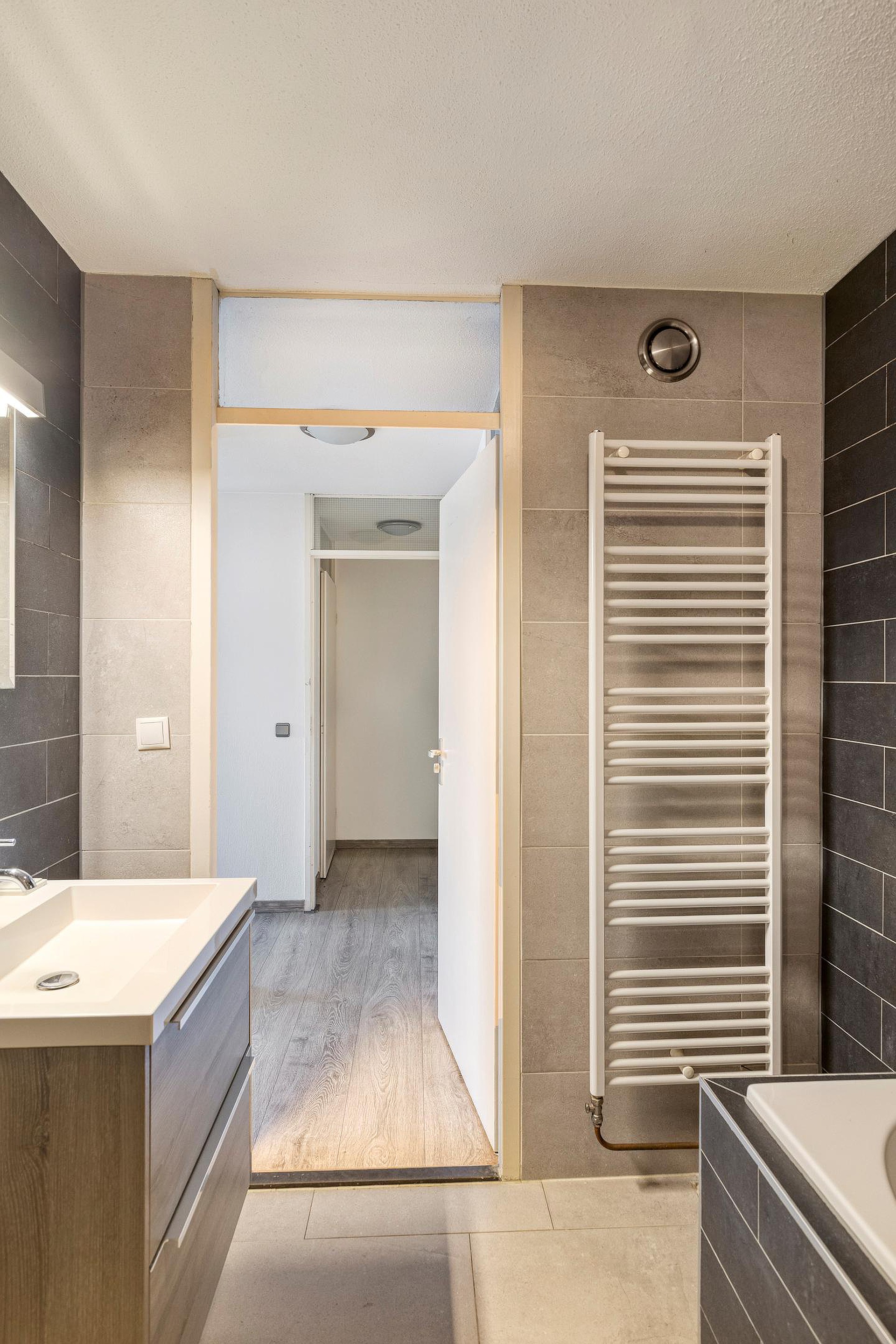 Tussenhal met toegang tot een vaste bergkast en loopdeur naar de overloop. De gehele verdieping is voorzien van een moderne bruinkleurige laminaatvloer en pleisterwerk wanden. Hier treft u de CV-ruimte en toegang tot de ruime slaapkamer 1 (ca. 4.08 x 3.10m.) met toegang tot balkon. Slaapkamer 2 (ca. 3.36 x 2.46m.) met toegang tot balkon. Volledige betegelde badkamer met ligbad, wastafelmeubel en aansluitpunten ten behoeve van de was apparatuur.