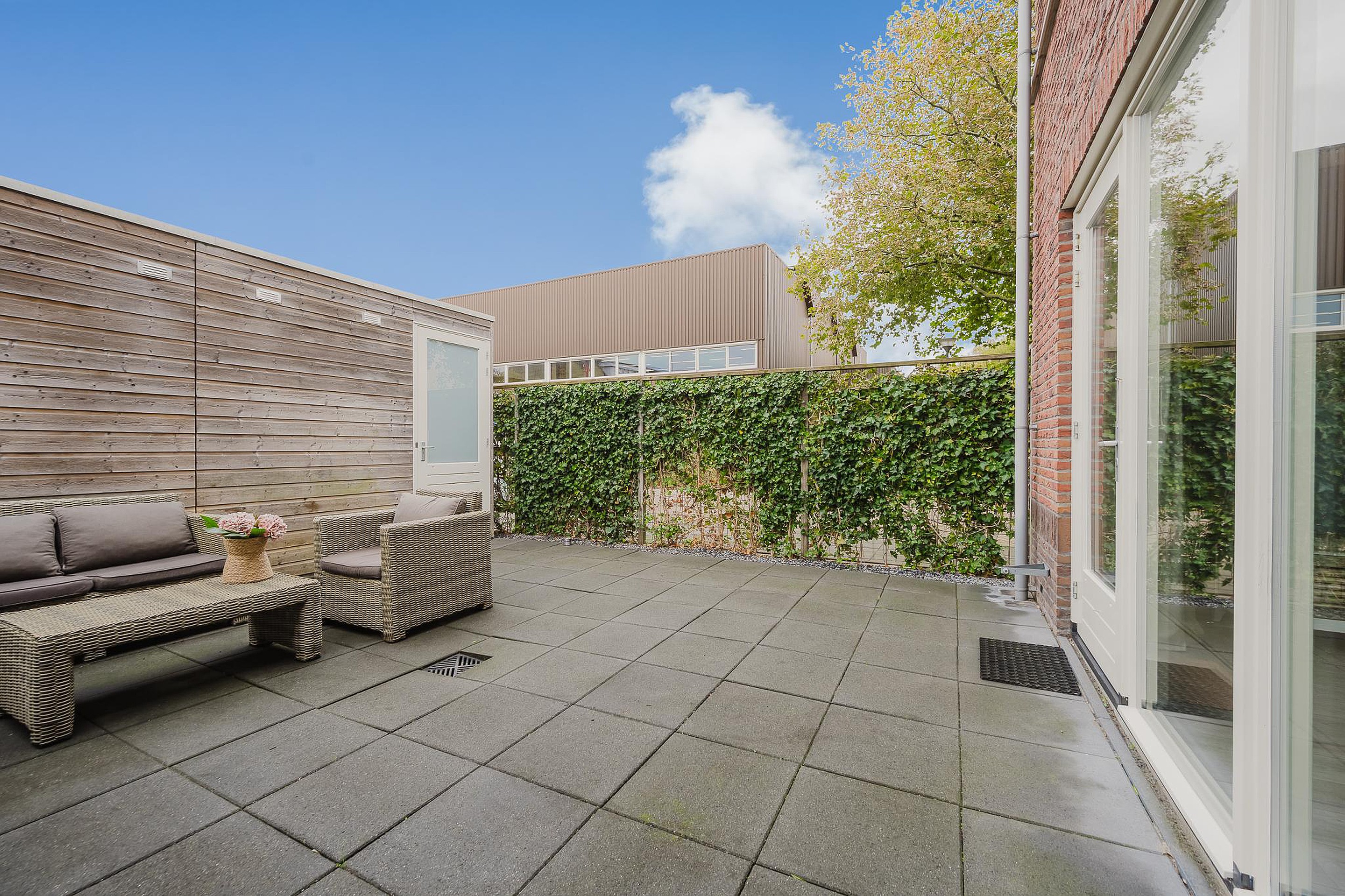 Via de tuindeur in de woonkamer stap je de achtertuin in, gelegen op het noordwesten. Hier is het heerlijk genieten van een kop koffie of een rustige middag in de buitenlucht. Achterin de tuin staat een houten berging voorzien van elektra, die tevens via een achterom toegang biedt tot het achtergelegen parkeerterrein.