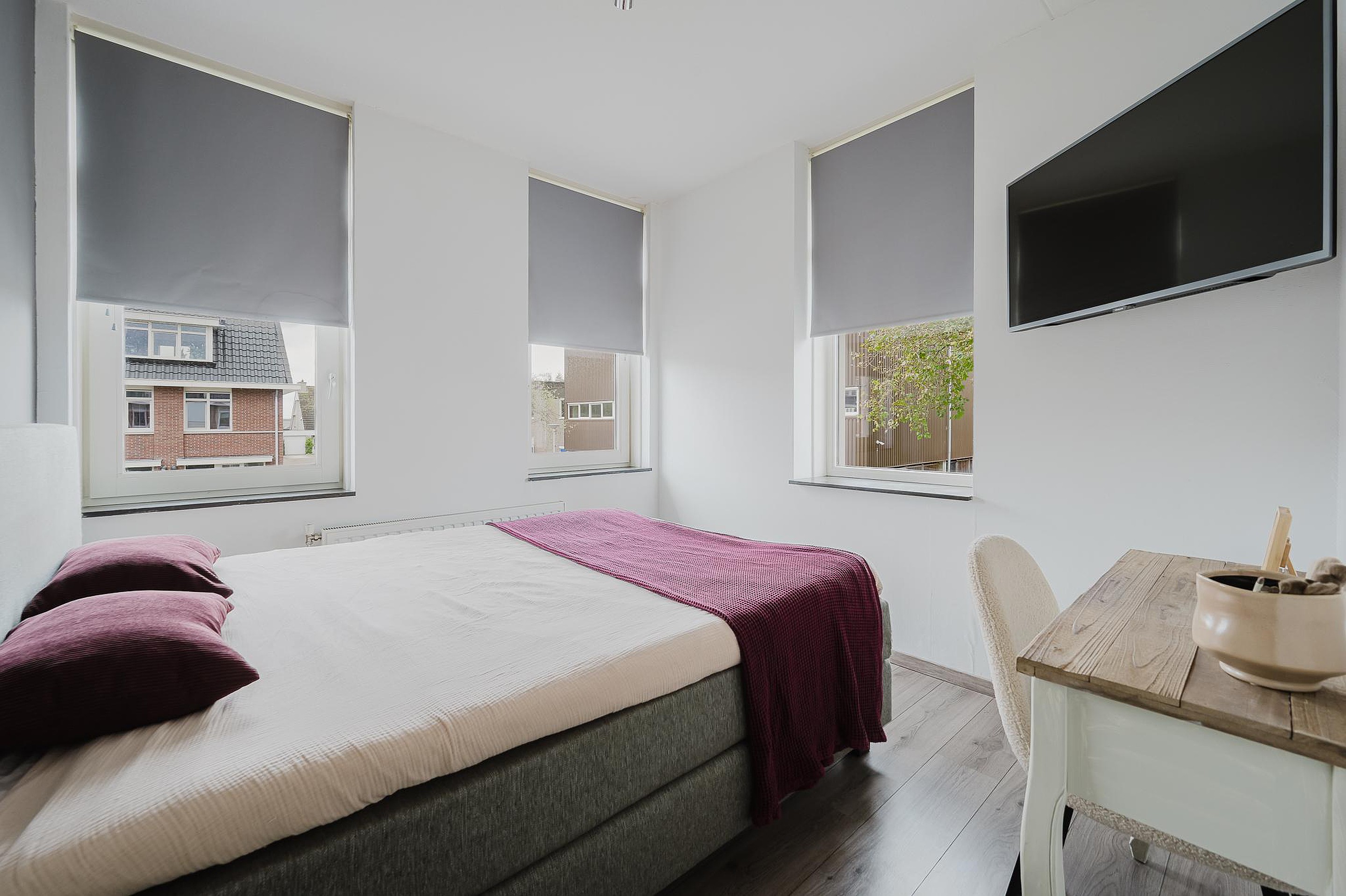 De master bedroom is ruim en profiteert van een prettige lichtinval dankzij de grote raampartijen. De tweede slaapkamer is compact maar functioneel en leent zich uitstekend als kledingkamer, werkruimte of logeerkamer.