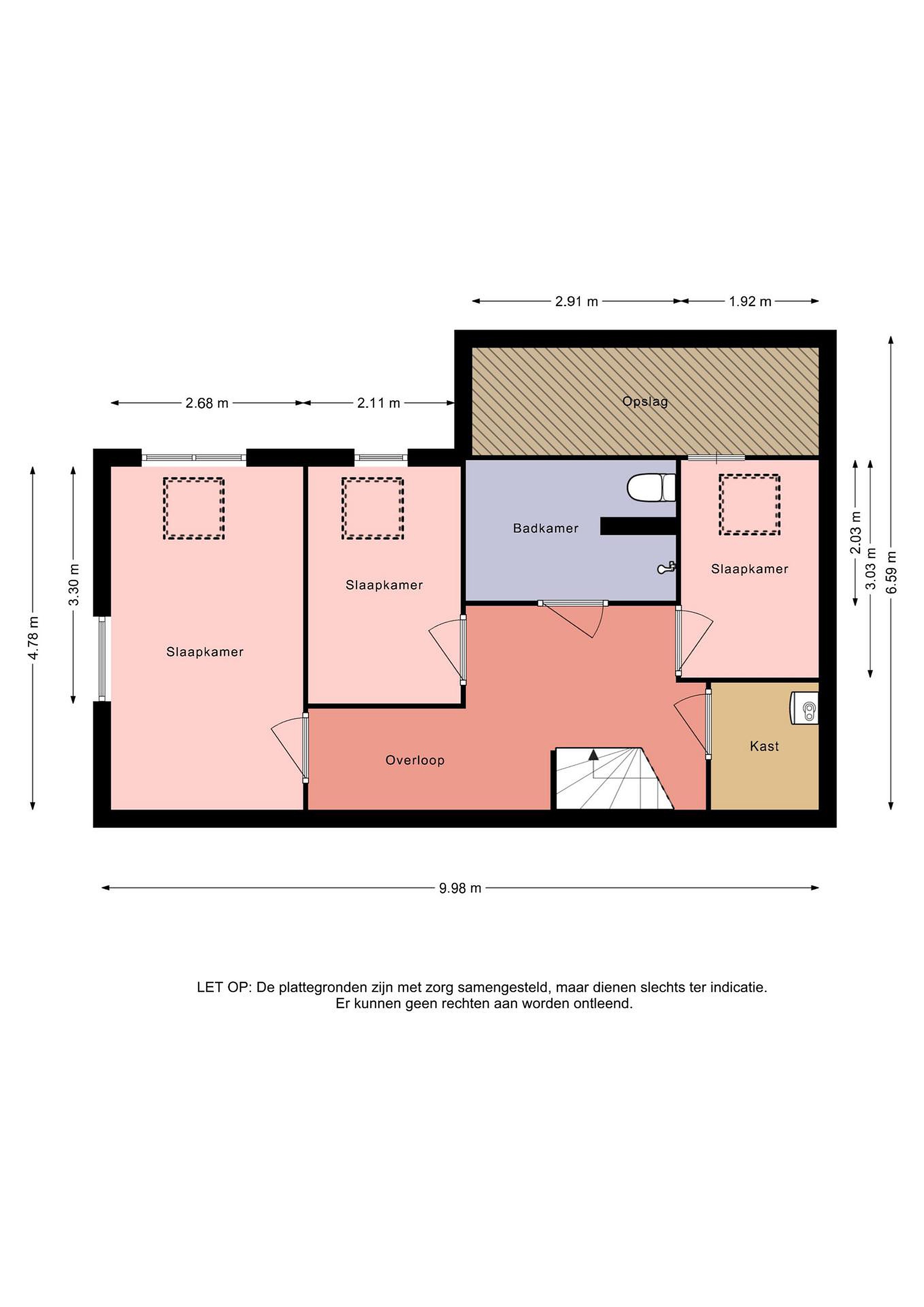 Via de vaste trap in de hal is de verdieping te bereiken, hier een overloop met bergkast en CV opstelling, vervolgens drie slaapkamers en de badkamer.