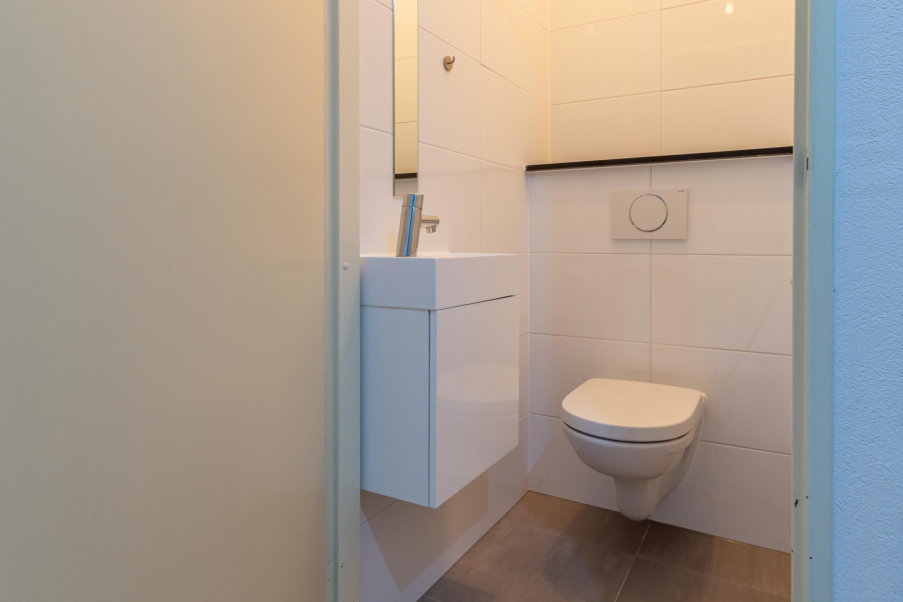 Entree appartement, hal met meterkast, garderobekast en toiletruimte. Via tussendeur is de woonkamer bereikbaar met open keuken en toegang tot het zonneterras.