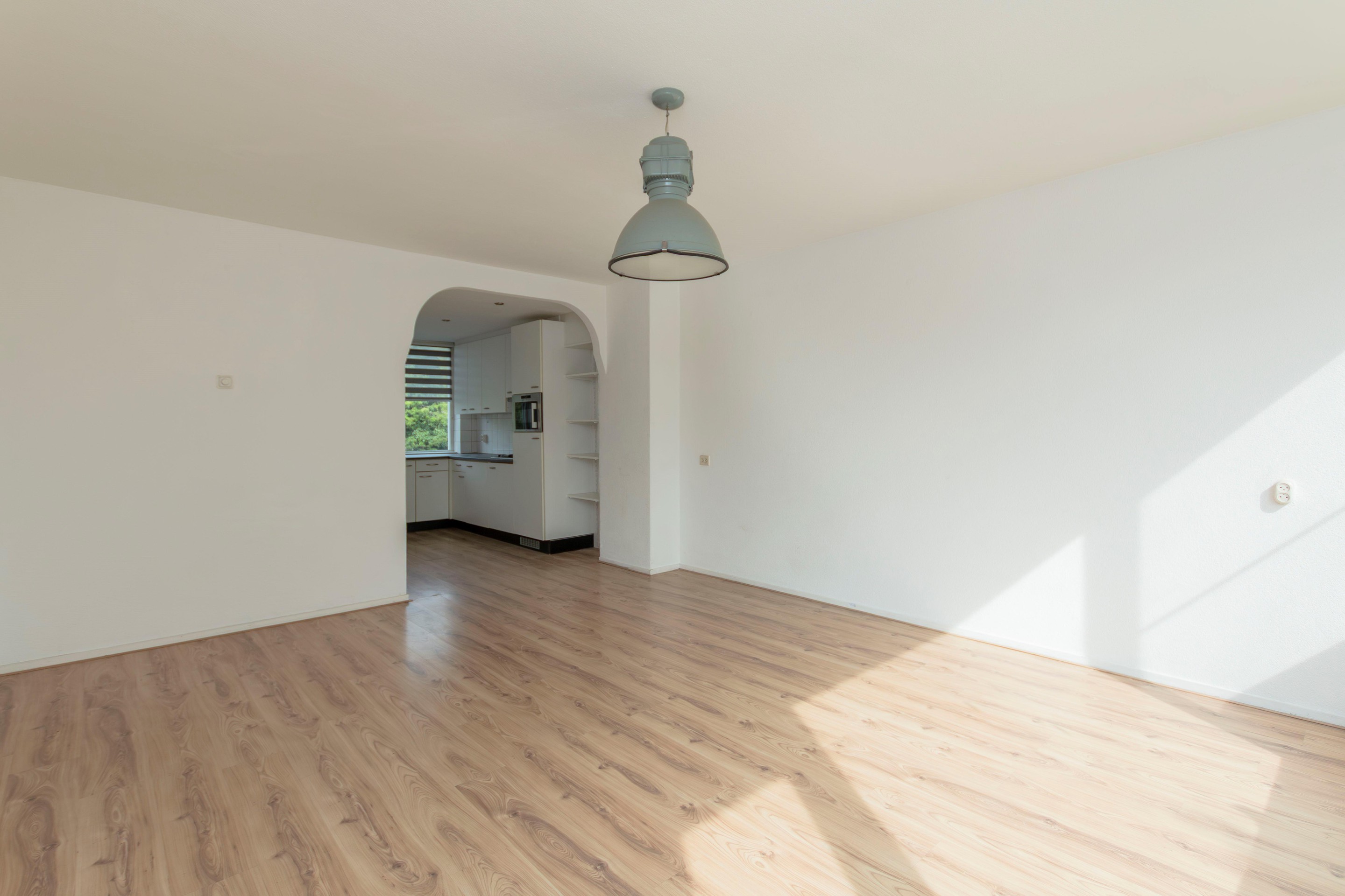 Bij binnenkomst valt direct de royale en lichte woonkamer op. Dankzij de grote raampartijen geniet u hier van een prachtige lichtinval en een vrij uitzicht. De strak gestukte wanden en plafonds in combinatie met de moderne houtlook laminaatvloer zorgen voor een frisse en eigentijdse uitstraling. Vanuit de woonkamer loopt u zo het zonnige balkon op, gelegen aan de achterzijde, een heerlijke plek om te ontspannen.