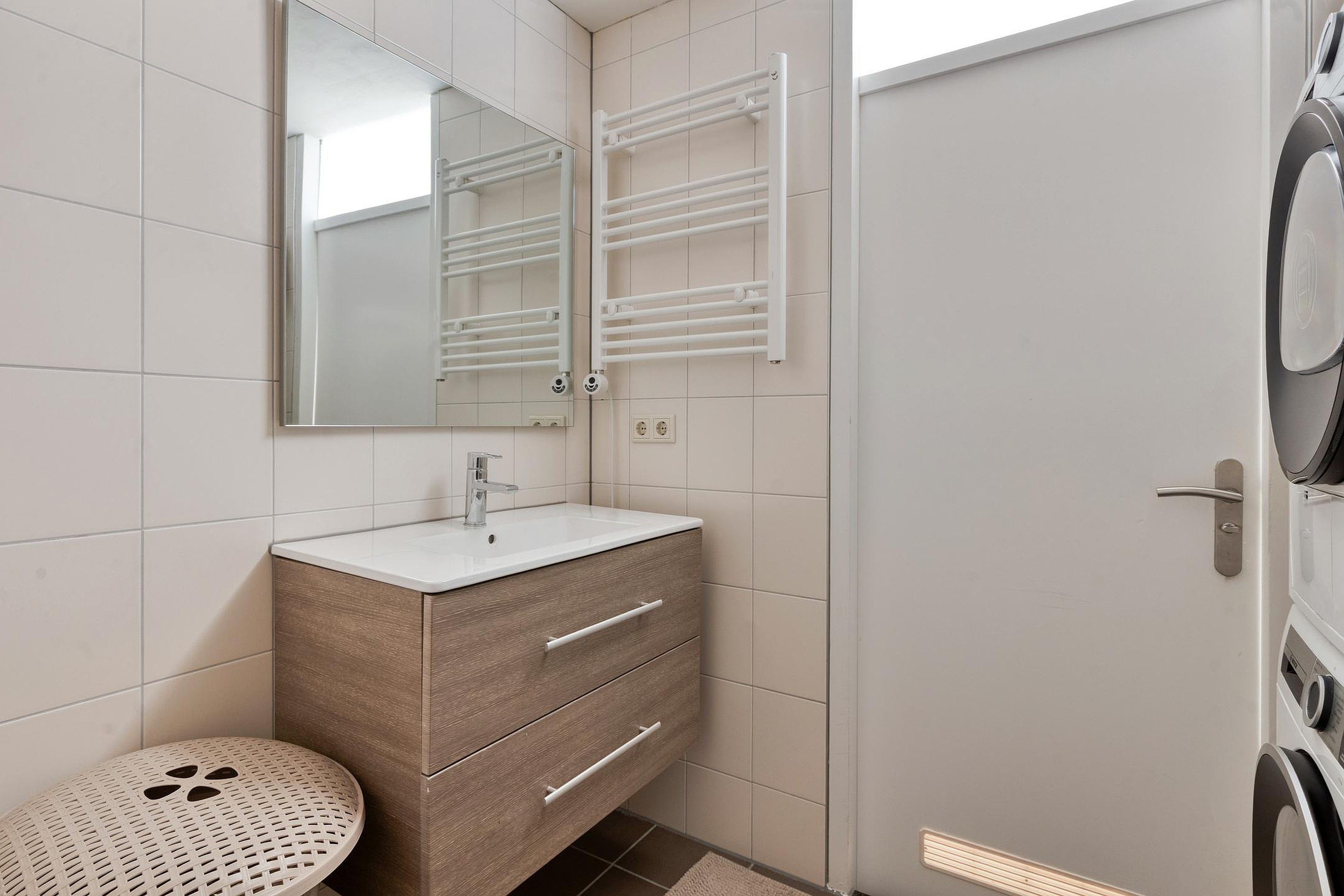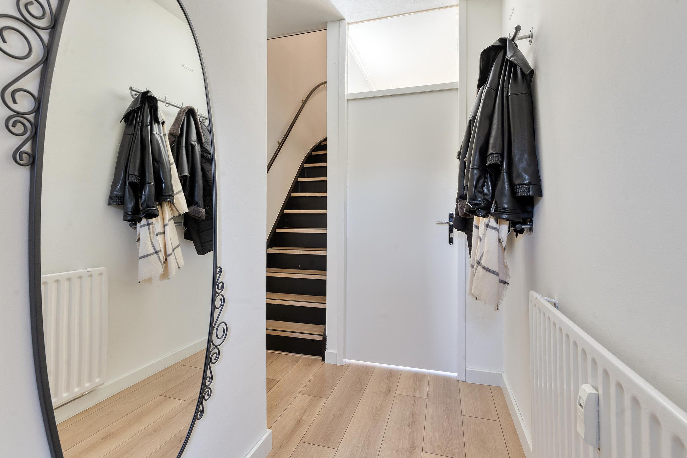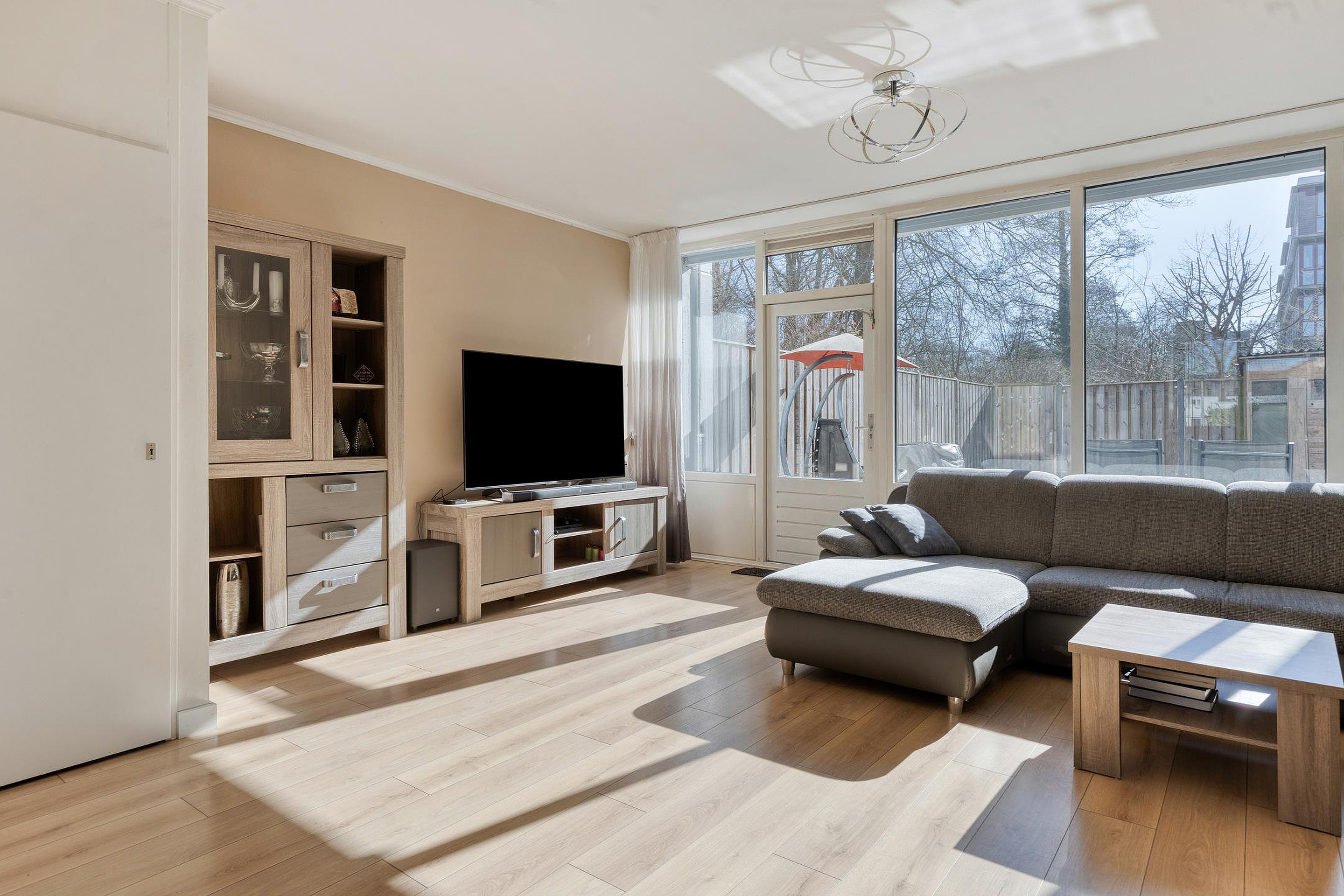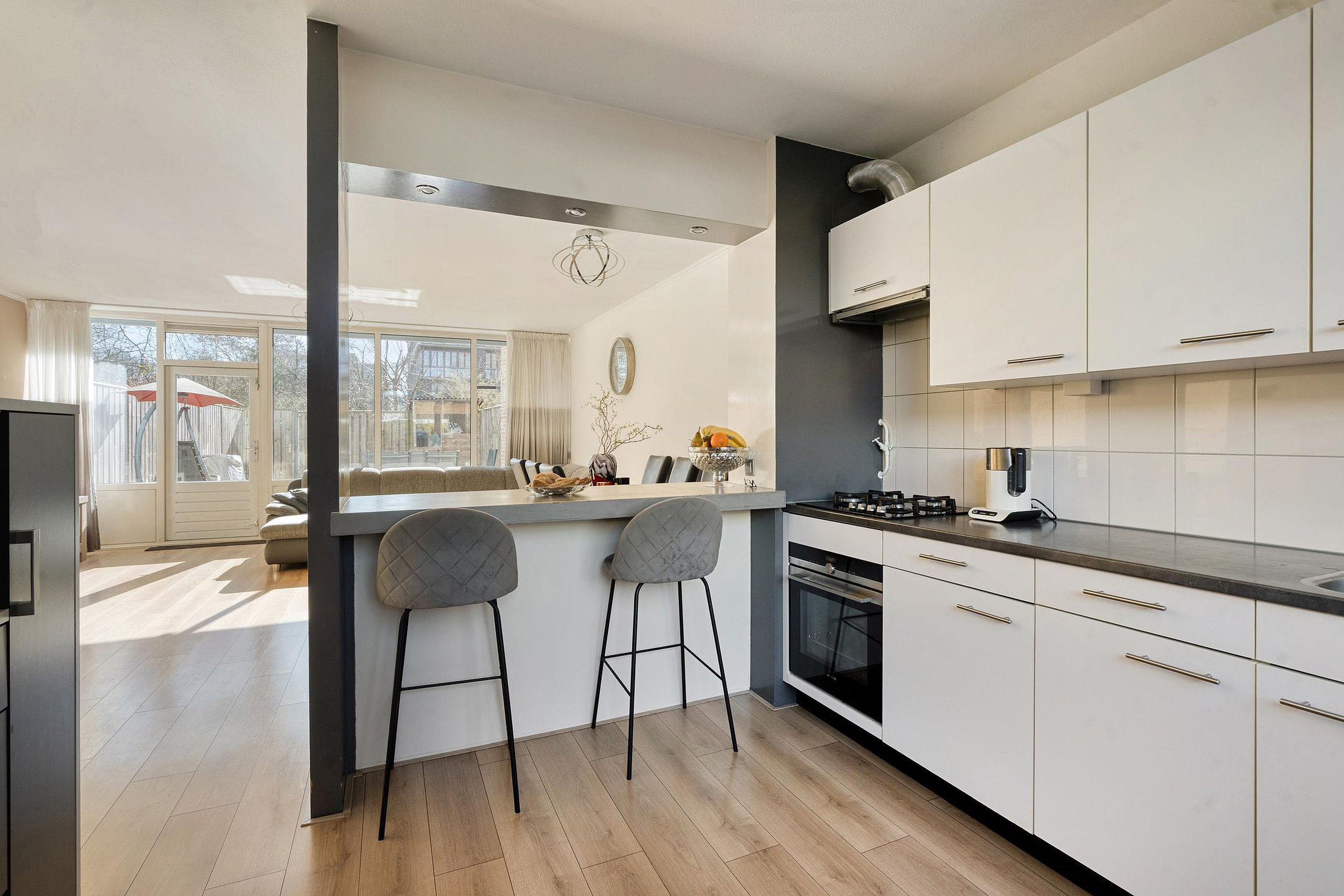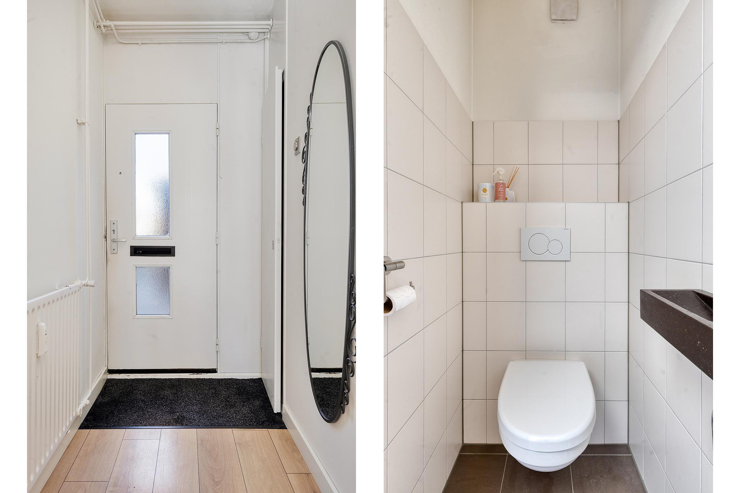 Bij binnenkomst komt u in de hal met toegang tot het separate toilet en de woonkamer. De woonkamer is ruim opgezet en dankzij de grote raampartijen komt er veel daglicht naar binnen. De leefruimte biedt voldoende plaats voor zowel een comfortabele zithoek als een eethoek. Vanuit de woonkamer kijkt u aan de achterzijde uit op het groen, wat een prettig en rustig gevoel geeft in huis. De keuken is praktisch ingericht en biedt voldoende werk- en opbergruimte.