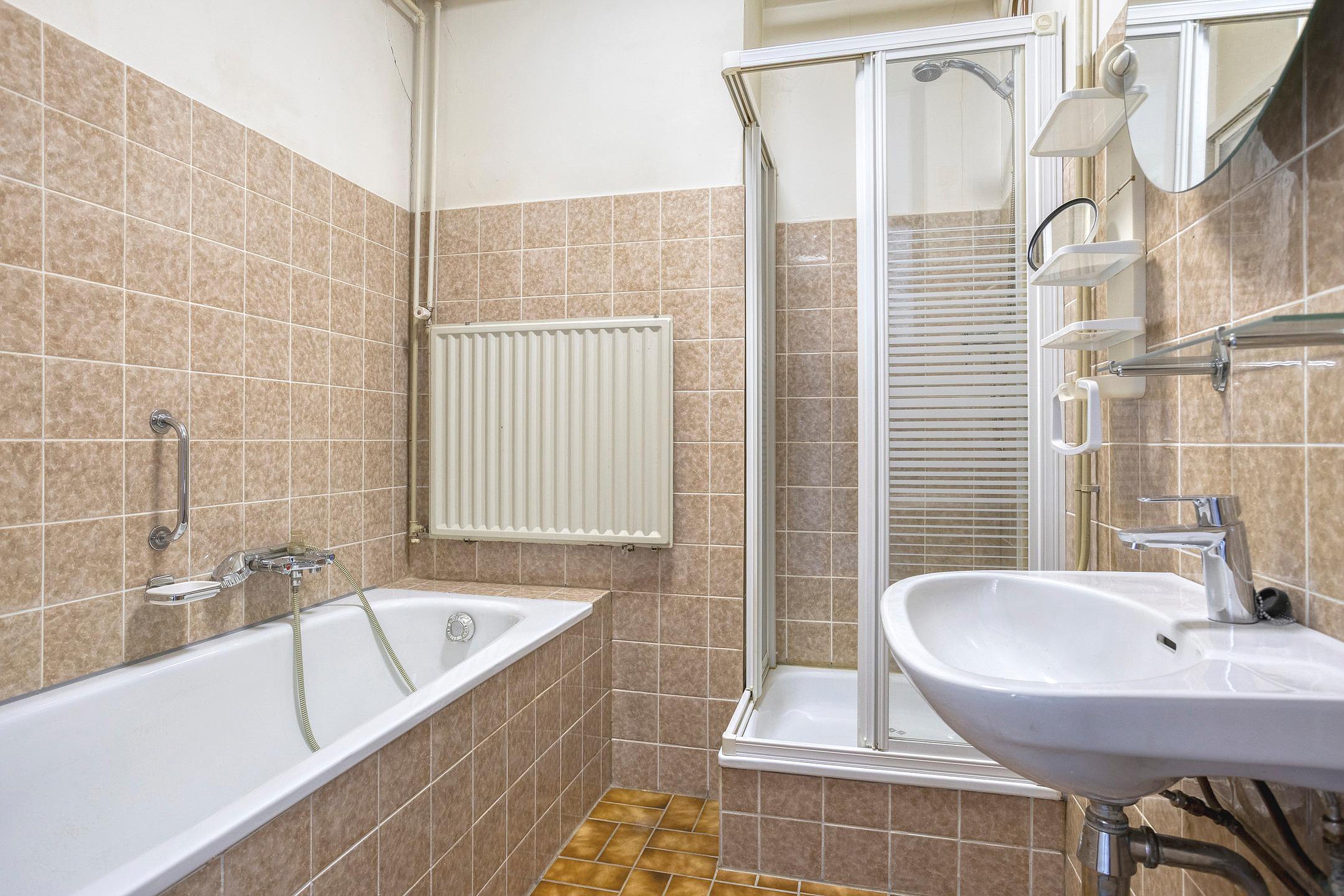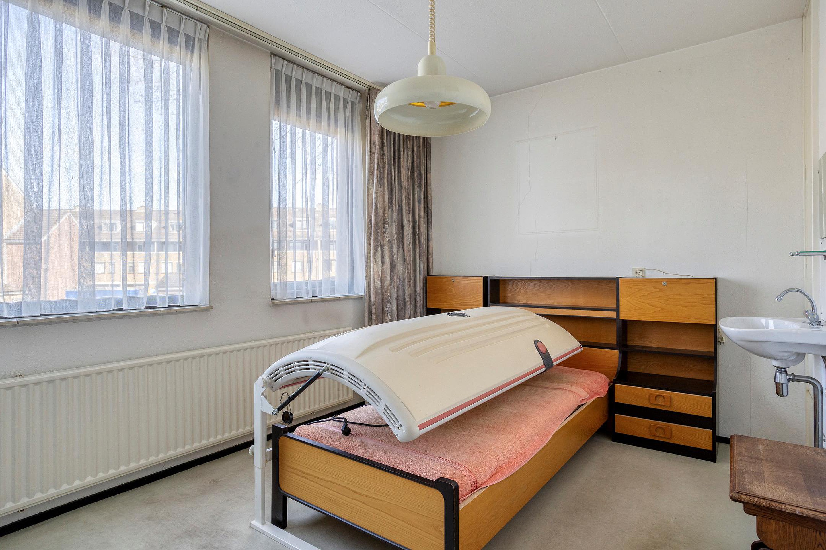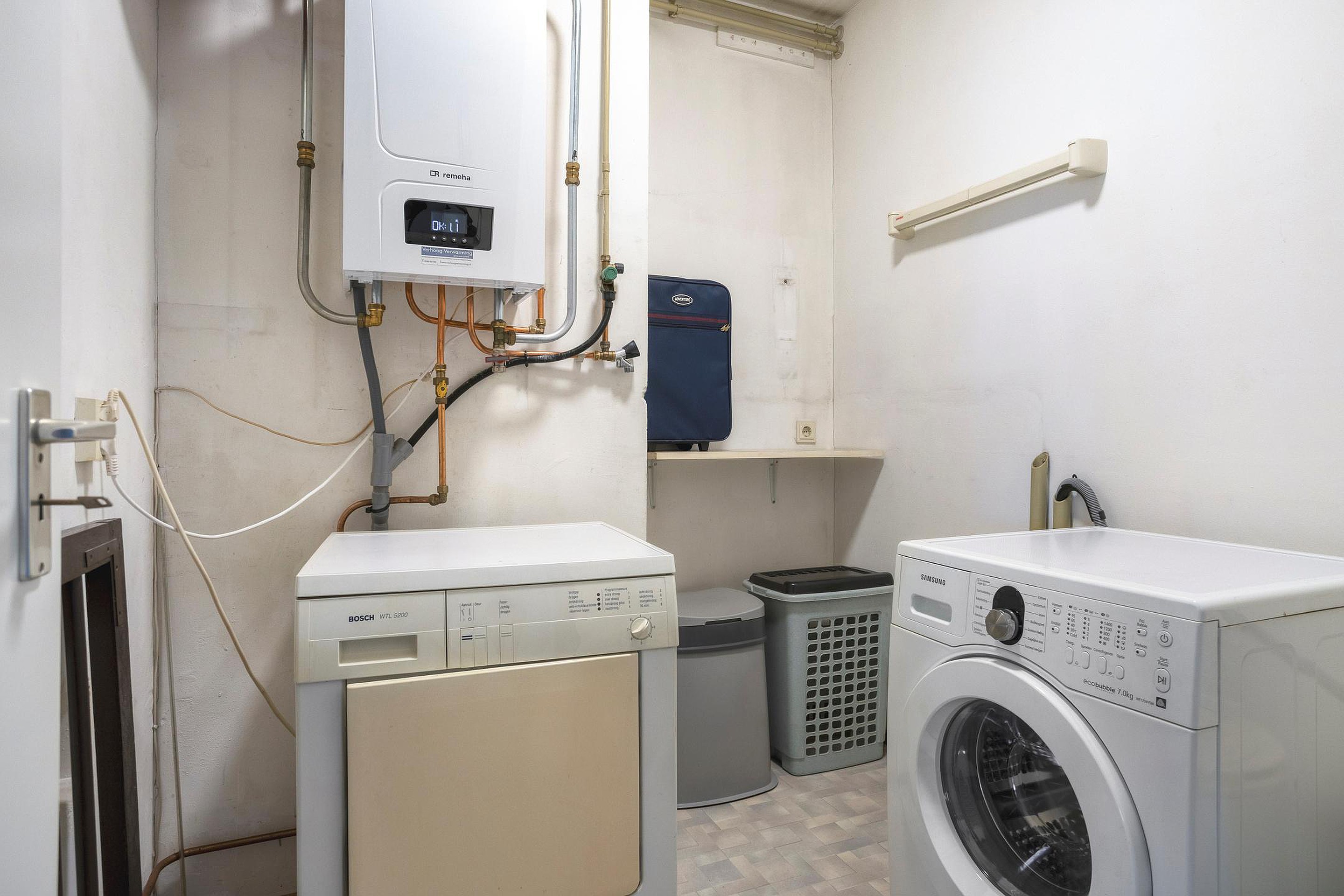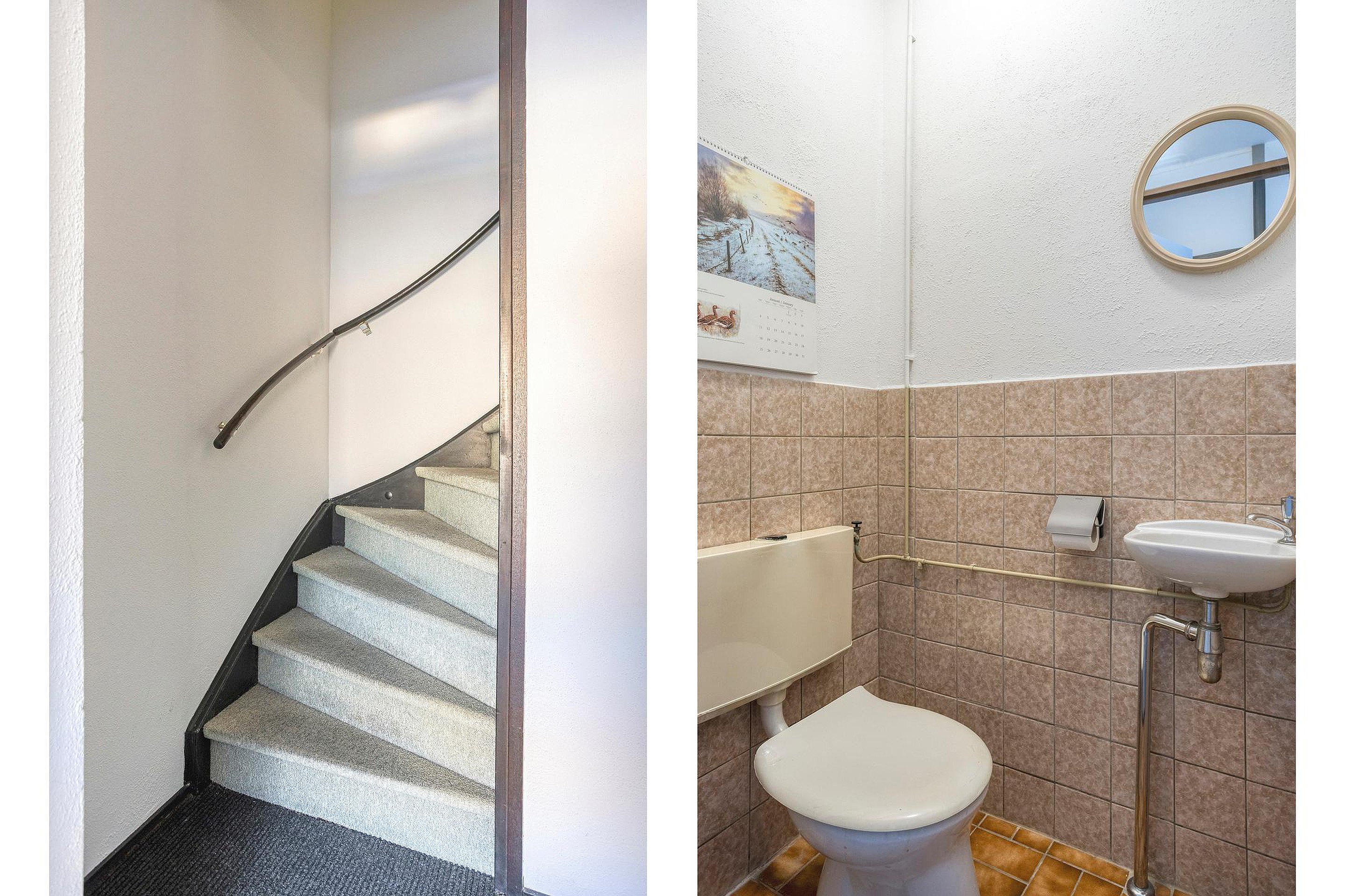 Aan de straatzijde liggen twee slaapkamers op het noordwesten, waardoor ze in de zomer aangenaam koel blijven. De badkamer is voorzien van een ligbad, douchecabine en wastafel. Er is een separaat toilet. In de wasruimte bevinden zich de aansluiting voor de wasmachine en de CV-combiketel.