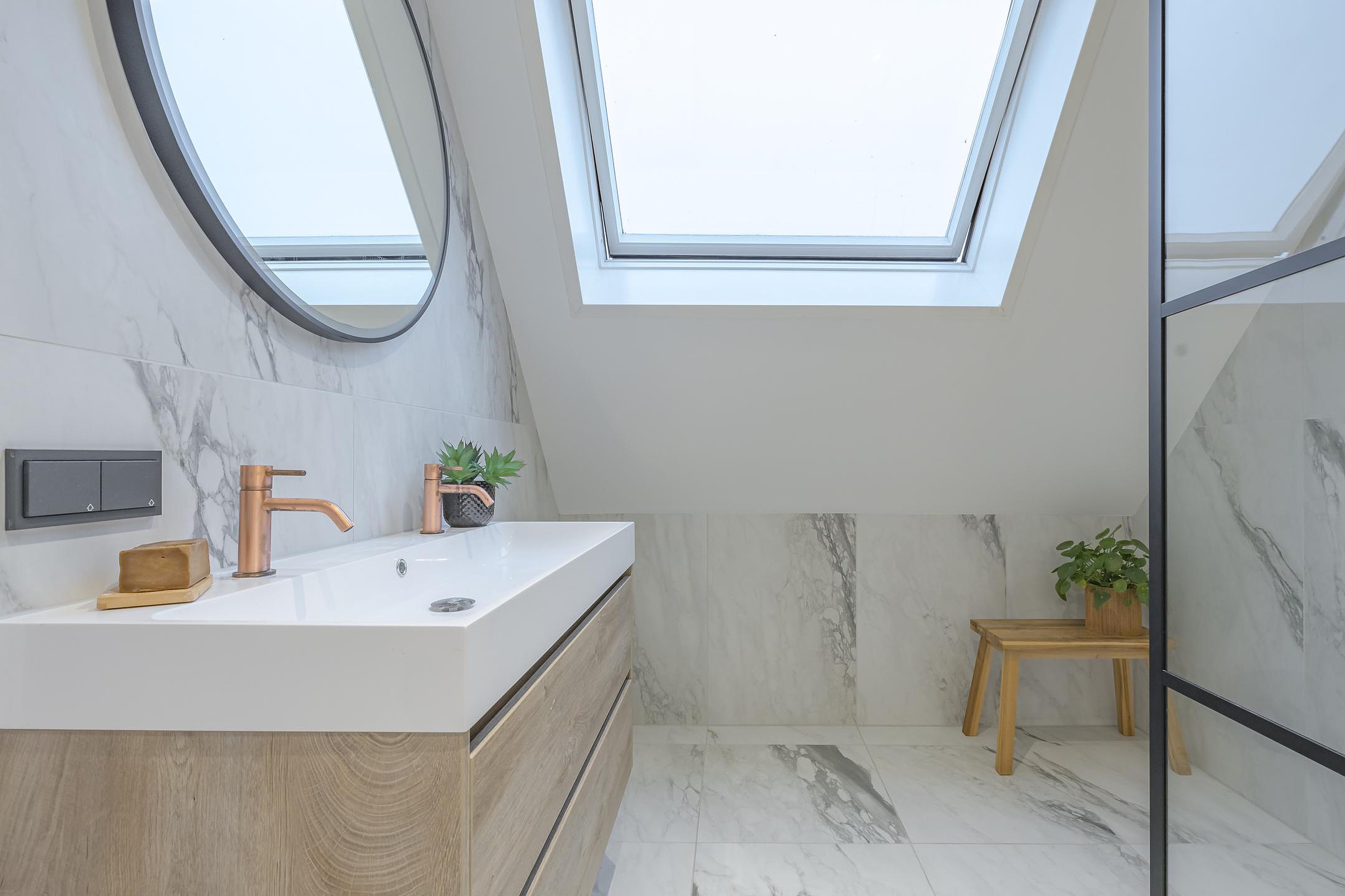 Daarnaast is er een ruime extra slaapkamer die perfect kan functioneren als logeer-, werk- of hobbykamer. Door de ruimte en hoogte voelt de verdieping licht en ruimtelijk aan.