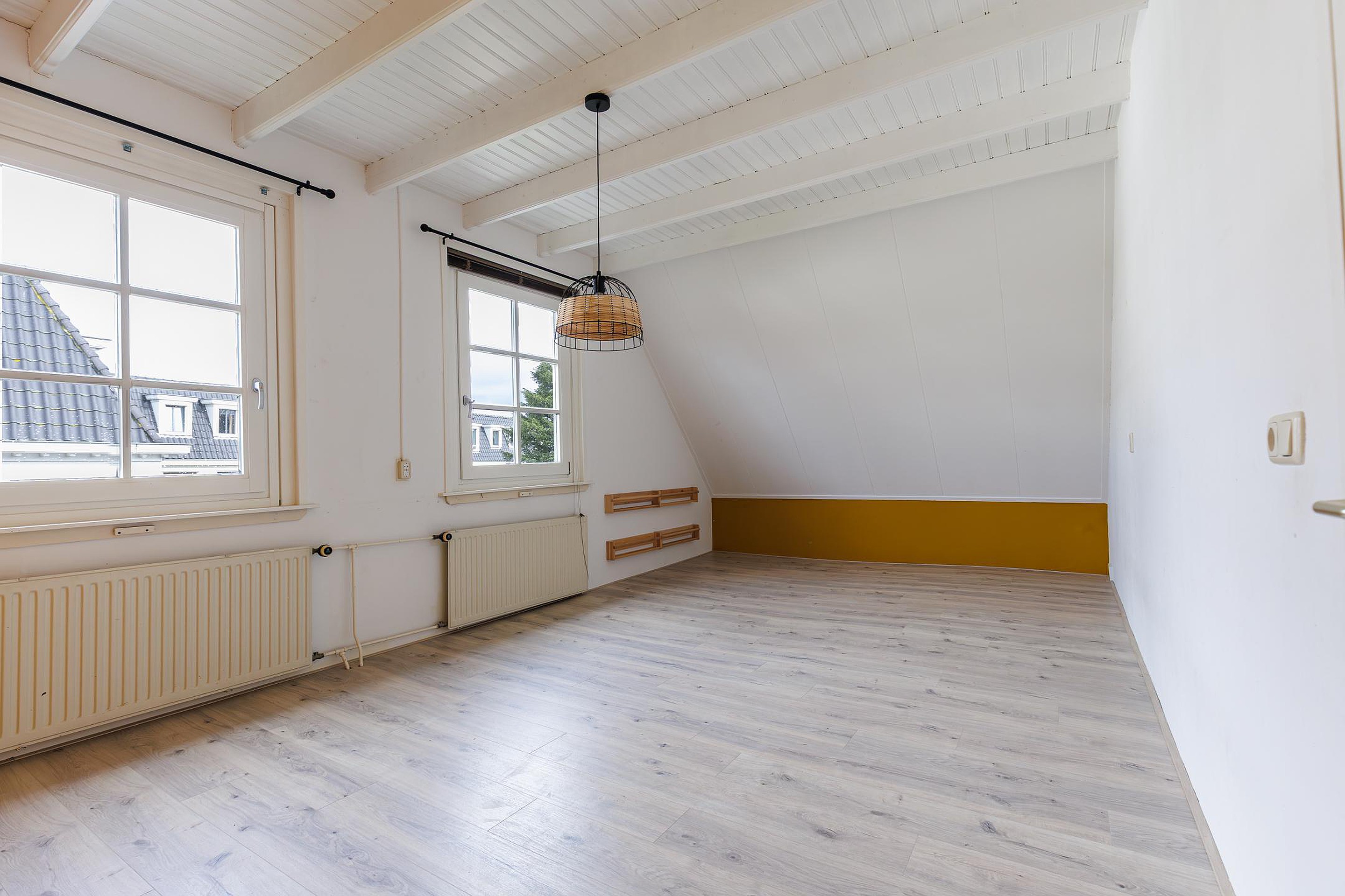 Daarnaast is er een ruime extra slaapkamer die perfect kan functioneren als logeer-, werk- of hobbykamer. Door de ruimte en hoogte voelt de verdieping licht en ruimtelijk aan.