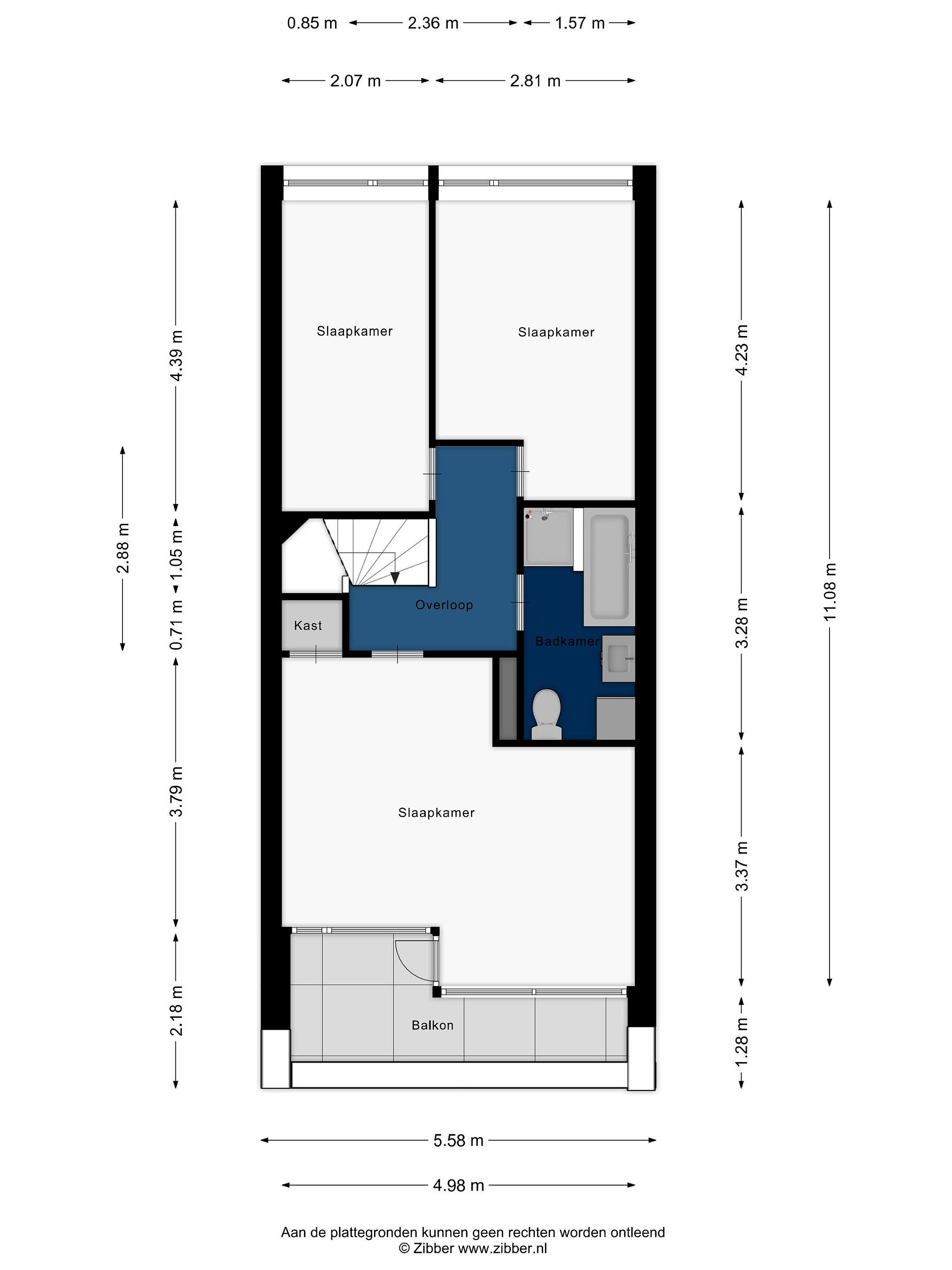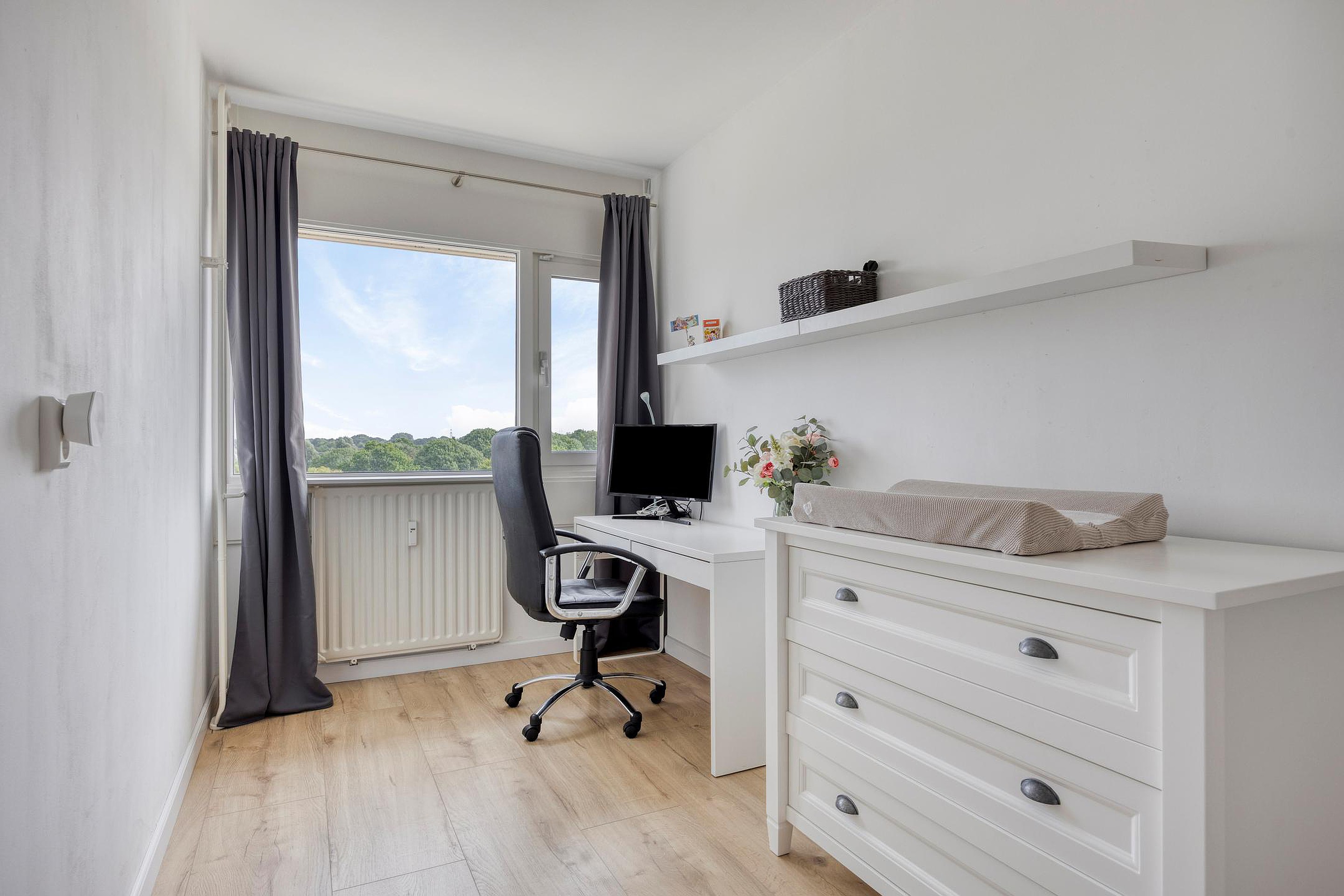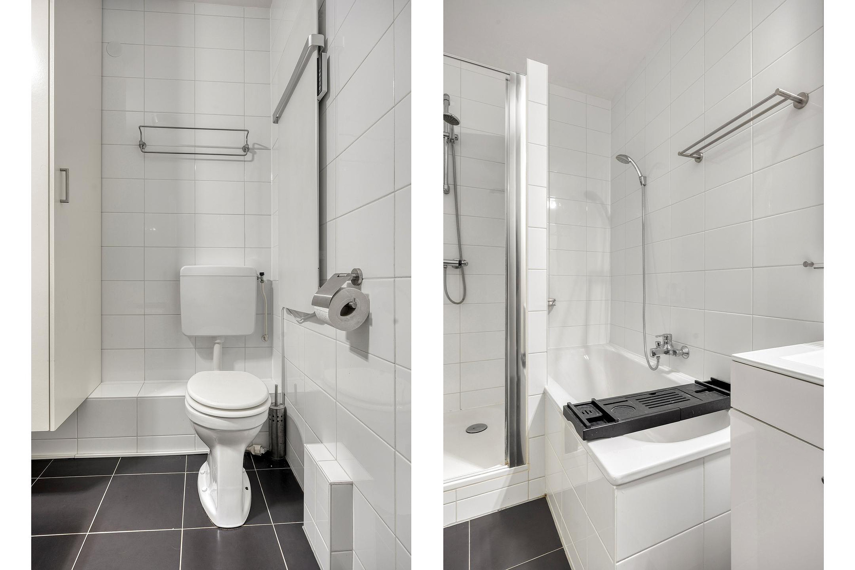 Overloop. Aan de achterzijde van de woning bevinden zich twee slaapkamers. Aan de voorzijde van de woning vindt u een ruime ouderslaapkamer (voorheen twee kamers) met vaste kast. Zonliefhebbers opgelet! Het zonnige balkon is gelegen op het zuidwesten. De badkamer met ligbad, separate douche, wastafelmeubel, 2e toilet en opstelplaats voor de boiler (80 L.) maakt het geheel compleet.