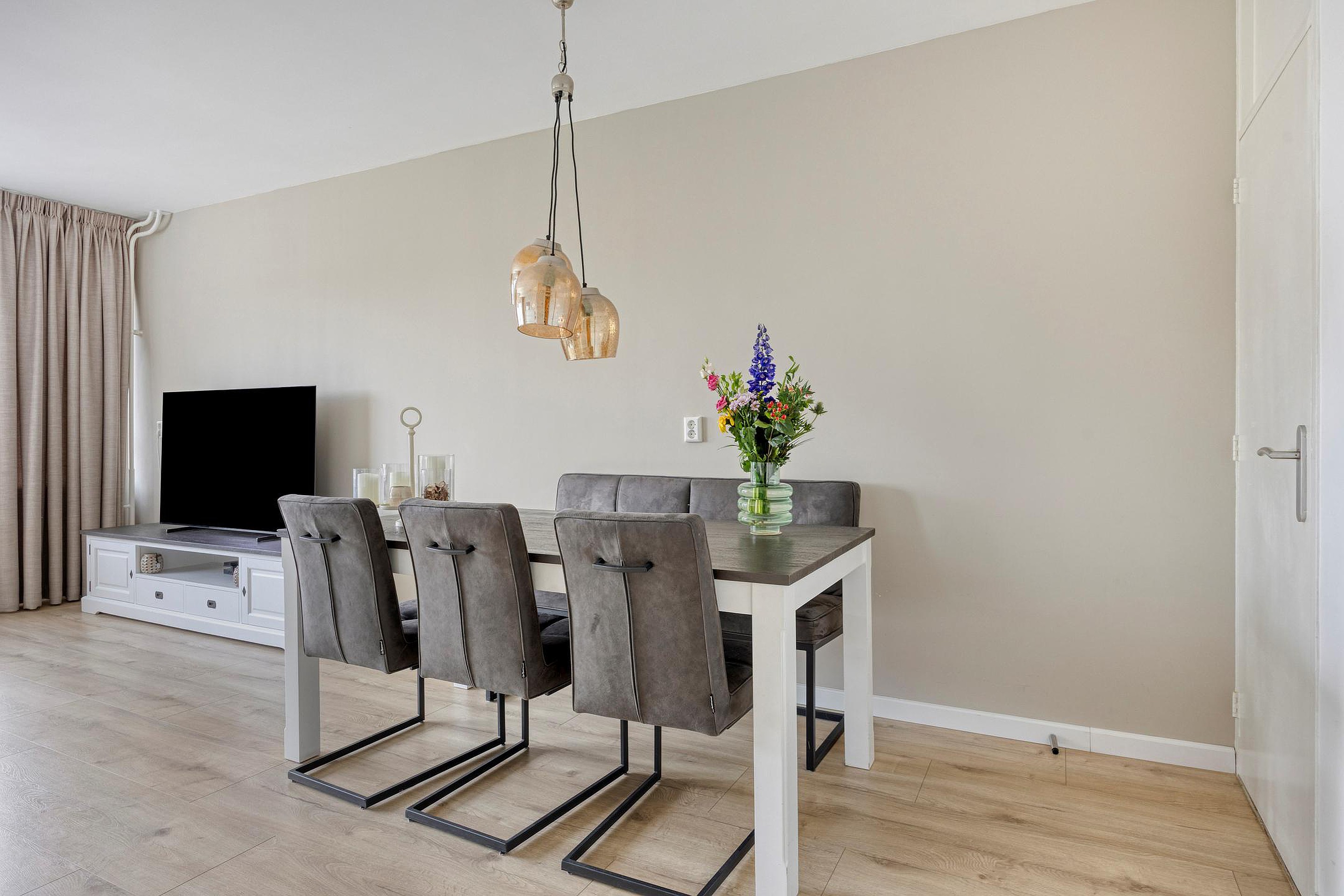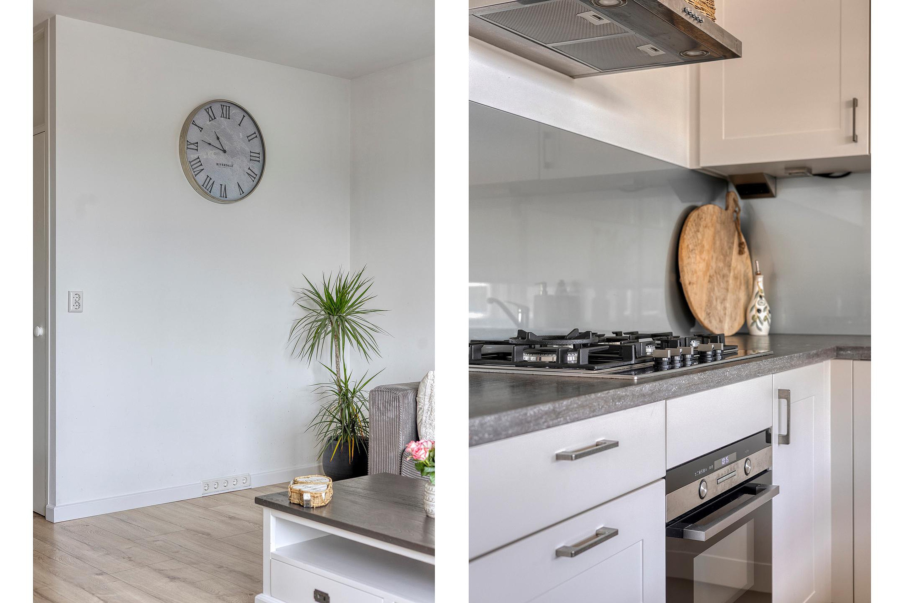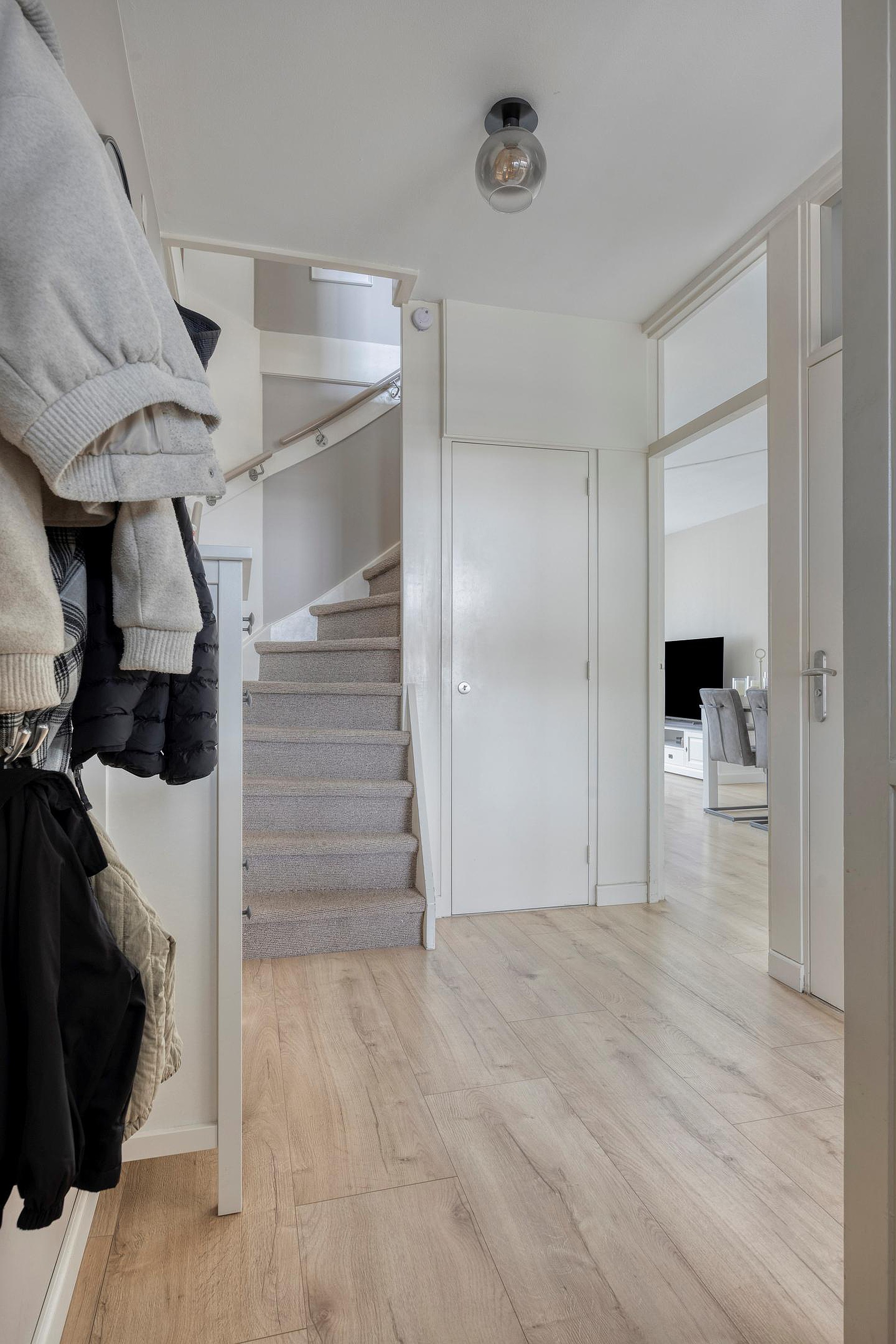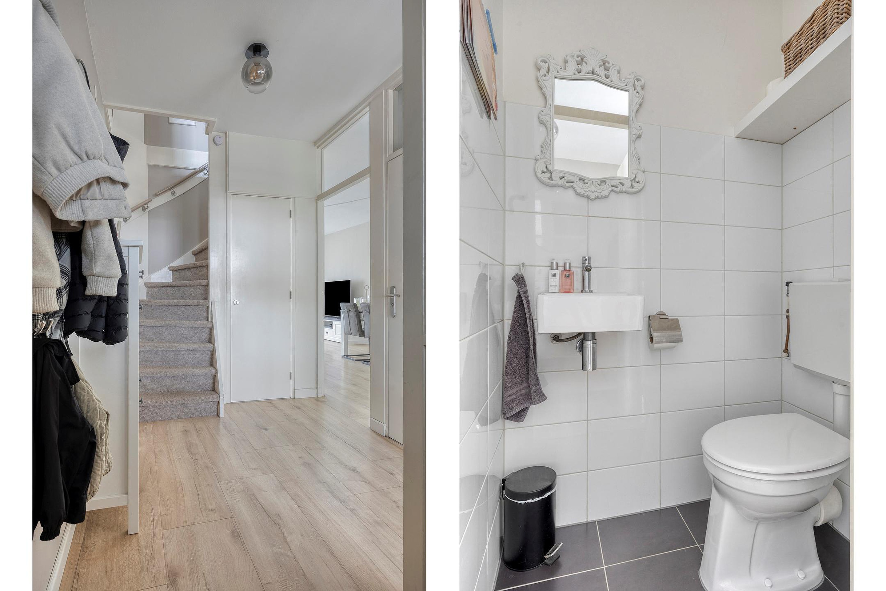 Entree woning met hal met meterkast, toiletruimte met hangend closet + fonteintje en de trapopgang naar de slaapverdieping. Vanuit de hal zijn zowel de woonkamer als de keukenruimte bereikbaar. Door de grote raampartij geniet u van een lichte woonkamer met aantrekkelijk uitzicht. Hier is genoeg ruimte voor een gezellige grote eettafel. Beeld u zich eens in hoe leuk deze plek in huis kan zijn wanneer u vrienden of familie hebt uitgenodigd voor een diner... De trapkast zorgt voor handige opbergruimte. Separate (berg)ruimte met wasmachineaansluiting. De moderne afgesloten L-vormige keuken (2018) vindt u aan de voorzijde van de woning en beschikt o.a. over een 5-pitskookplaat, rvs afzuigkap, combi oven, koel/vriescombinatie en een vaatwasser.