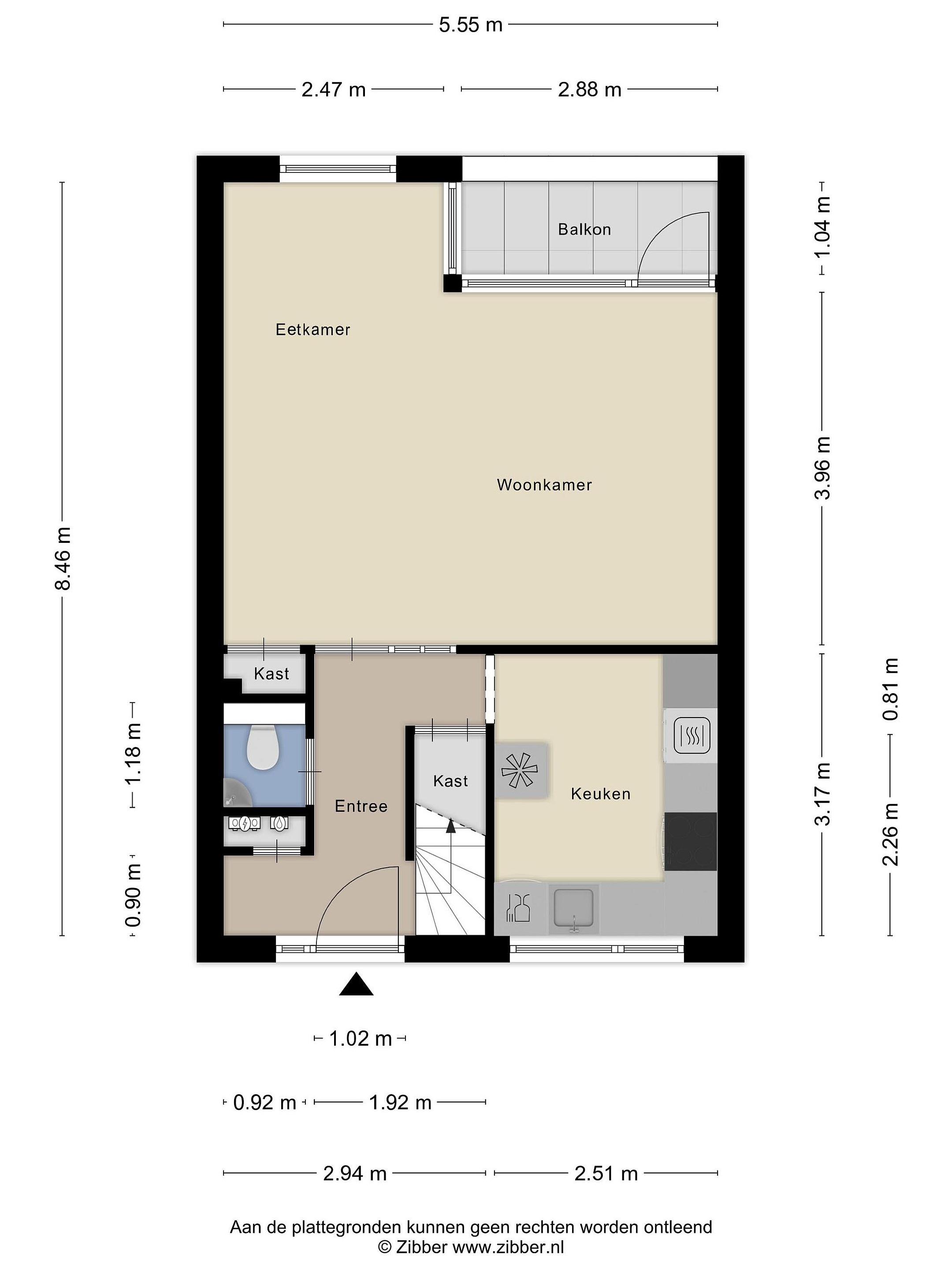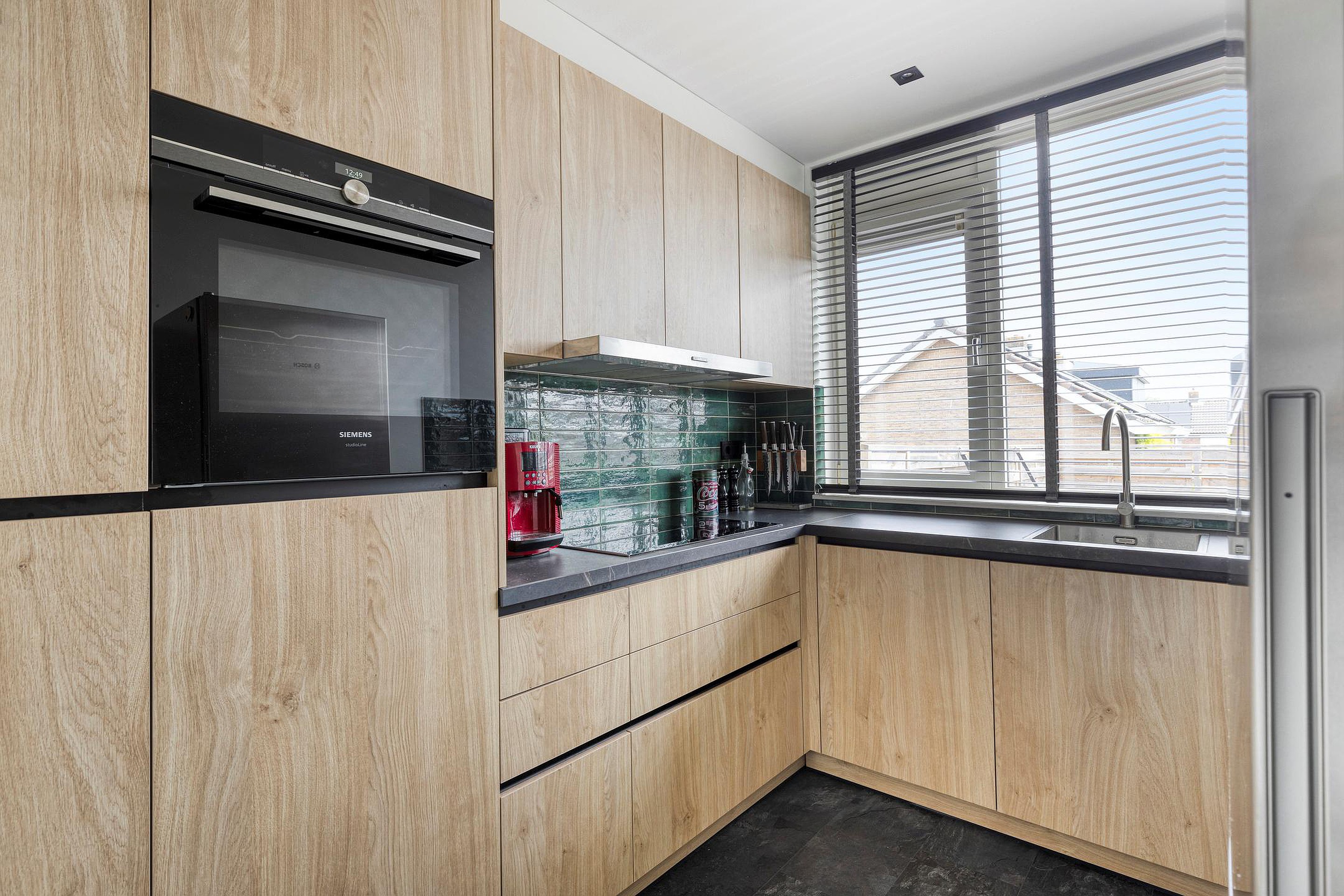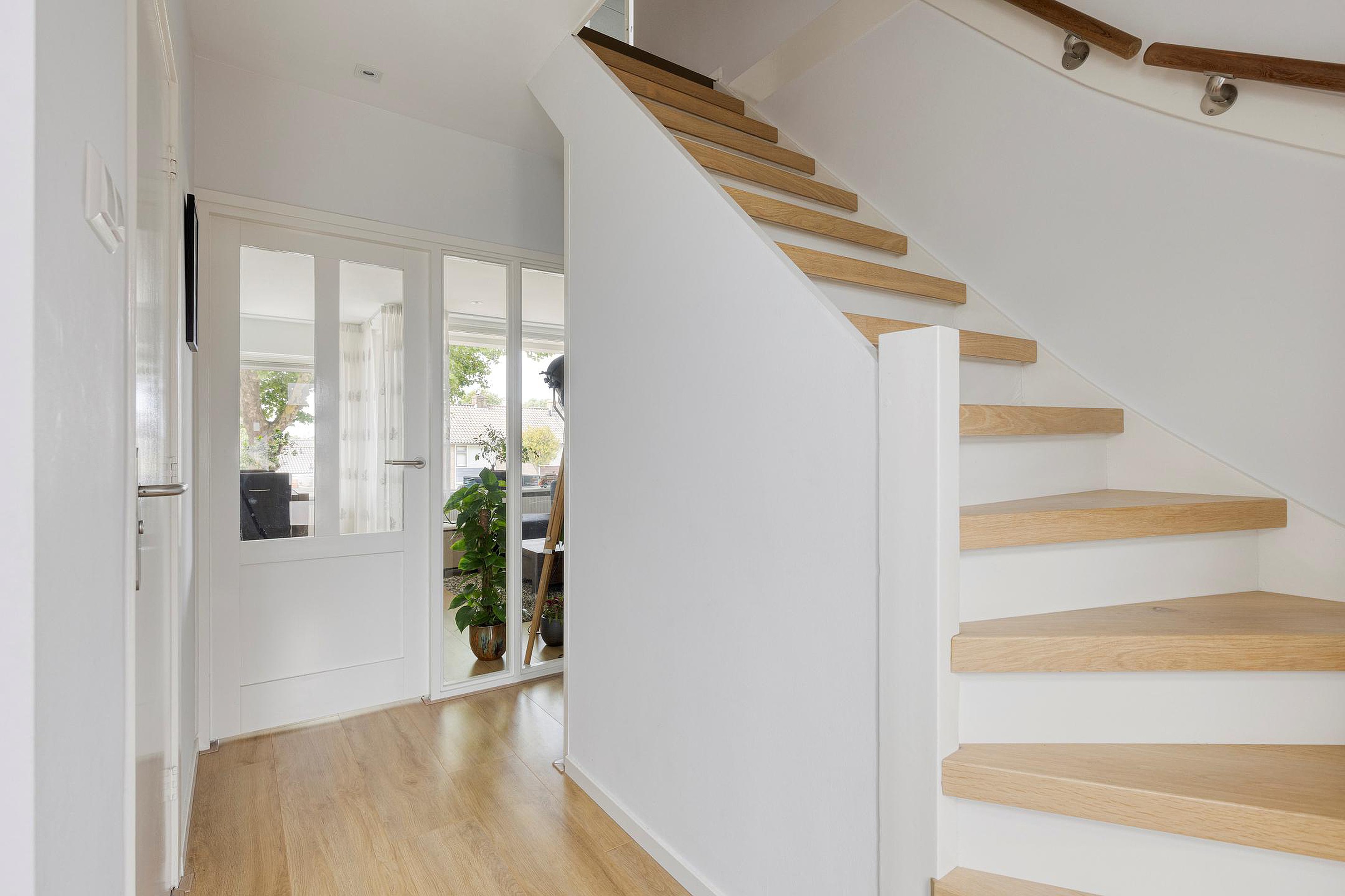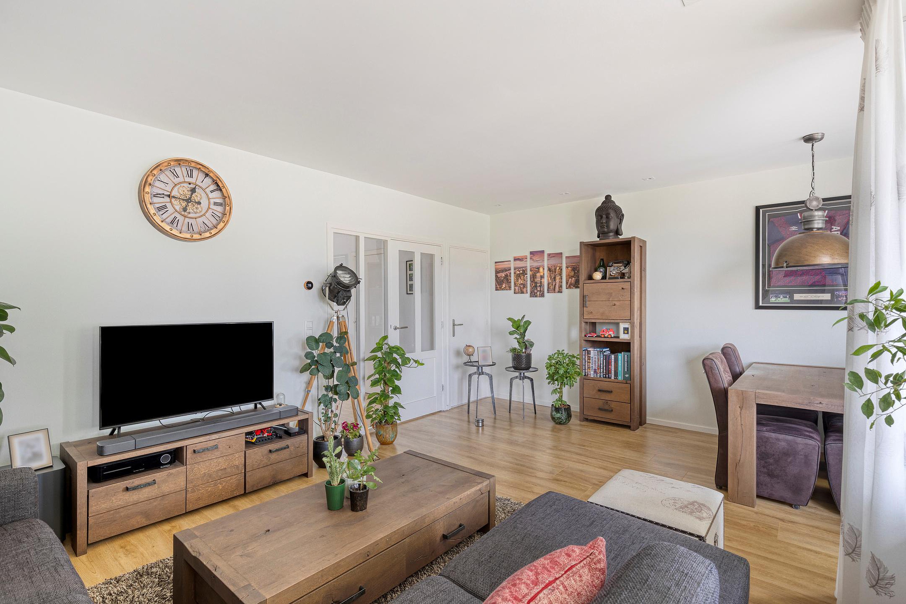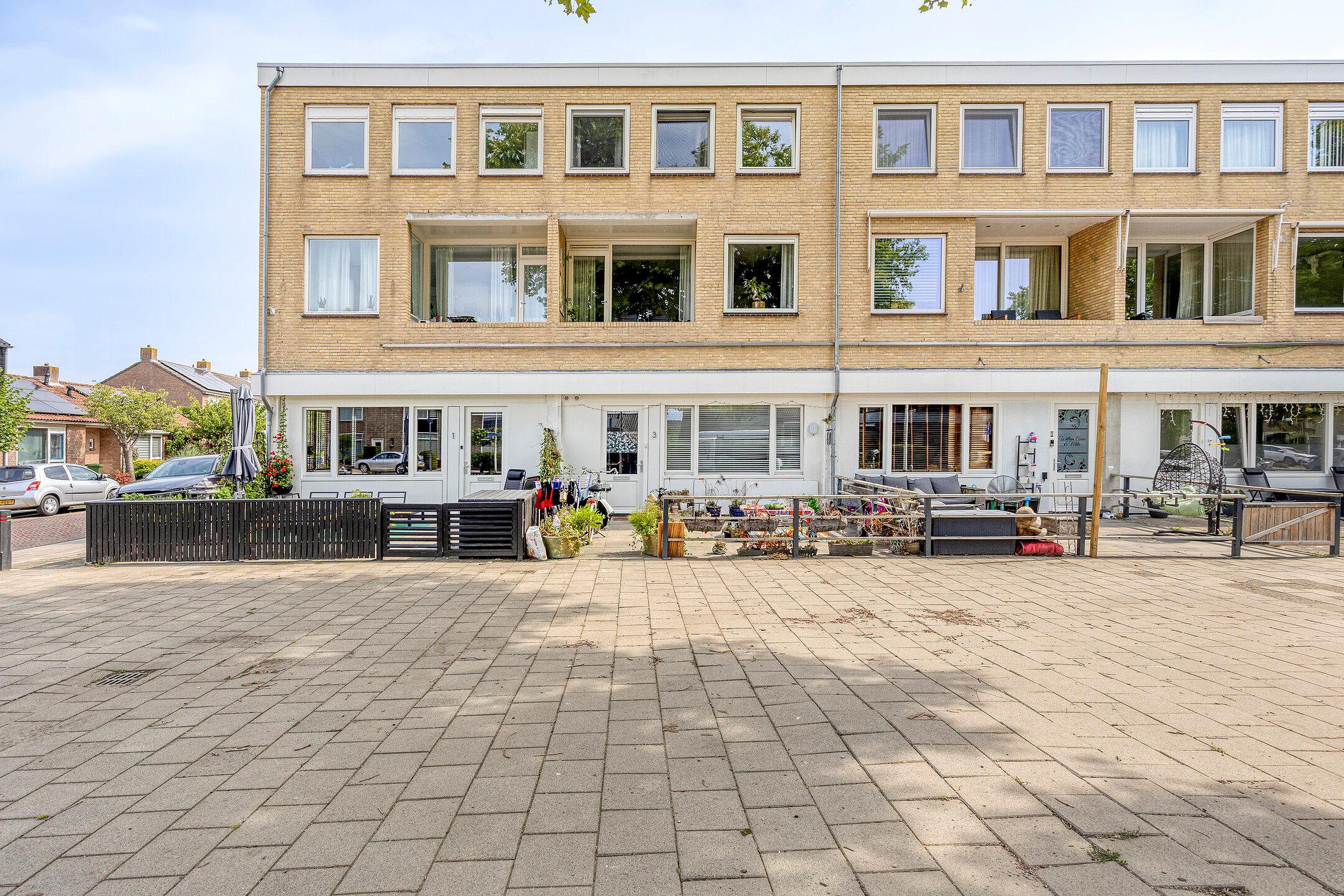 Entree, meterkast (8 groepen + 2 a.l.s.), trapkast, toilet met wandcloset en fontein, vaste trap naar 2e verdieping, lichte, ruime woonkamer met vaste kast en toegang tot het balkon aan de voorzijde. Via de hal toegang tot de keuken. De moderne keuken (2023) ligt aan de voorzijde van de woning en is voorzien van diverse inbouwapparatuur (inductiekookplaat, afzuigkap, oven, koelkast en vaatwasser. De HR combiketel (Remeha ca. 2012) is netjes weggewerkt in een van de keukenkastjes. Het ruime zonneterras van ca. 38,5 m2 ligt aan de achterzijde van de woning.