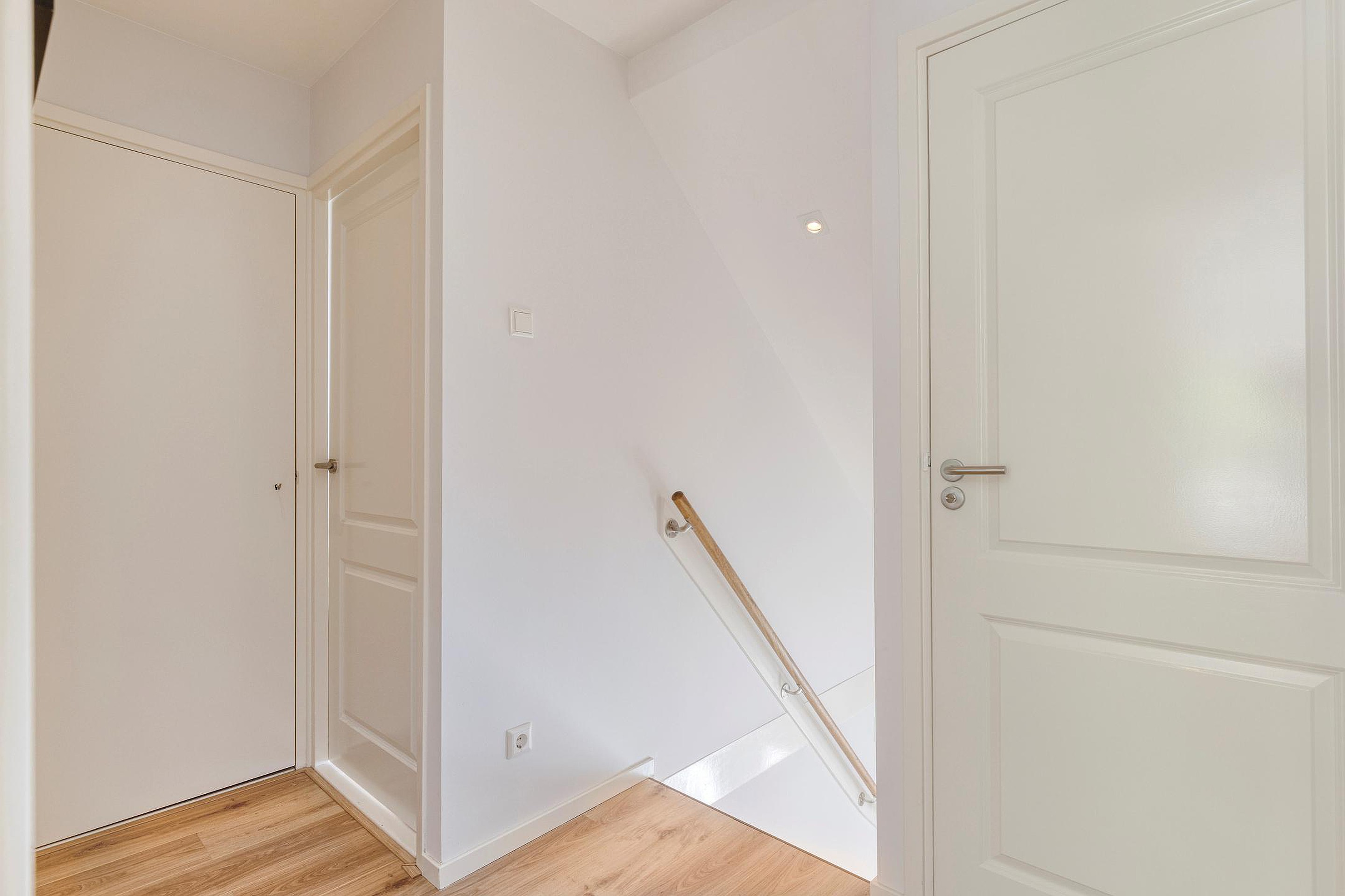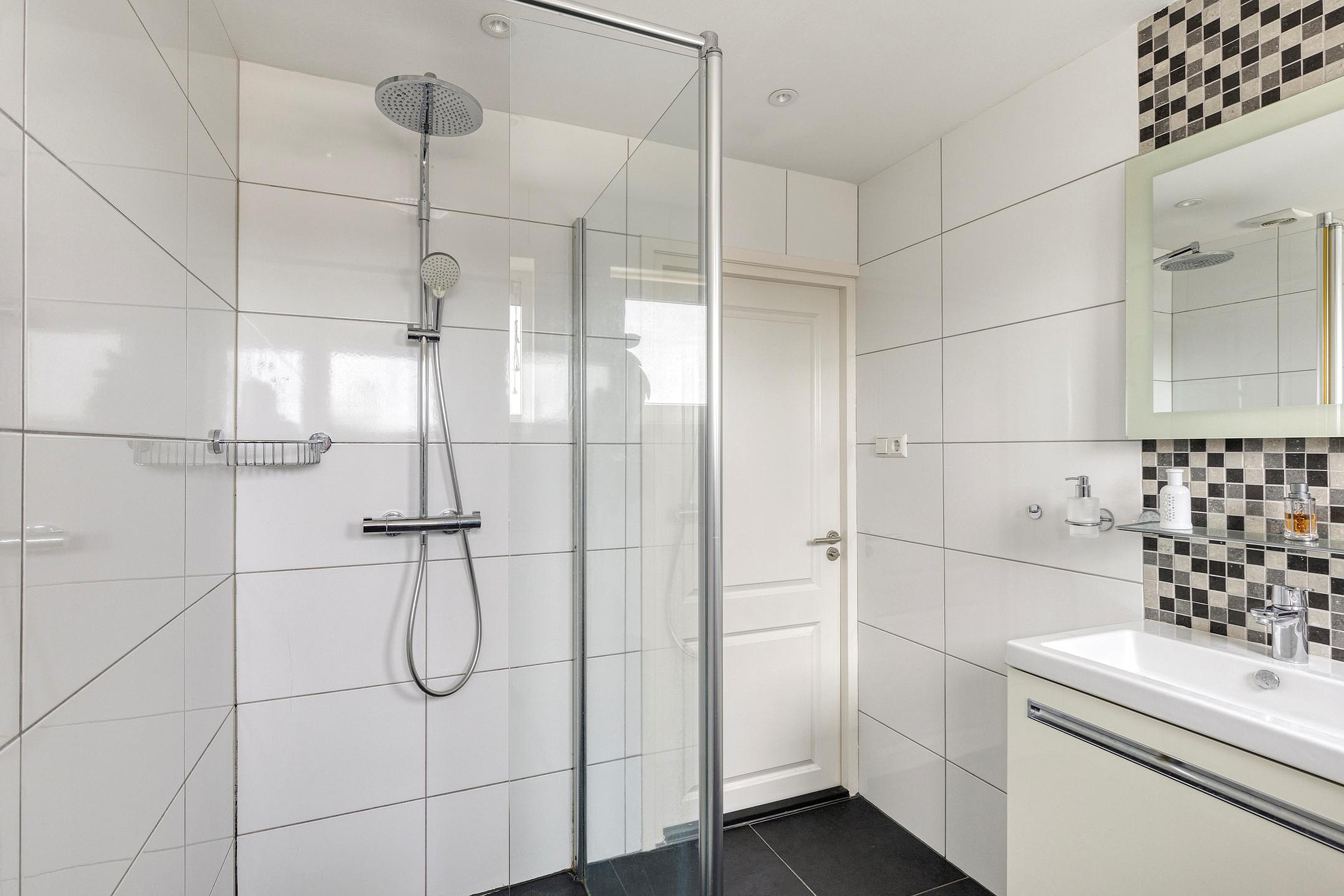 Ruime overloop, wasruimte met aansluiting voor wasmachine en droger, vaste kast. Slaapkamer met vaste kast aan de achterzijde en 2 slaapkamers gelegen aan de voorzijde. De moderne badkamer is volledig betegeld en voorzien van een inloopdouche en wastafelmeubel.