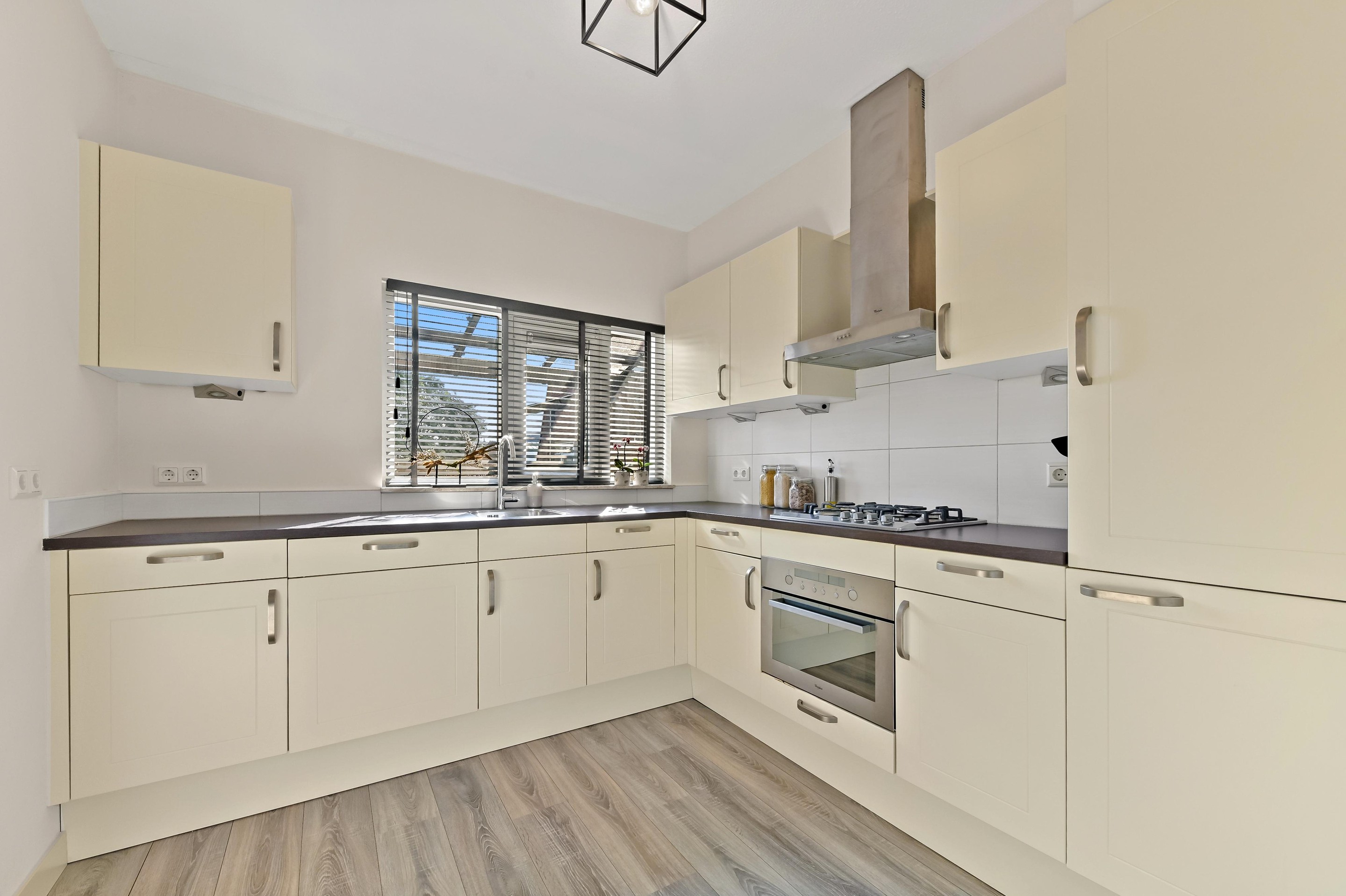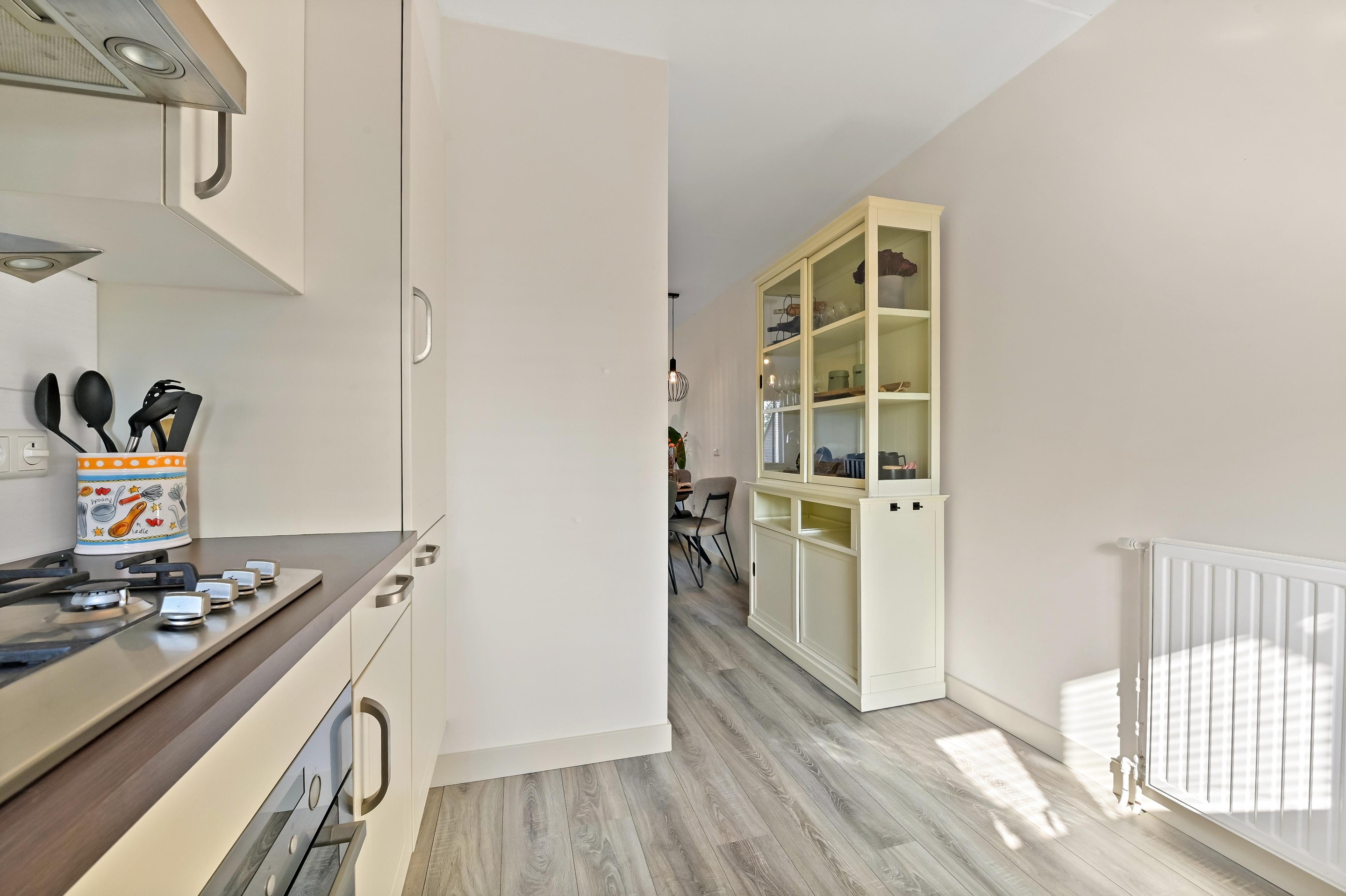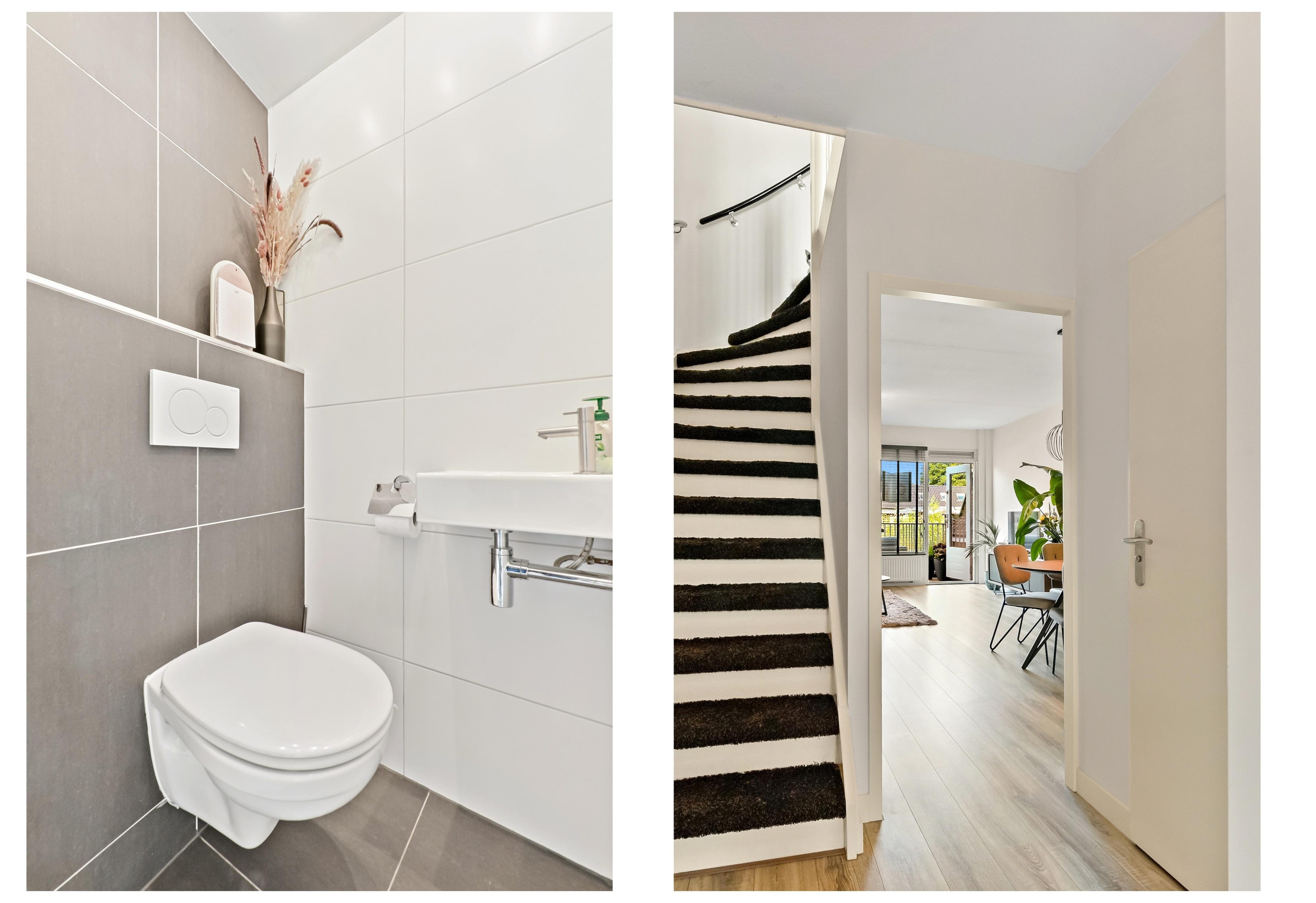 Via de galerij met eigen bergkast kom je bij de entree van de woning. Ruime hal met meterkast, trapopgang naar de verdieping en garderobe. De geheel betegelde toiletruimte is voorzien van een wandcloset met fonteintje en inbouwspots in het plafond. De sfeervolle woonkamer is voorzien van strak gestucte wanden en een nette laminaat vloer. De indeling is ideaal en biedt voldoende plek voor een grote eettafel en fijne zithoek. In de woonkamer is een praktische trapkast te vinden evenals een loopdeur naar het zonnige, op het westen gelegen terras. Het terras is over de gehele breedte van het appartement gelegen en biedt vrij uitzicht over de Stationsstraat. De half open moderne keuken in L-opstelling is aan de voorzijde van de woning te vinden. De keuken is voorzien van diverse inbouwapparatuur waaronder een koel-vriescombinatie, vier pits gaskookplaat, RVS afzuigkap, combi-oven met magnetronfunctie, vaatwasser (2023) en spoelbak. De keuken is uitgevoerd in een lichte kleur en heeft een raam aan de galerijzijde.