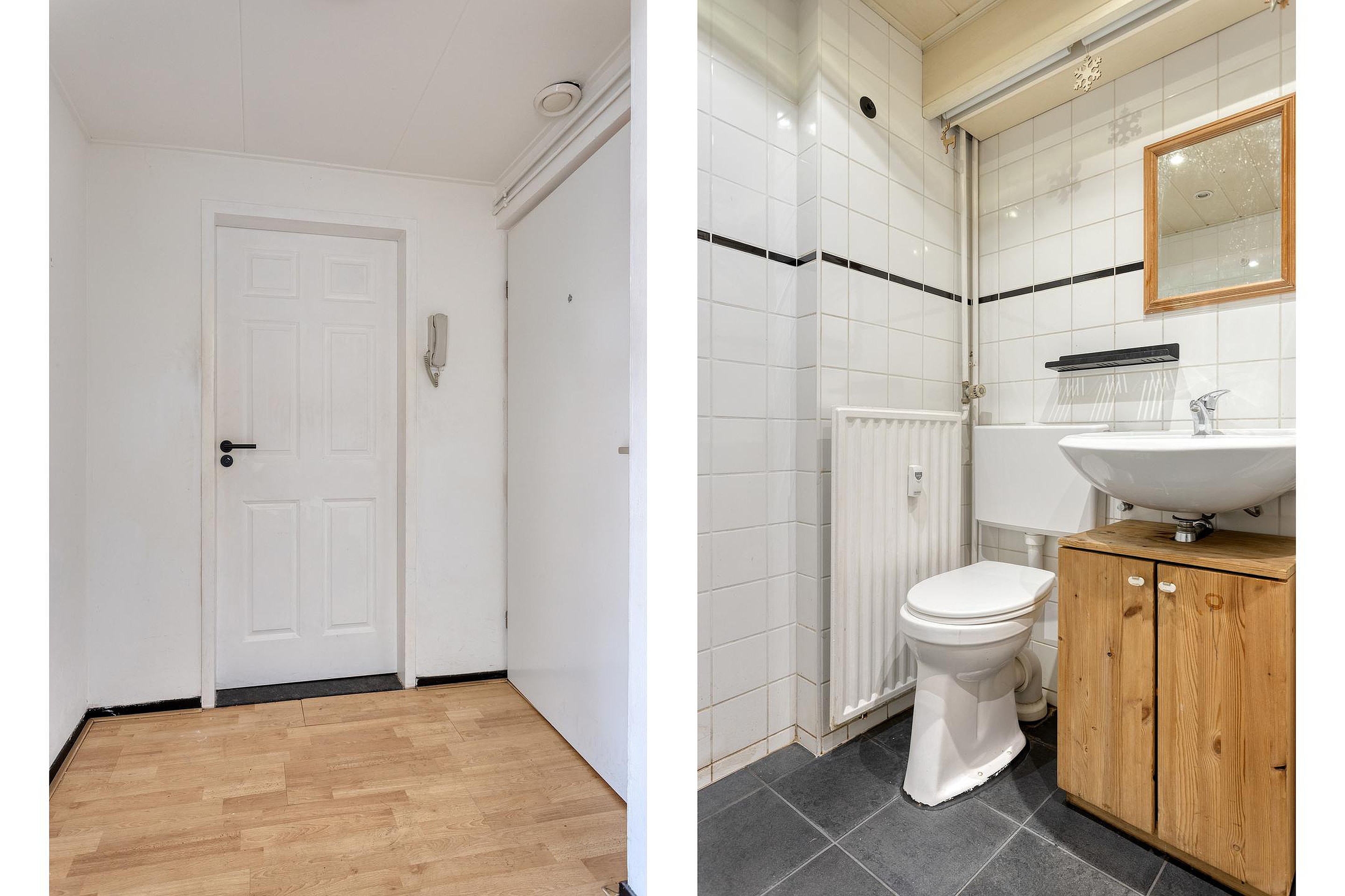 Entree/hal (ca. 2,5m2) met toegang tot de badkamer en de leefruimte. De badkamer (ca 4m2) is geheel betegeld en voorzien van een inloopdouche, vaste wastafel met onderkast, een staand closet en de aansluitingen voor het witgoed. Sfeervolle en lichte leefruimte (ca. 32m2) voorzien van een laminaat vloer, met toegang tot het dakterras. De leefruimte kan gemakkelijk opgesplitst worden in een woonkamer/keuken (ca. 24m2) en een studeer/slaapkamer (ca. 8m2). De keuken beschikt over een keukenblok in rechte opstelling met boven- en onderkasten en de volgende apparatuur: 4-pits inductiekookplaat, afzuigkap, koelkast en een spoelbak (De keuken is aan vervanging toe). De studeer/slaapkamer beschikt over een inbouwkast met een tweede witgoedaansluiting. Tevens is hier de opstelling van de boiler (merk: Bosch Combi, eigendom & bouwjaar 2023) voor de warmwatervoorziening gerealiseerd. Vanuit de studeer/slaapkamer is er toegang tot het dakterras (ca. 6m2), alwaar men in een oase van rust kunt genieten van een panoramisch uitzicht over de directe omgeving.