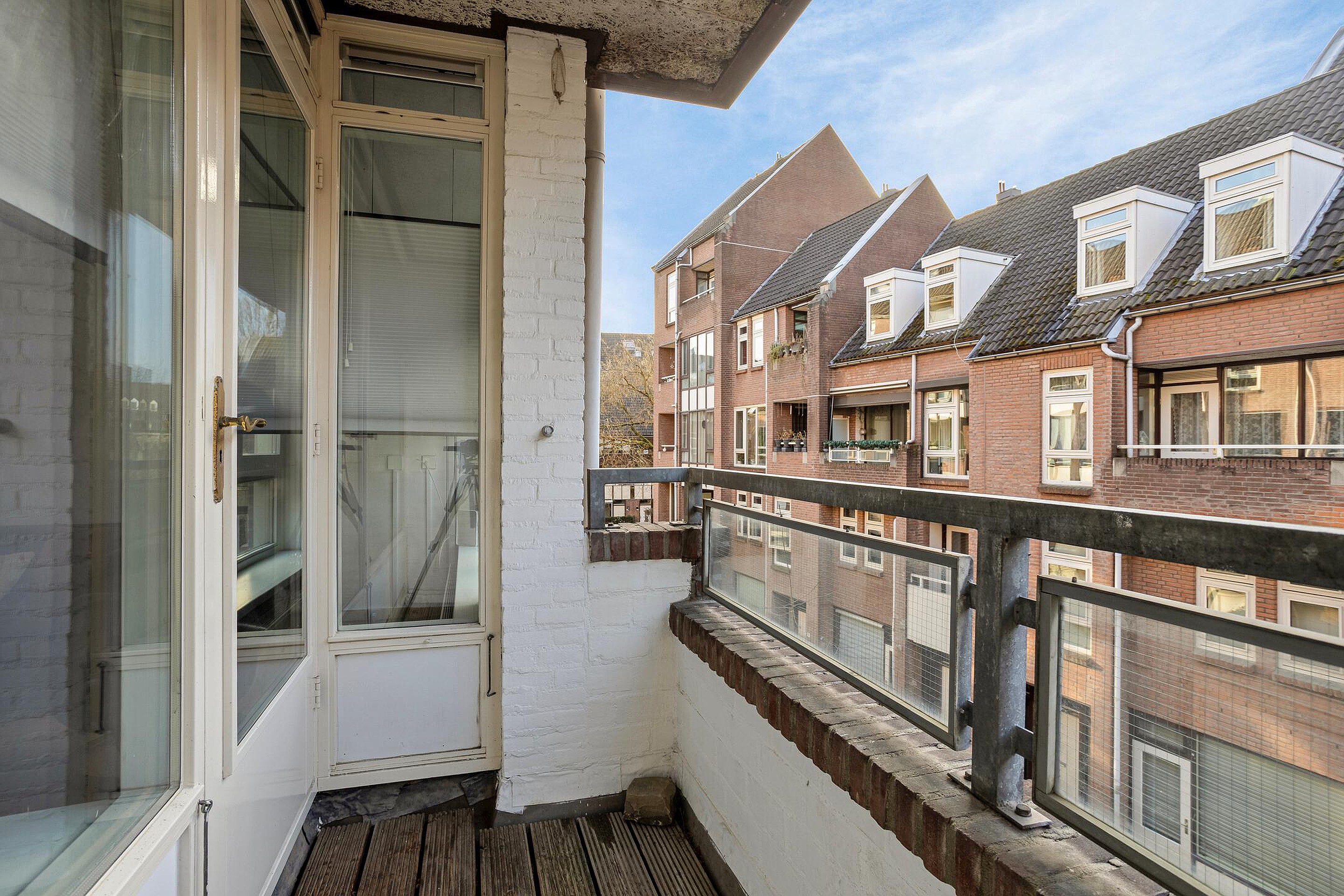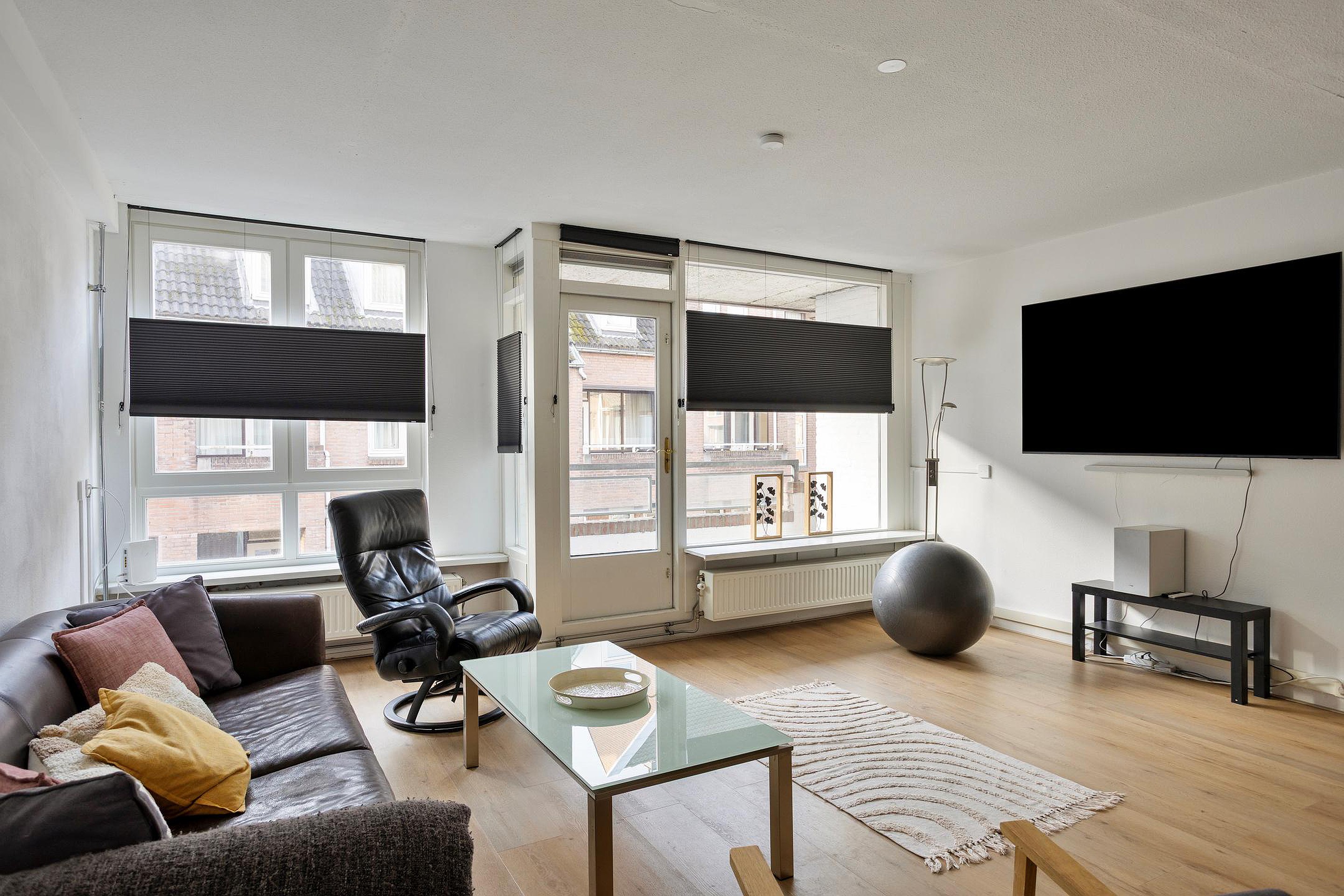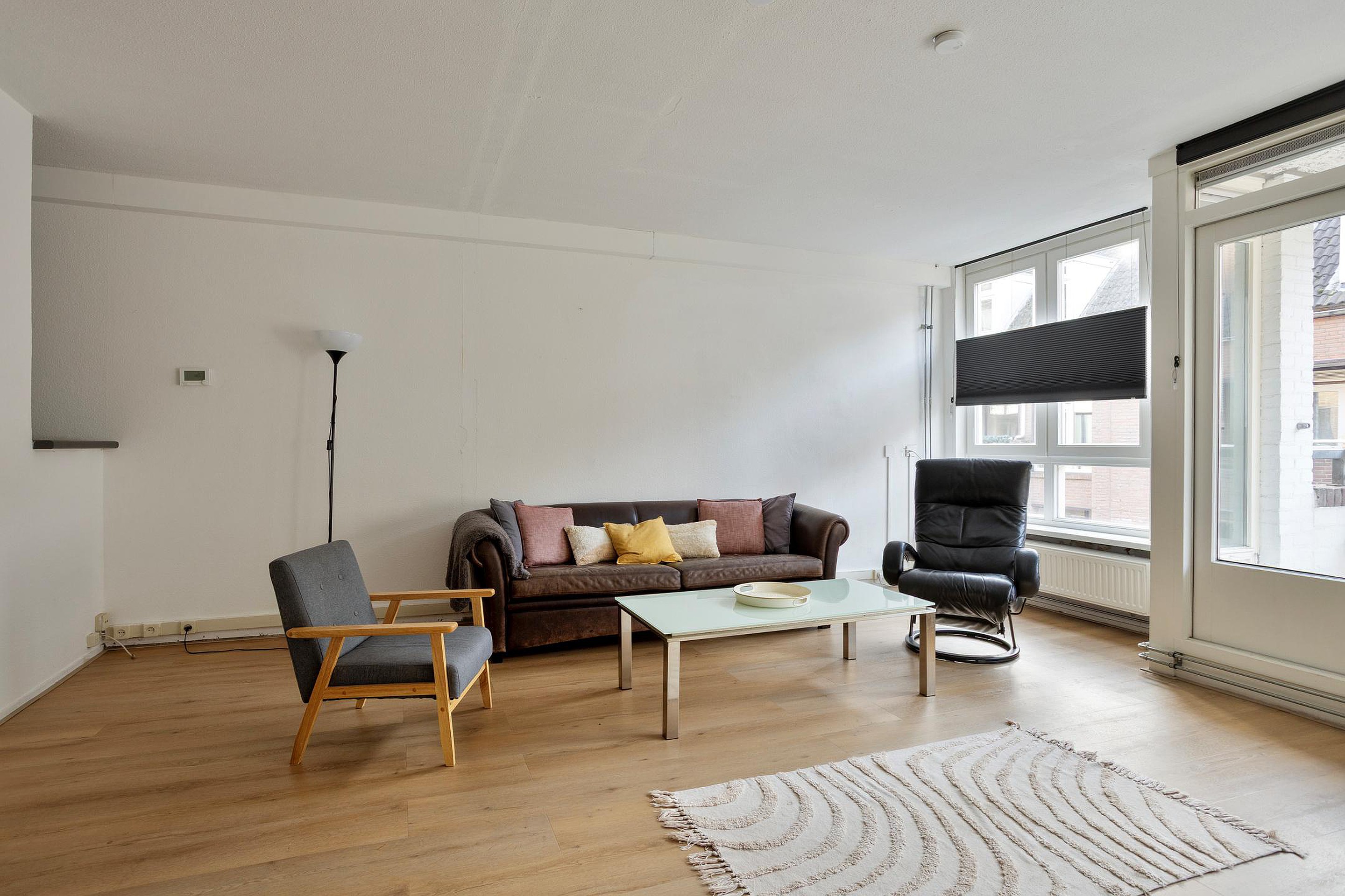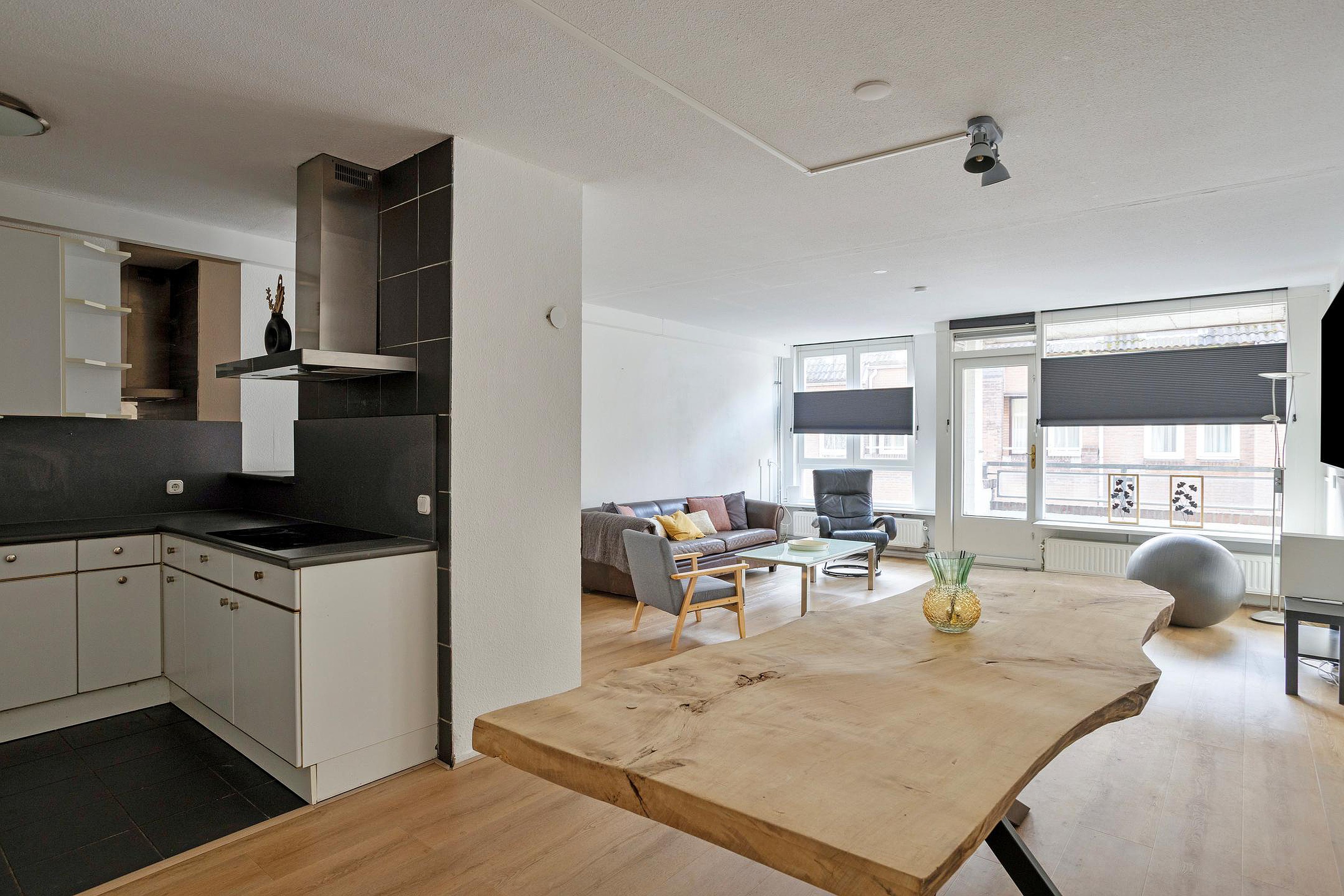 De woonkamer is ruim opgezet, is voorzien van een mooie hoogwaardige PVC click laminaat en praktisch ingedeeld in een zit- en eetgedeelte. Dankzij de openslaande deur staat de woonkamer in directe verbinding met het balkon. Op het balkon (4 m2) kunt u heerlijk buiten zitten en nagenieten van de drukke (werk)dag