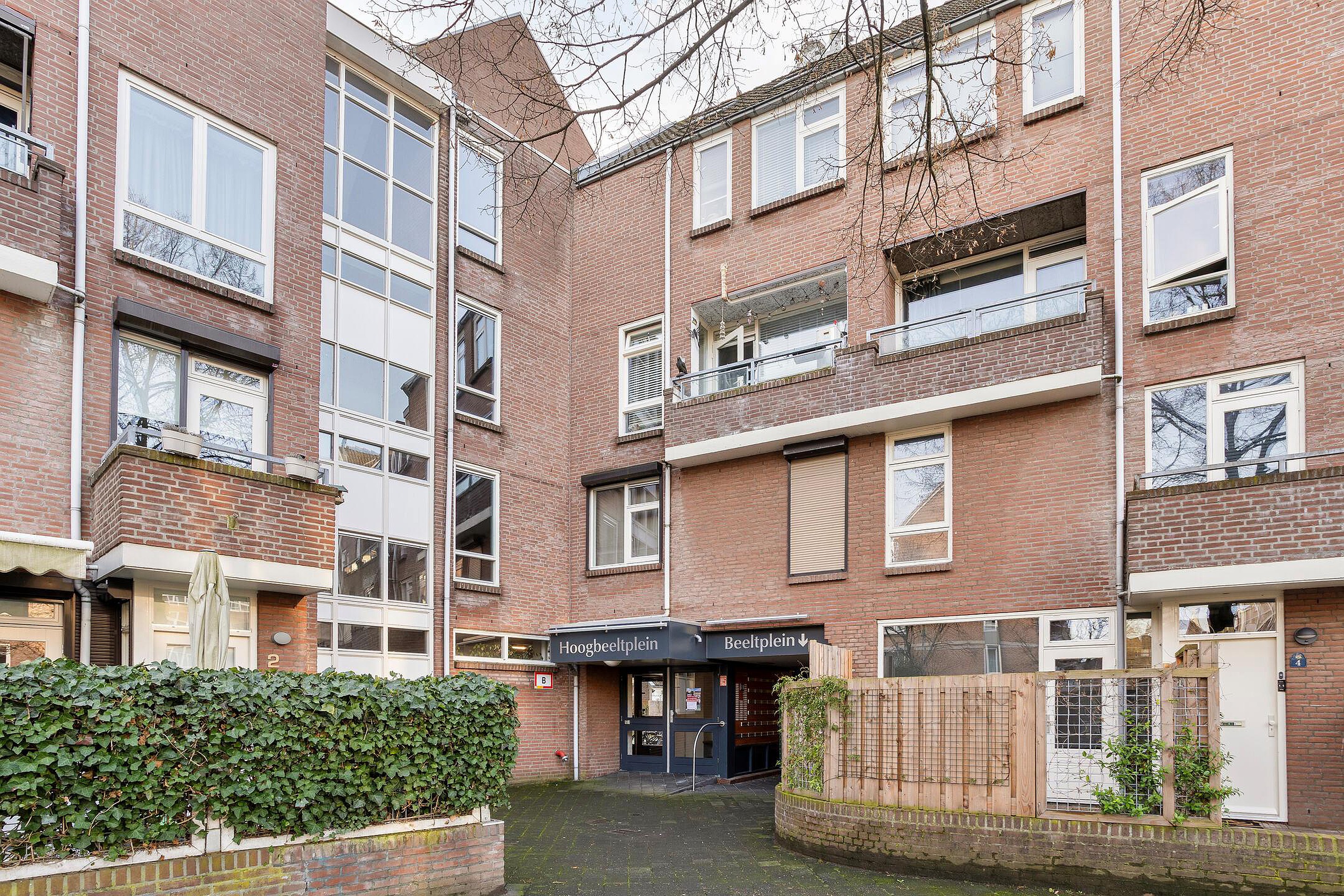 De tweede slaapkamer (24 m2), tevens uitstekend geschikt als master bedroom, is royaal van formaat en afgewerkt met een laminaatvloer. Deze kamer beschikt over een vaste kastenwand over de gehele breedte en biedt middels een deur toegang tot het tweede balkon (4 m2) met uitzicht richting het Hoogbeeltplein.