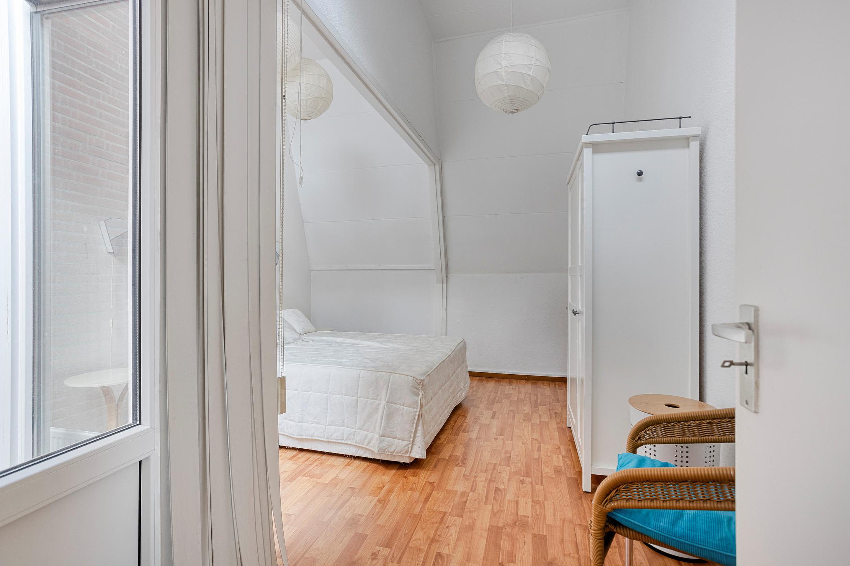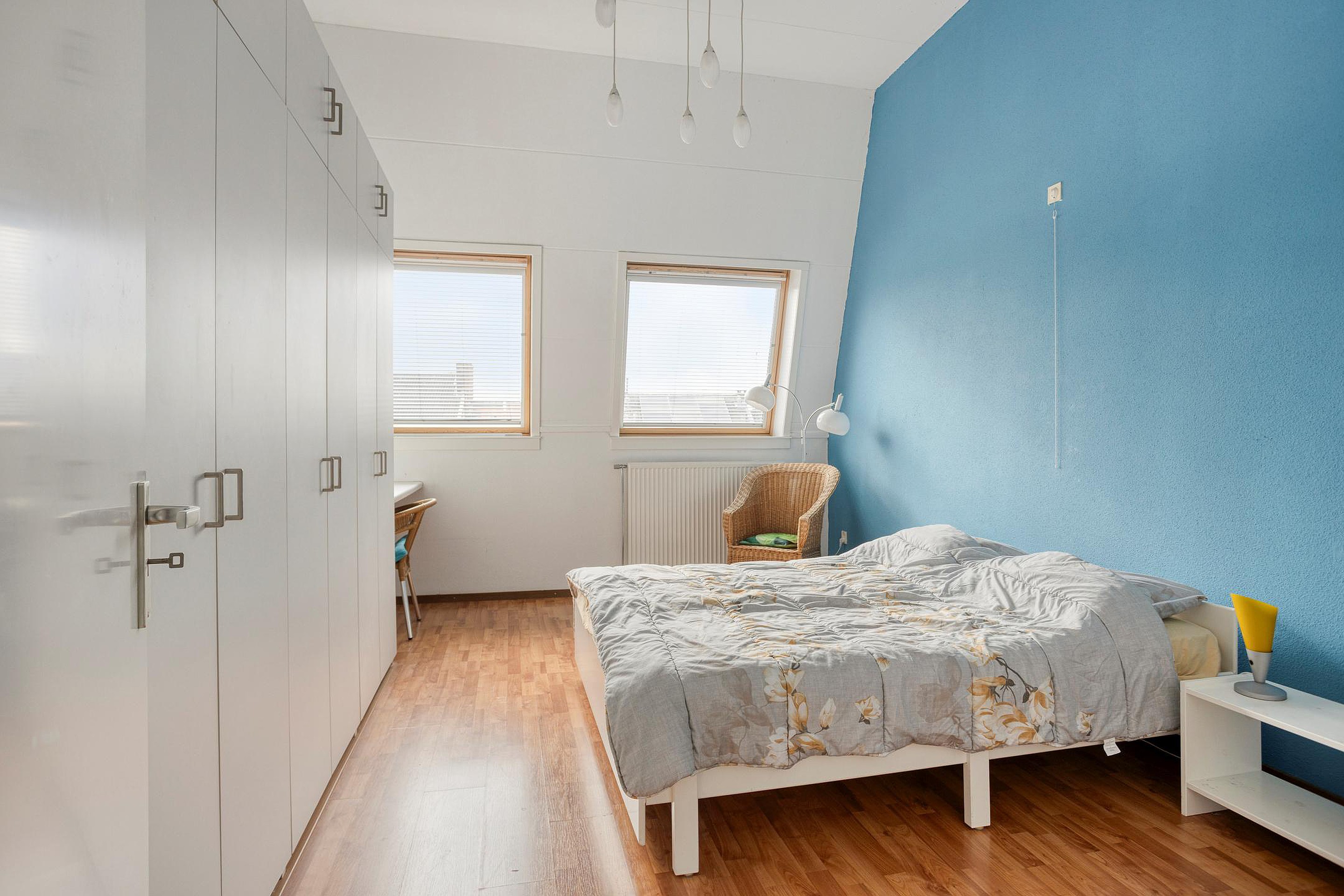 De grootste kamer (18m2) ligt aan de voorzijde en is voorzien van een laminaatvloer en twee Velux dakramen met isolerende beglazing en sreens. Deze dakramen zorgen voor veel daglicht en ventilatie. Daarnaast is er een grote vaste kastenwand, ideaal voor al je kleding en overige spullen.