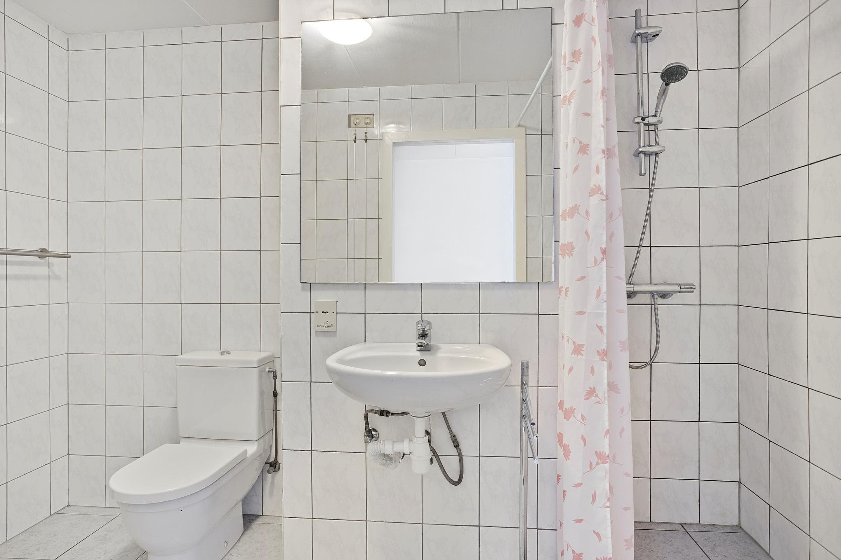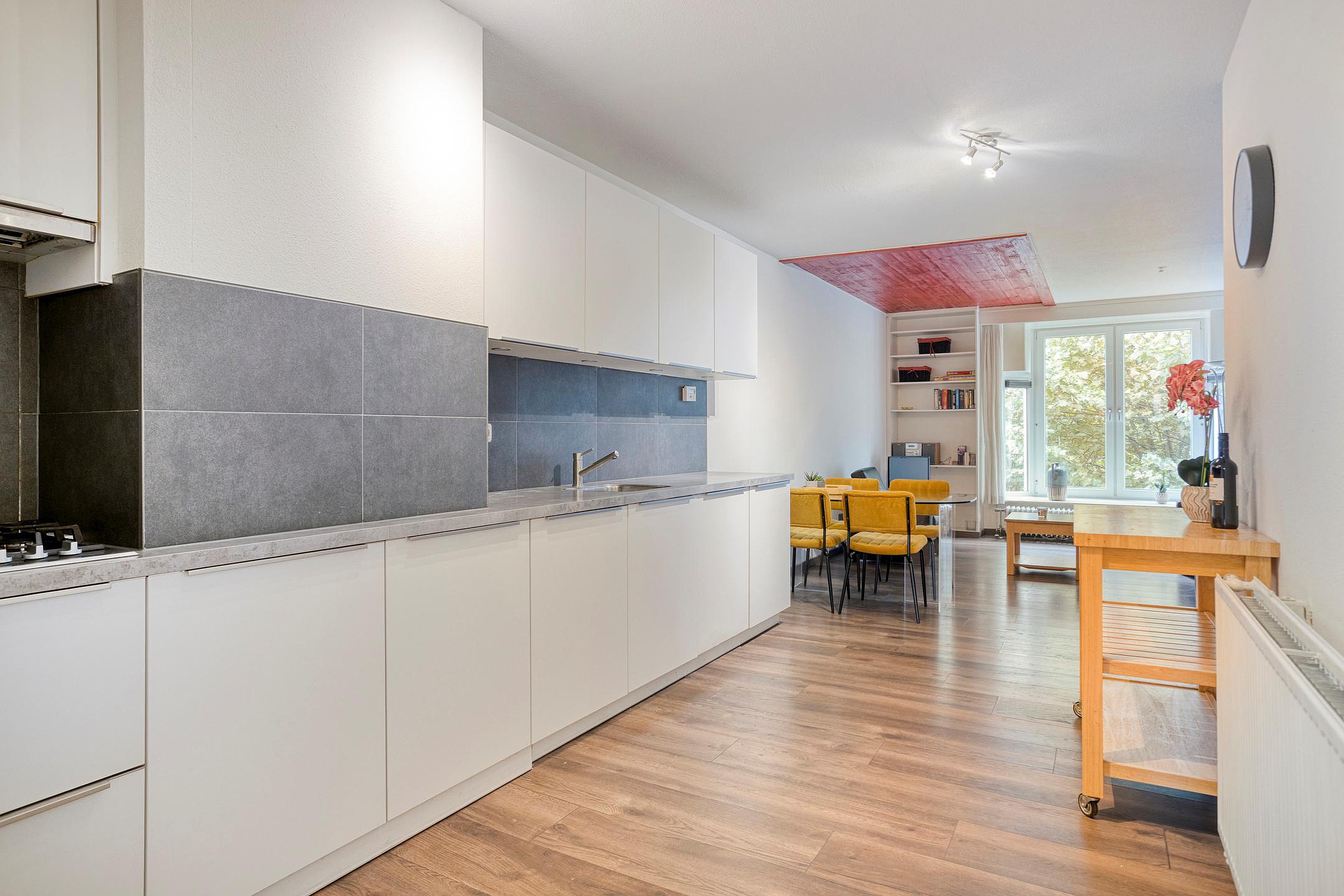 De woonkamer (20m2) is aan de achterzijde van het appartement gelegen en beschikt over een erker die zorgt voor extra ruimte en natuurlijk licht. Een handige trapkast biedt praktische opbergruimte om spullen netjes uit het zicht te bewaren. Bijna het gehele appartement is voorzien van een mooie laminaatvloer, wat een rustige en samenhangende sfeer creëert.