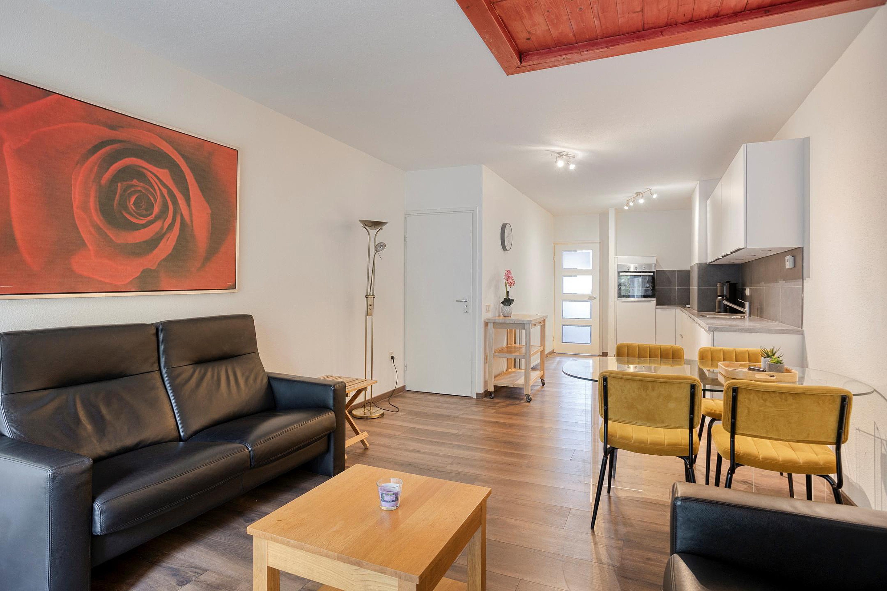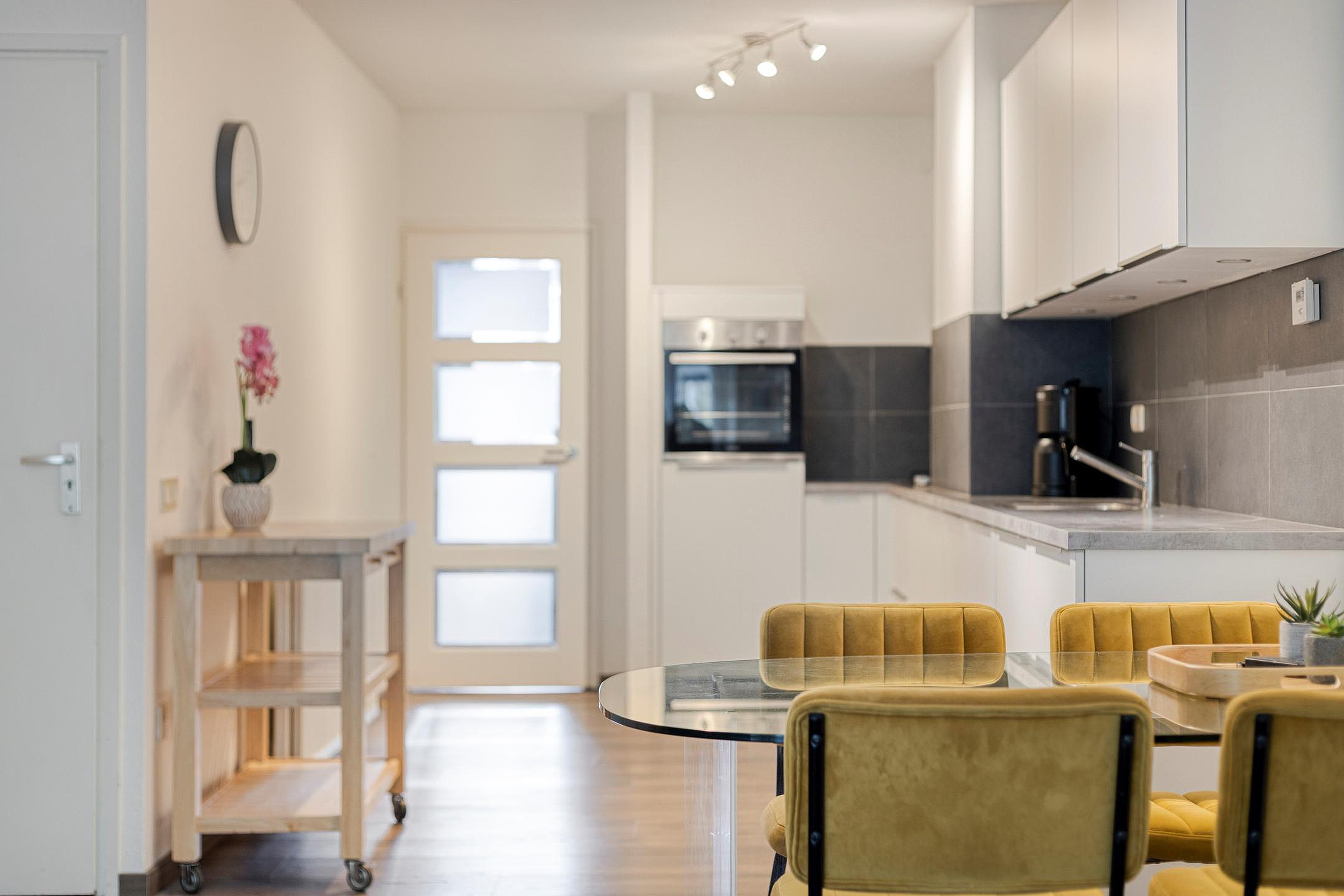 De open keuken (12 m2), in 2021 volledig vernieuwd en uitgevoerd in een praktische hoekopstelling, is van alle gemakken voorzien. Zo vind je er onder andere een vaatwasser, koelkast, combi-oven en een 4-pits gasfornuis met afzuigkap. Het kunststof aanrechtblad zorgt voor een stijlvolle uitstraling en is bovendien onderhoudsvriendelijk.
